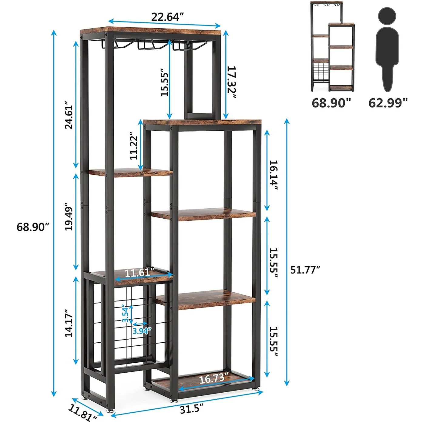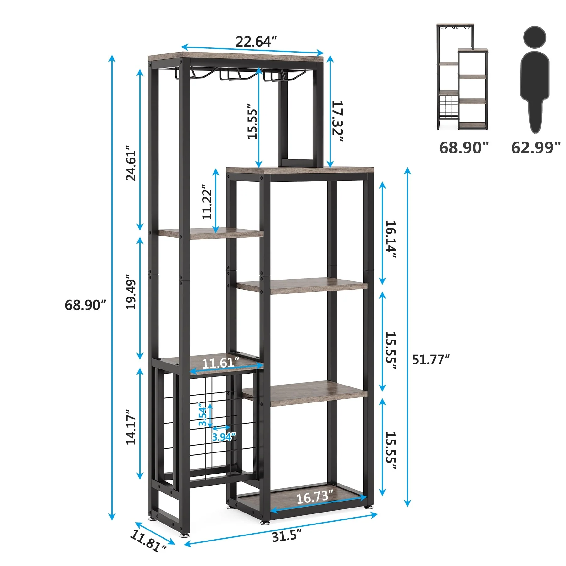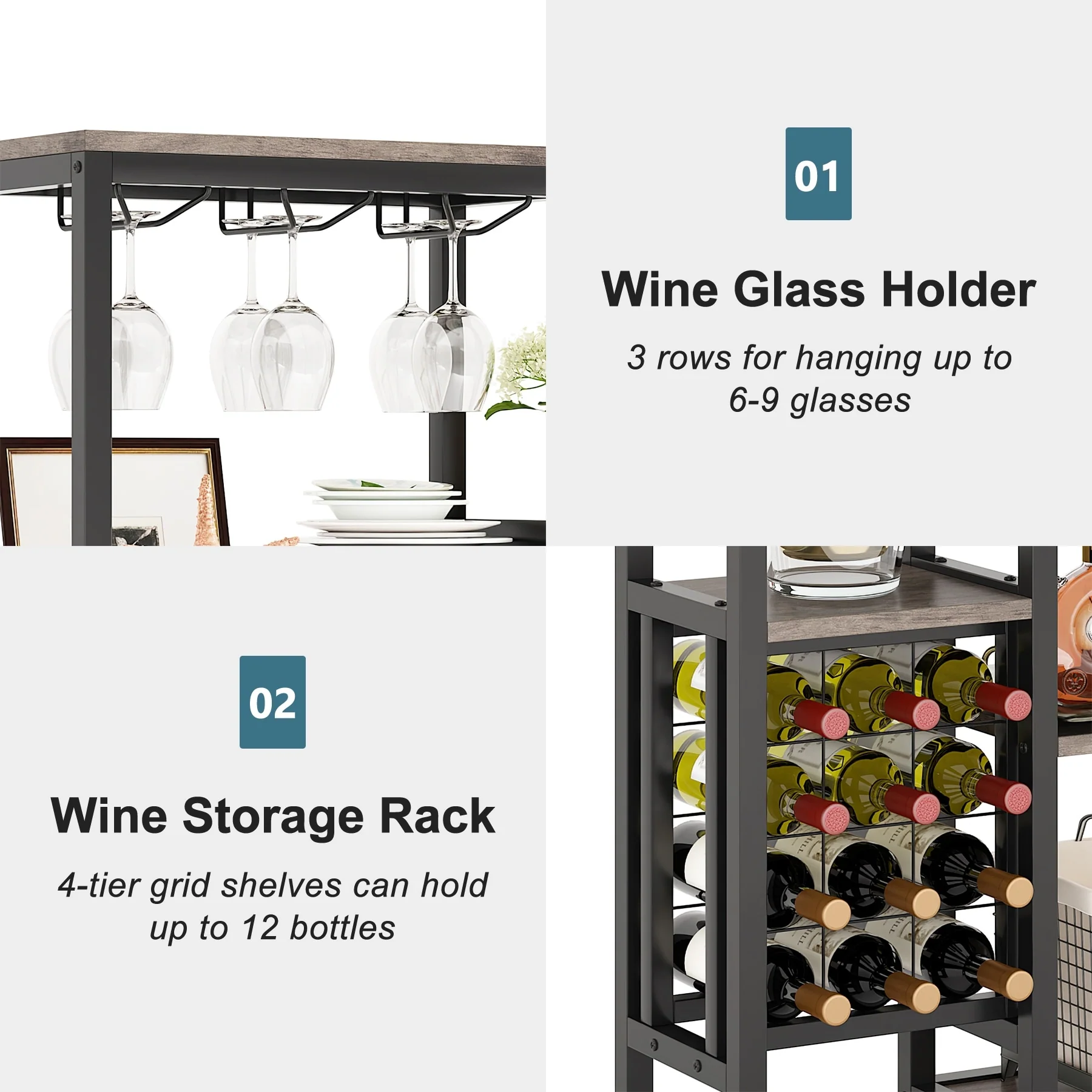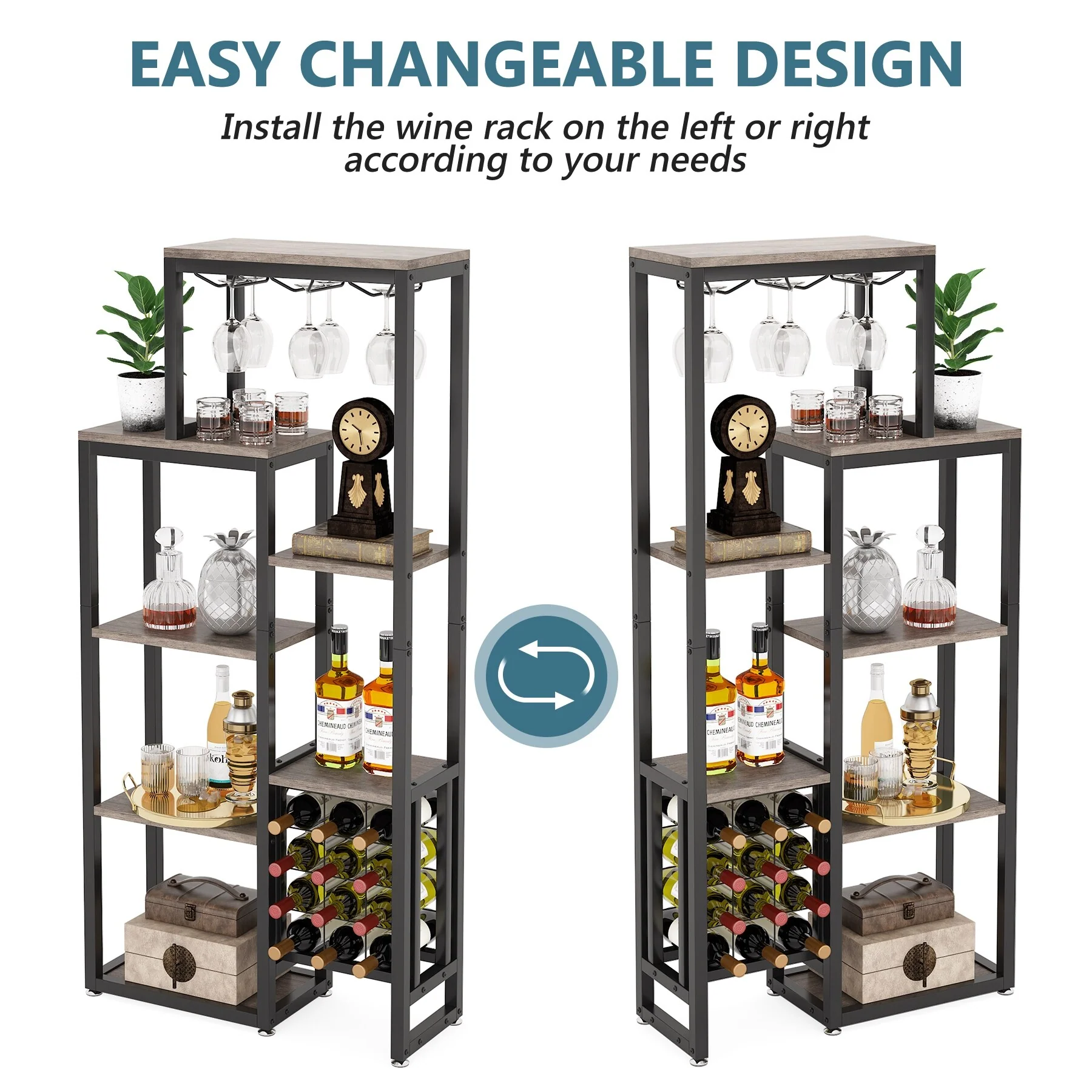 5-Tier Freestanding Floor Wine Baker Rack with Glass Holder & Wine Storage, Industrial Wine Display for Bar, Dining Room - N/A