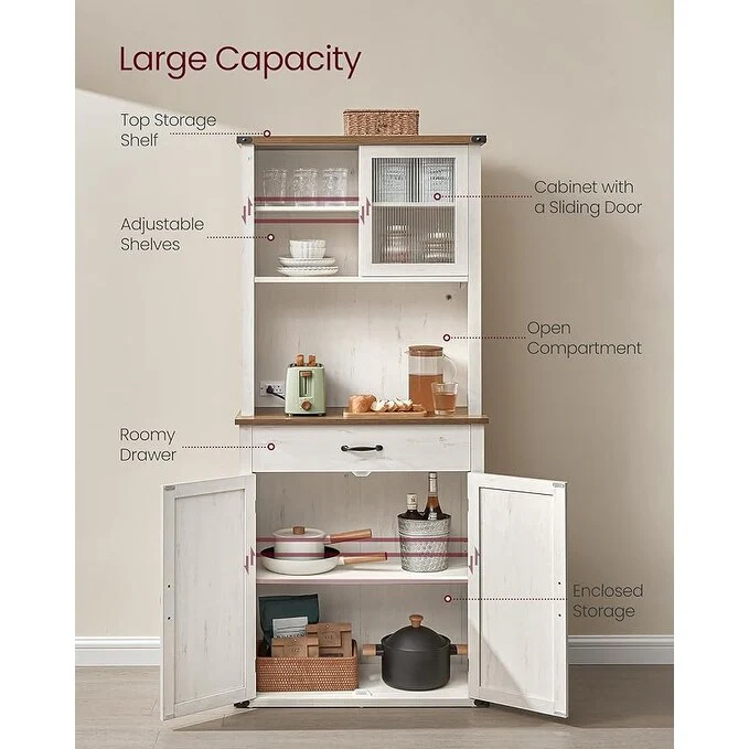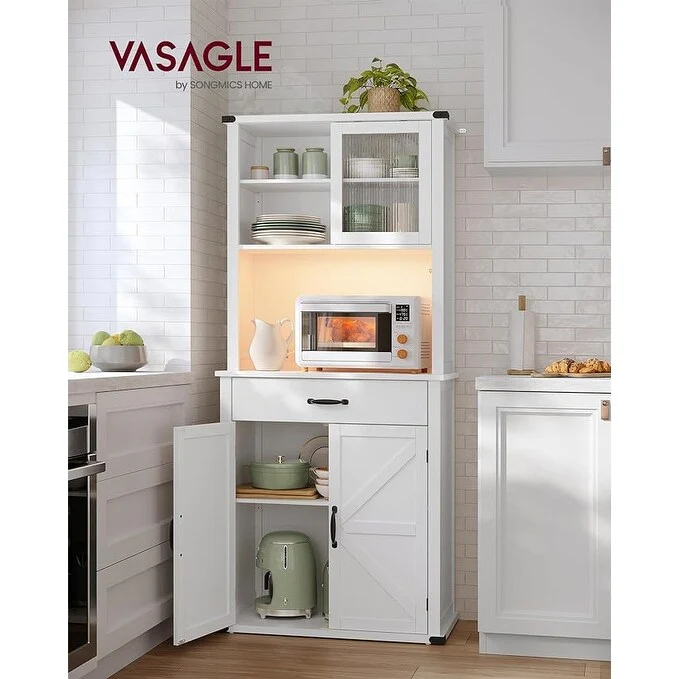 VASAGLE 71" Pantry Cabinet Station, Kitchen Pantry Cabinet, Farmhouse Storage Cabinet, Coffee Bar Cabinet, Cloud White