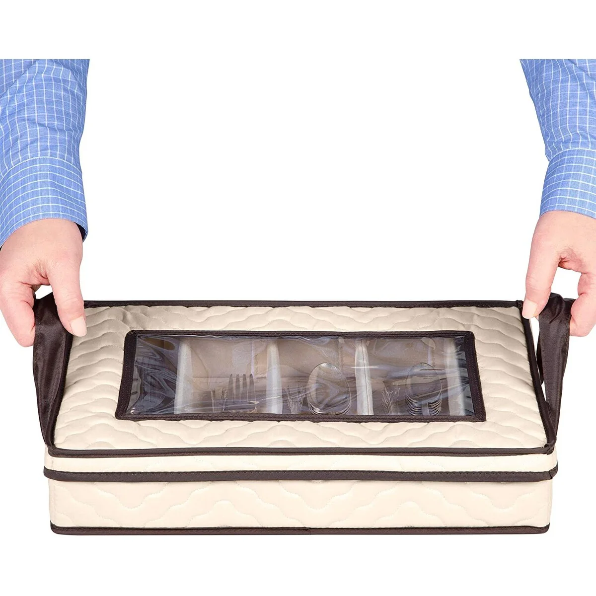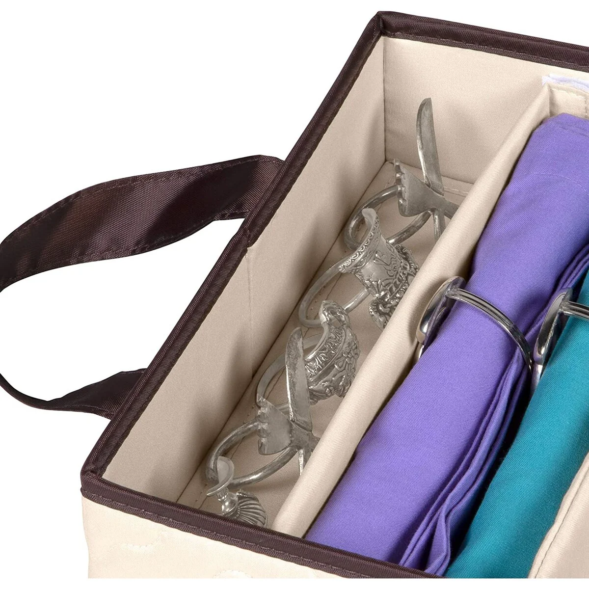 Flatware,Cutlery Utensil Storage Case Durable 5 Compartment Container - Brown