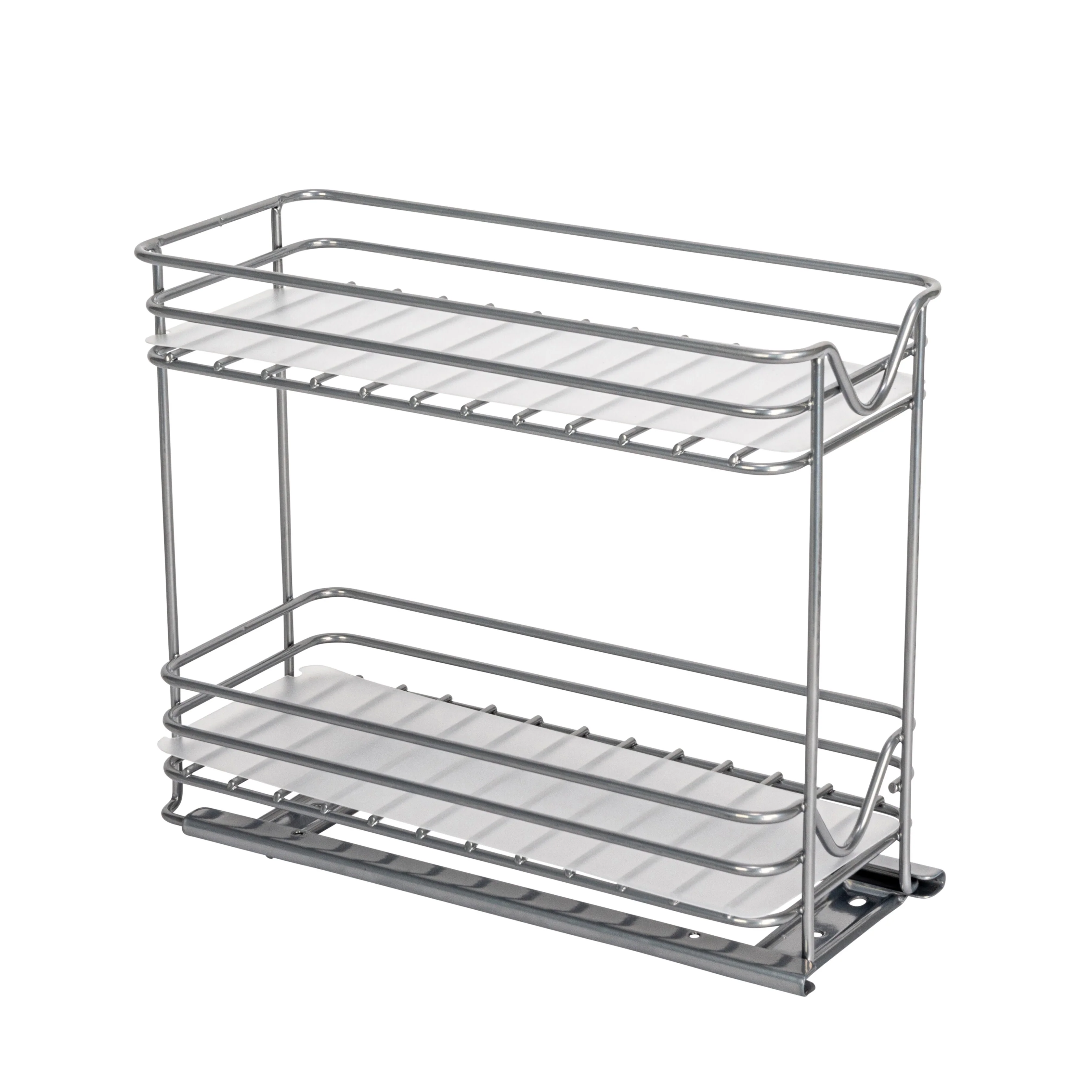 Household Essentials 2-Tier Brushed Nickel Spice Rack Organizer, Sliding Pantry Organizer