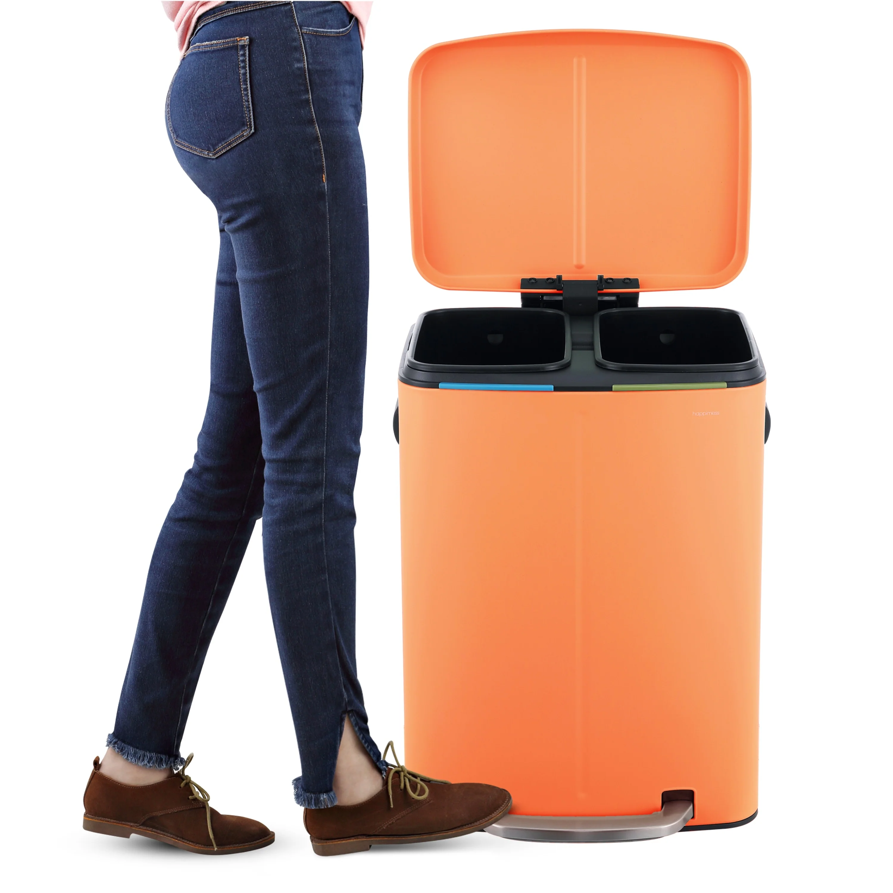 happimess 10.6-Gallon Double Bucket Trash Can with Soft Close Lid