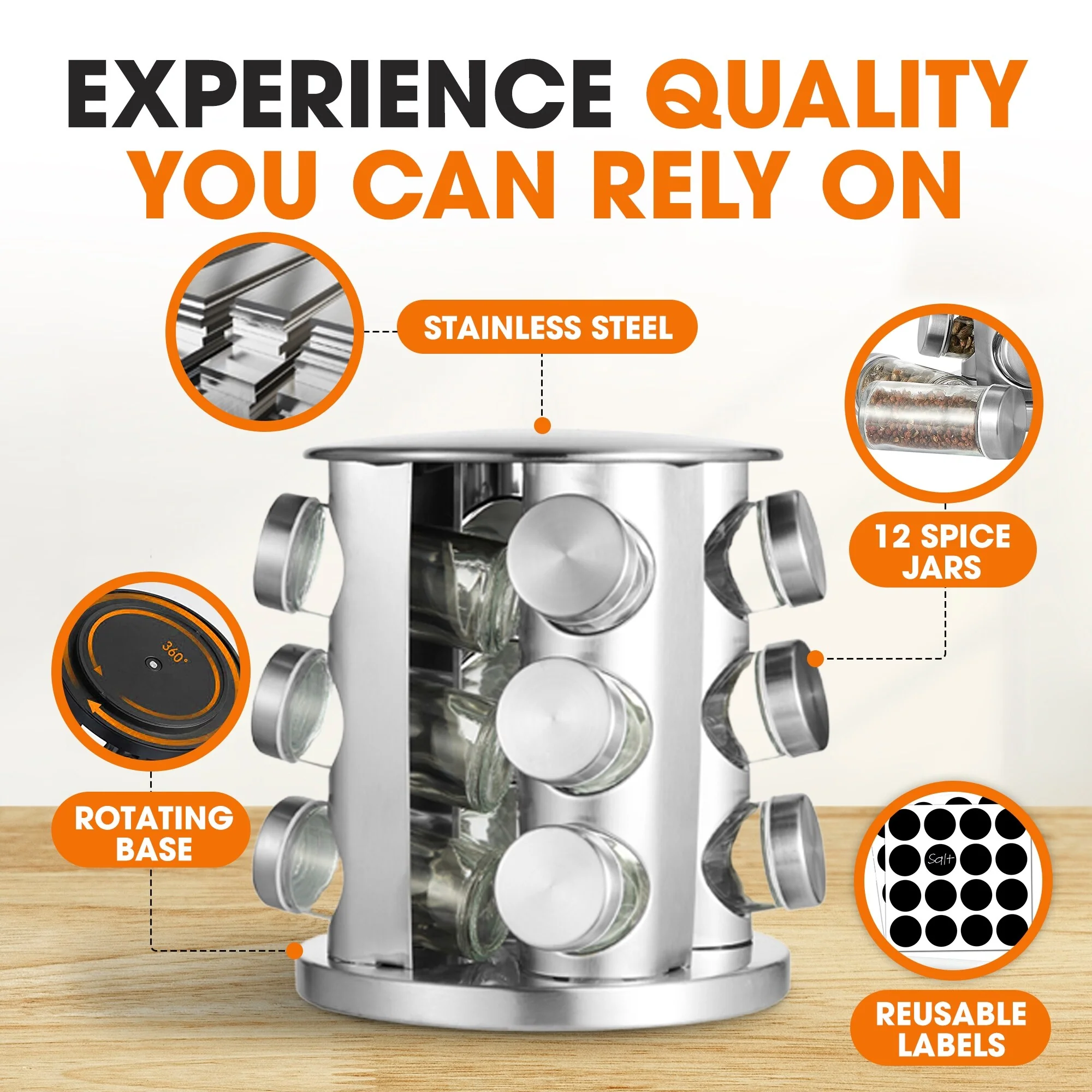 Cheer Collection Rotating Spice Rack with 12 Jars