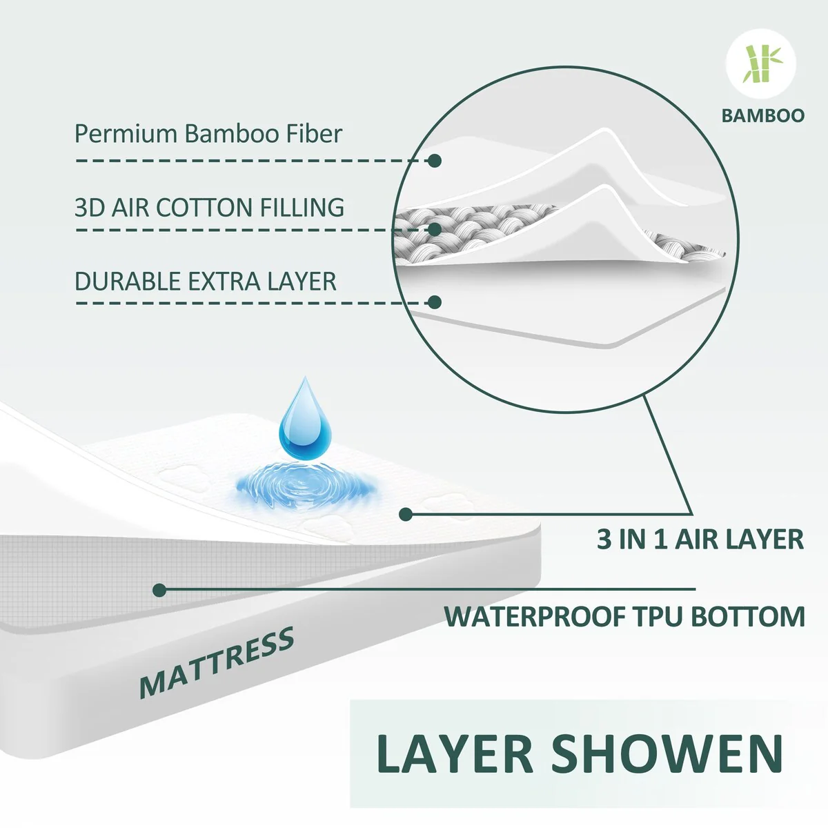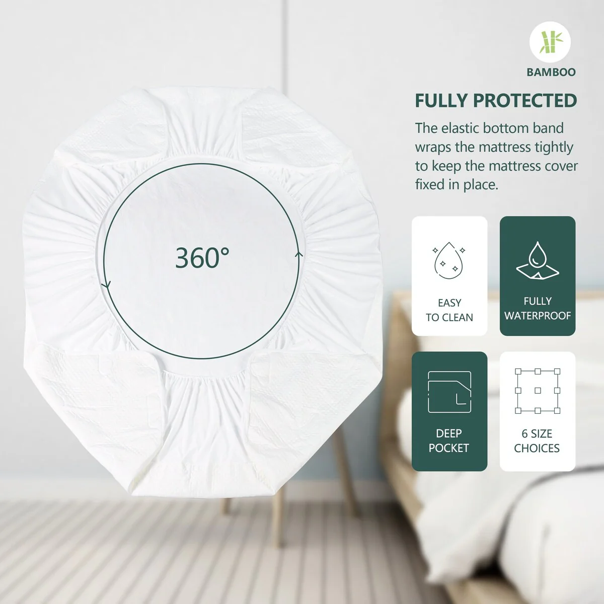 MarCielo Bamboo Viscose Surface Waterproof Knit Mattress Protector - N/A
