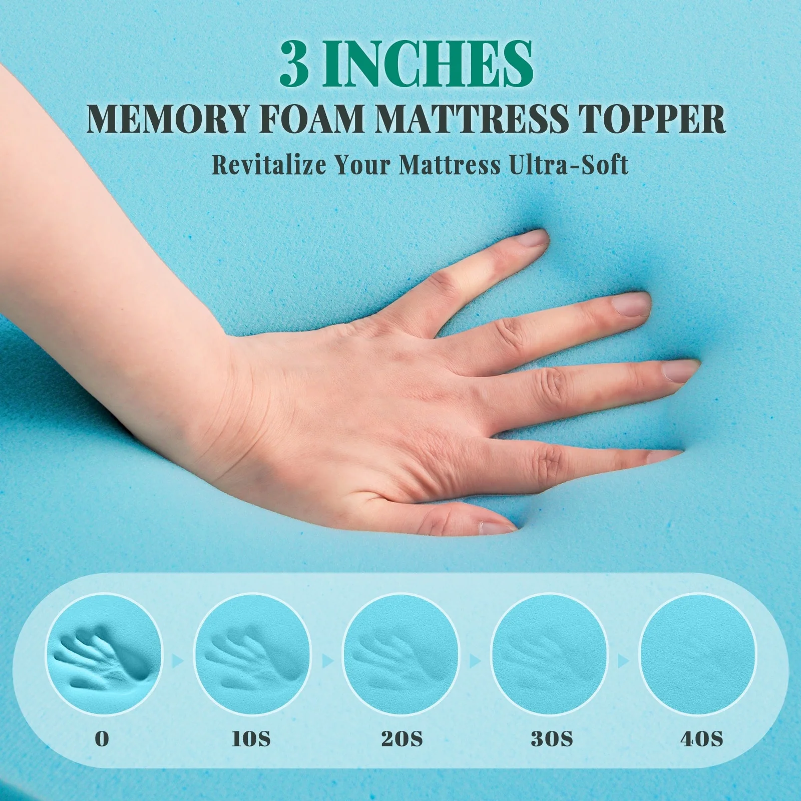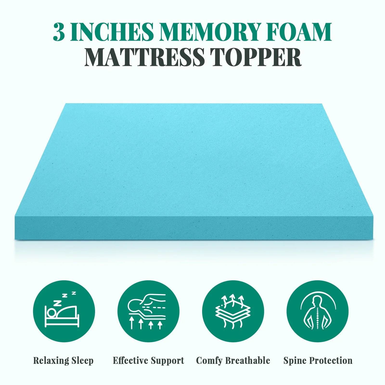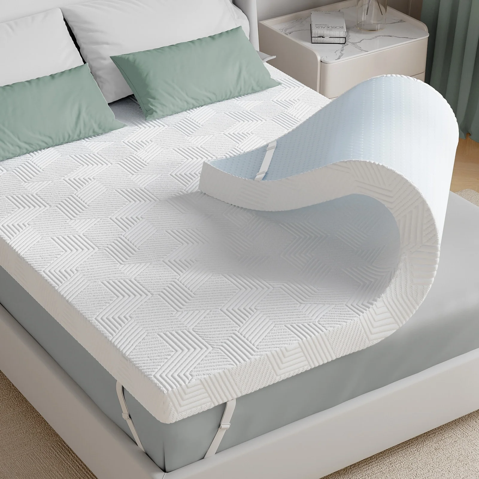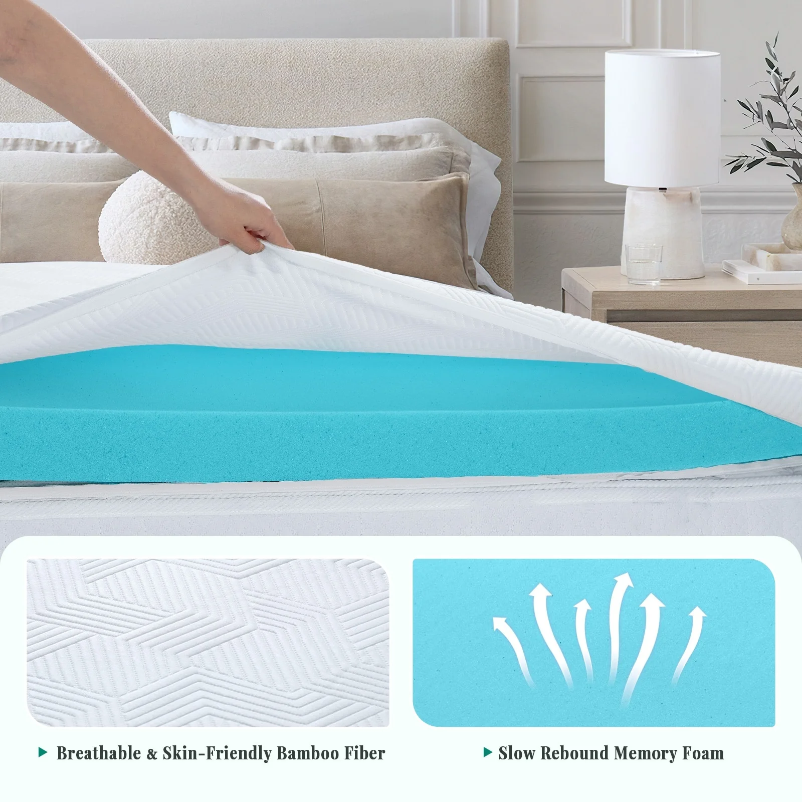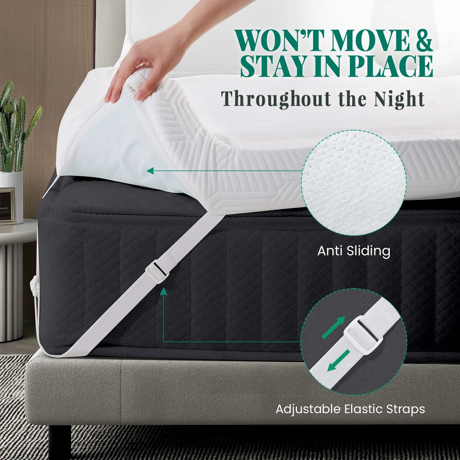 Gel Memory Foam Mattress Topper with Breathable Rayon From Bamboo Fiber Cover and Anti-sliding Fixing Straps
