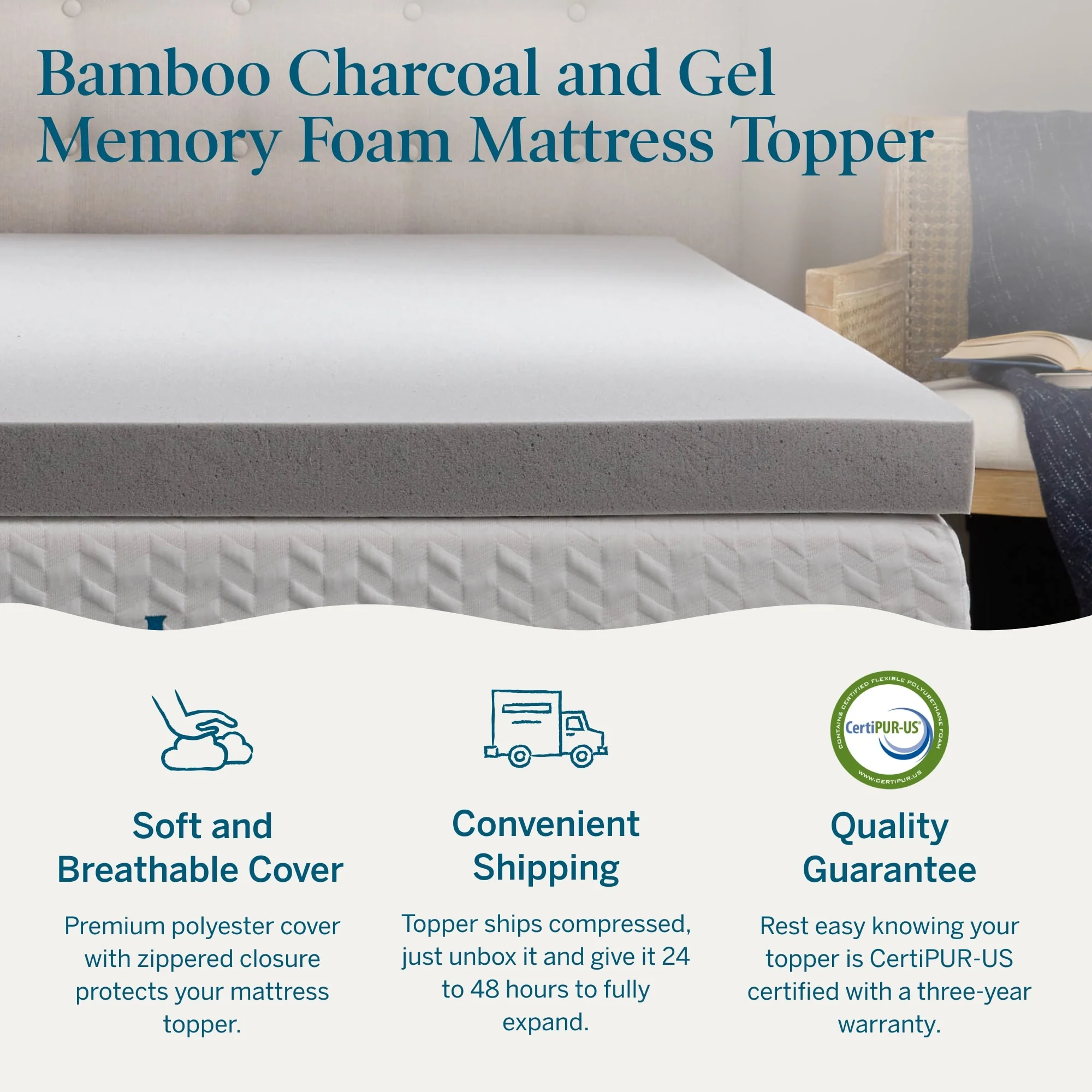 Lucid Bamboo Charcoal and Gel Memory Foam Covered Mattress Topper?2,3,4 inch - N/A