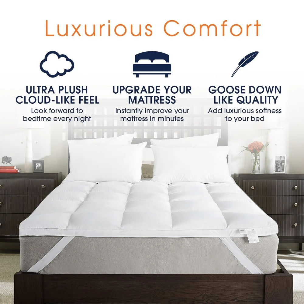 Hotel Laundry 4inch Platinum Collection Mattress Topper Filled Goose Down Alternative Fiber-100% Cotton Feather Proof
