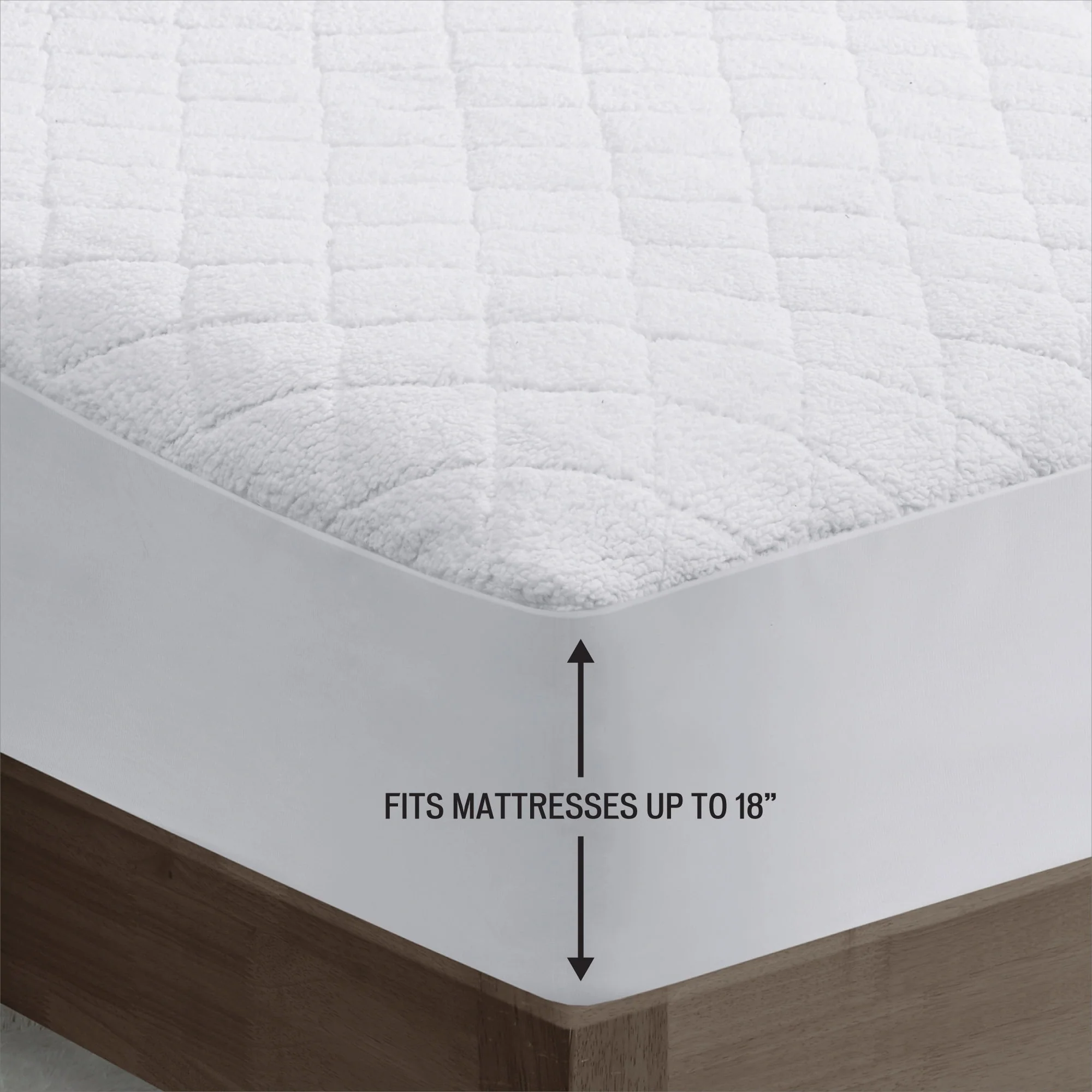 Quilted Mattress Pad �C Fitted Elastic Protector, Cover Stretches up to 18 Inches Deep Pocket - Machine Washable Topper - White