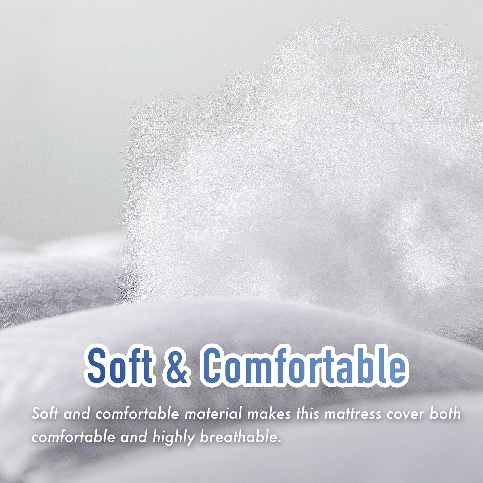 Elegant Comfort Premium Bamboo Mattress Pad - Overfilled & Breathable Cool - White