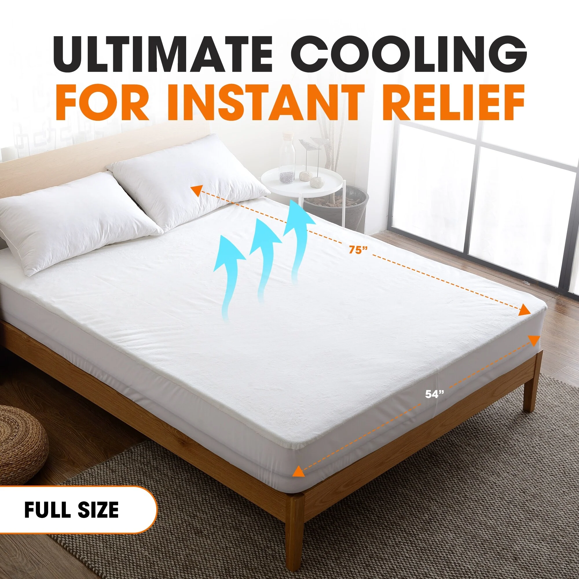 All-In-One Cooling Bamboo Fitted Mattress Pad - White
