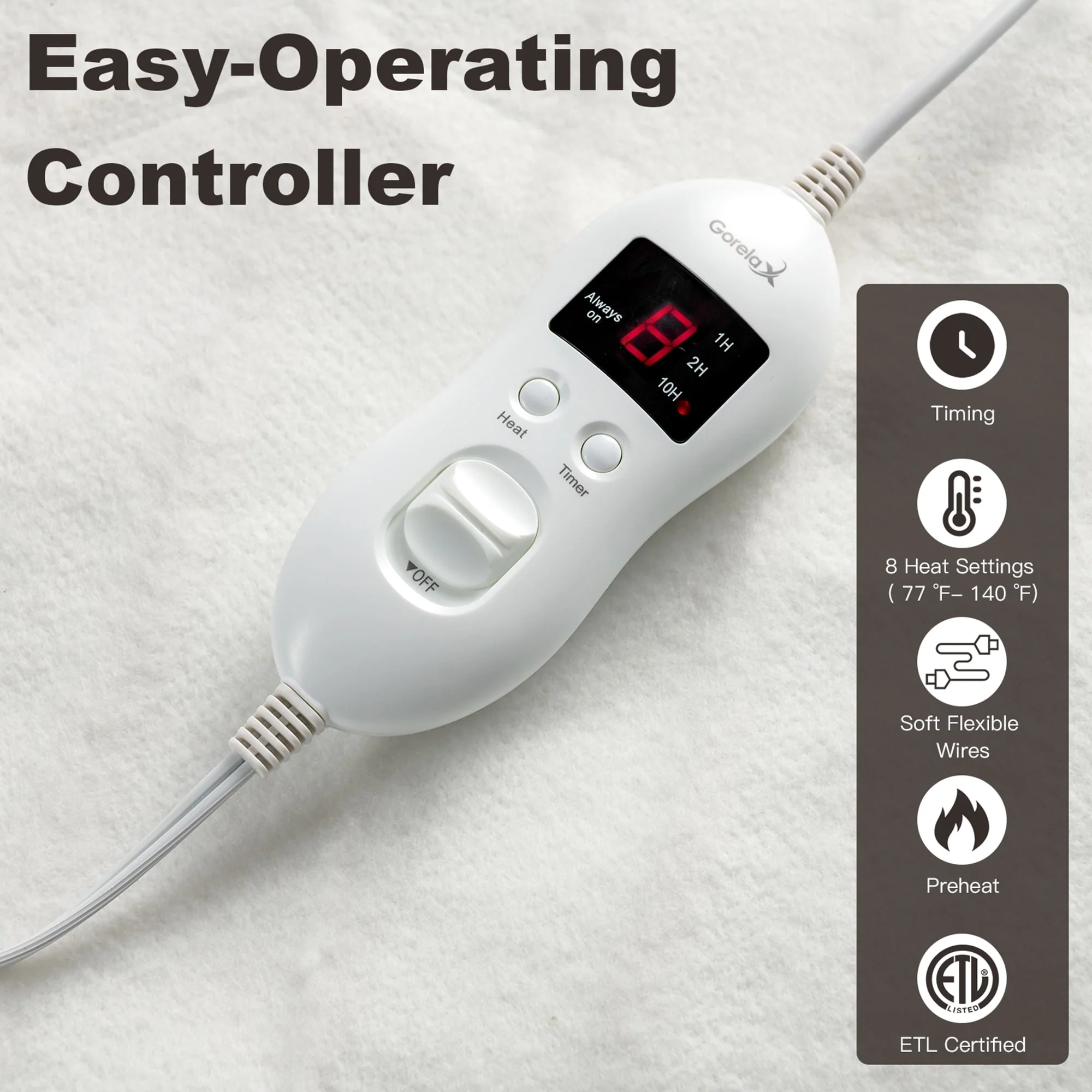 Heated Electric Mattress Queen with 8 Temperature 4 Timing Function - White