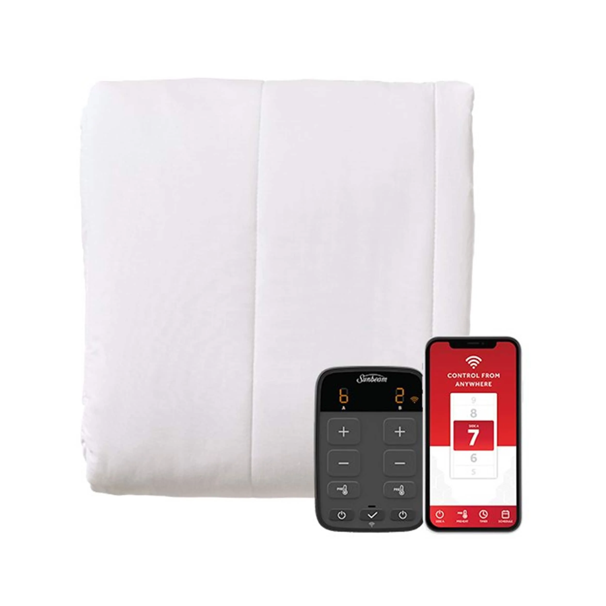 Sunbeam Queen Size Electric Mattress Pad with Dual Digital Controller and Wi-Fi Connection - White