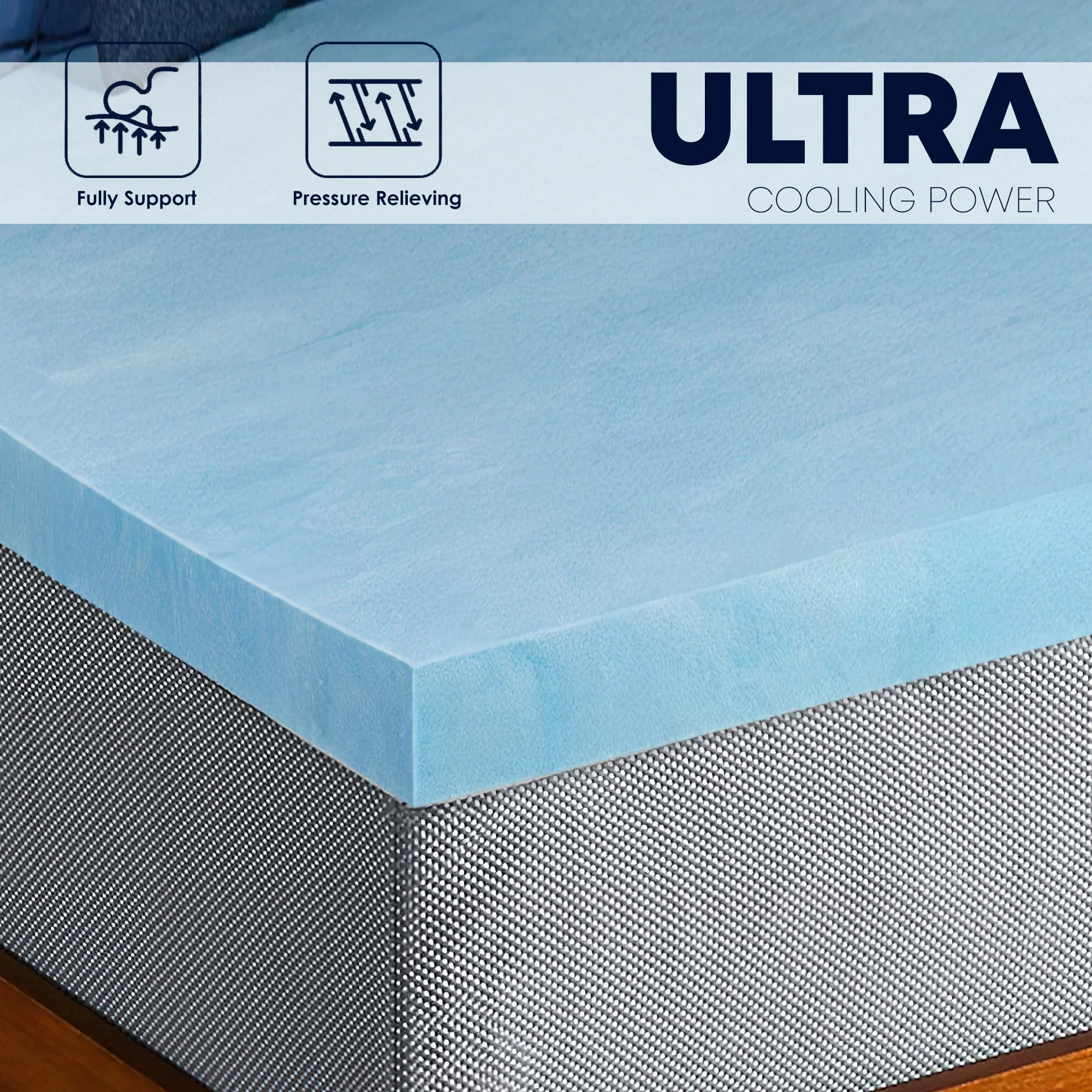 Arctic Sleep Cooling Gel infused Memory Foam Mattress Pad - Blue