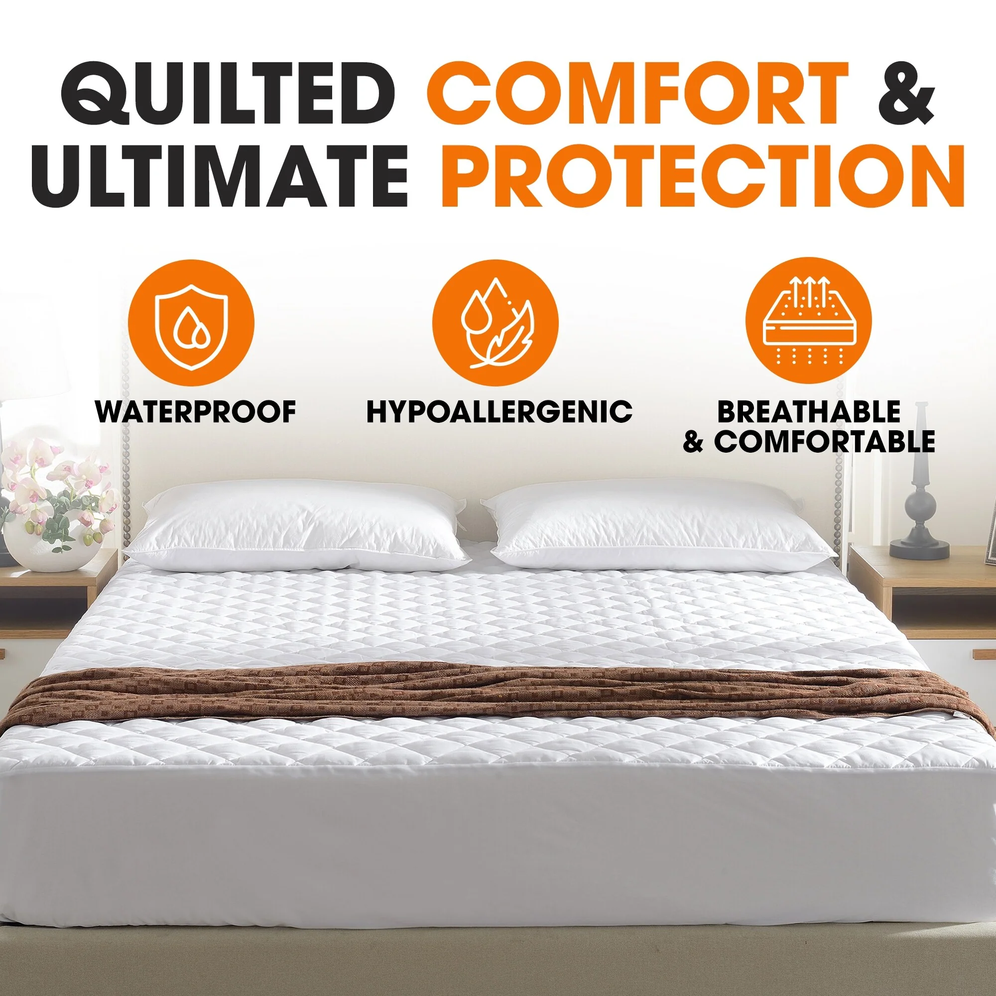 Premium Hypoallergenic Waterproof Mattress Protector - Vinyl Free - White