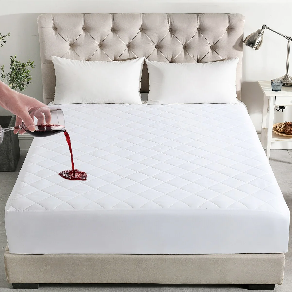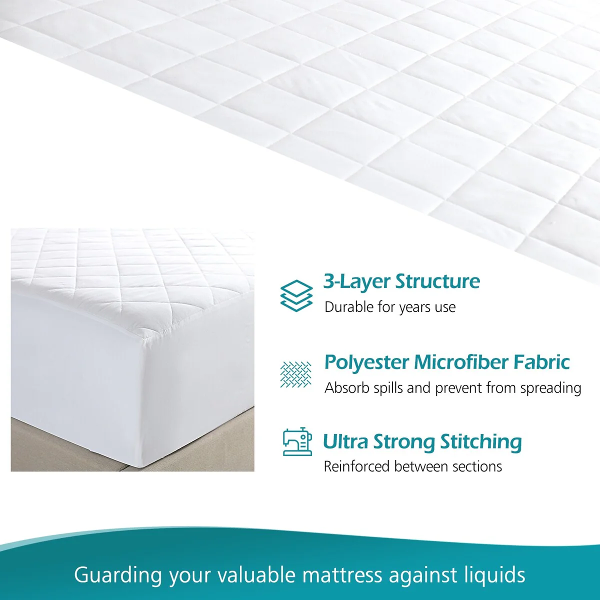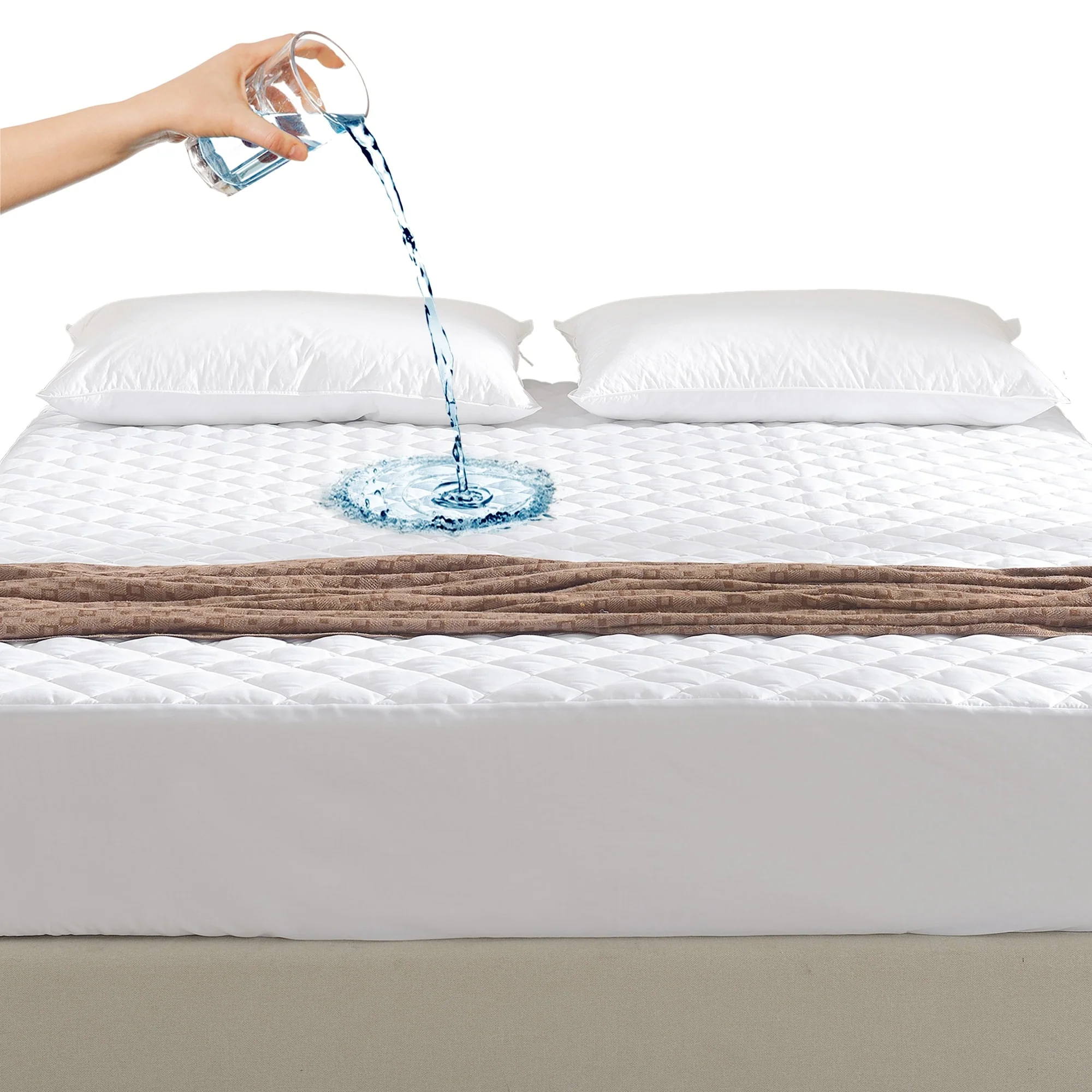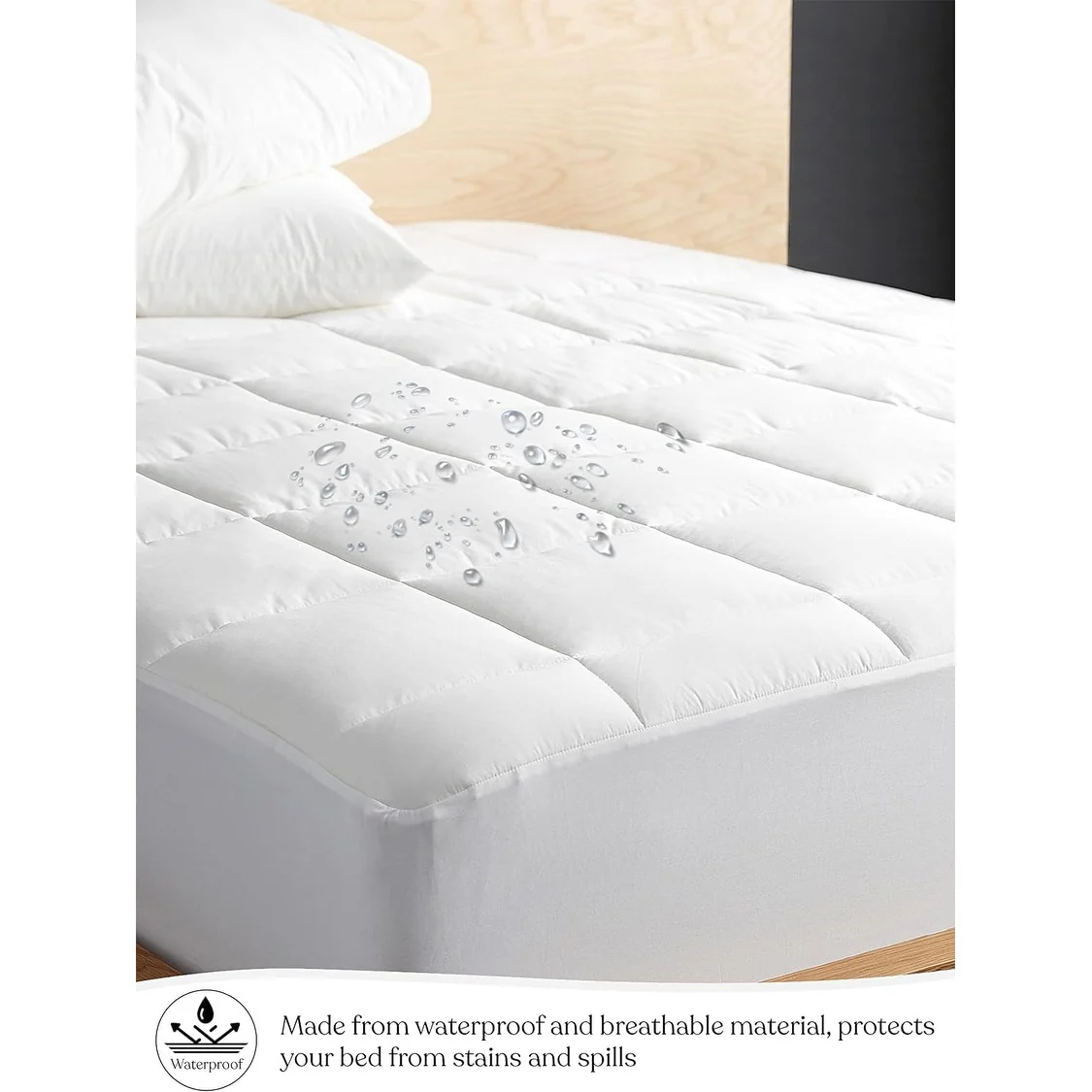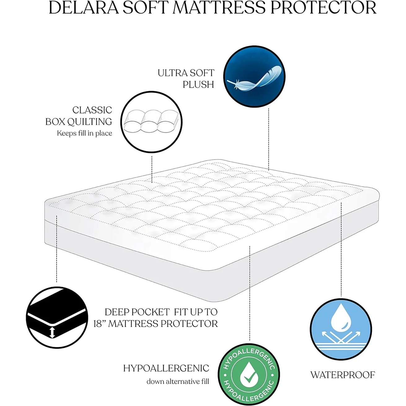 Delara 100% Waterproof 2 IN 1 Mattress Protector & Mattress Pad-Quilted Fitted Down Alternative Mattress Pad Cover - White