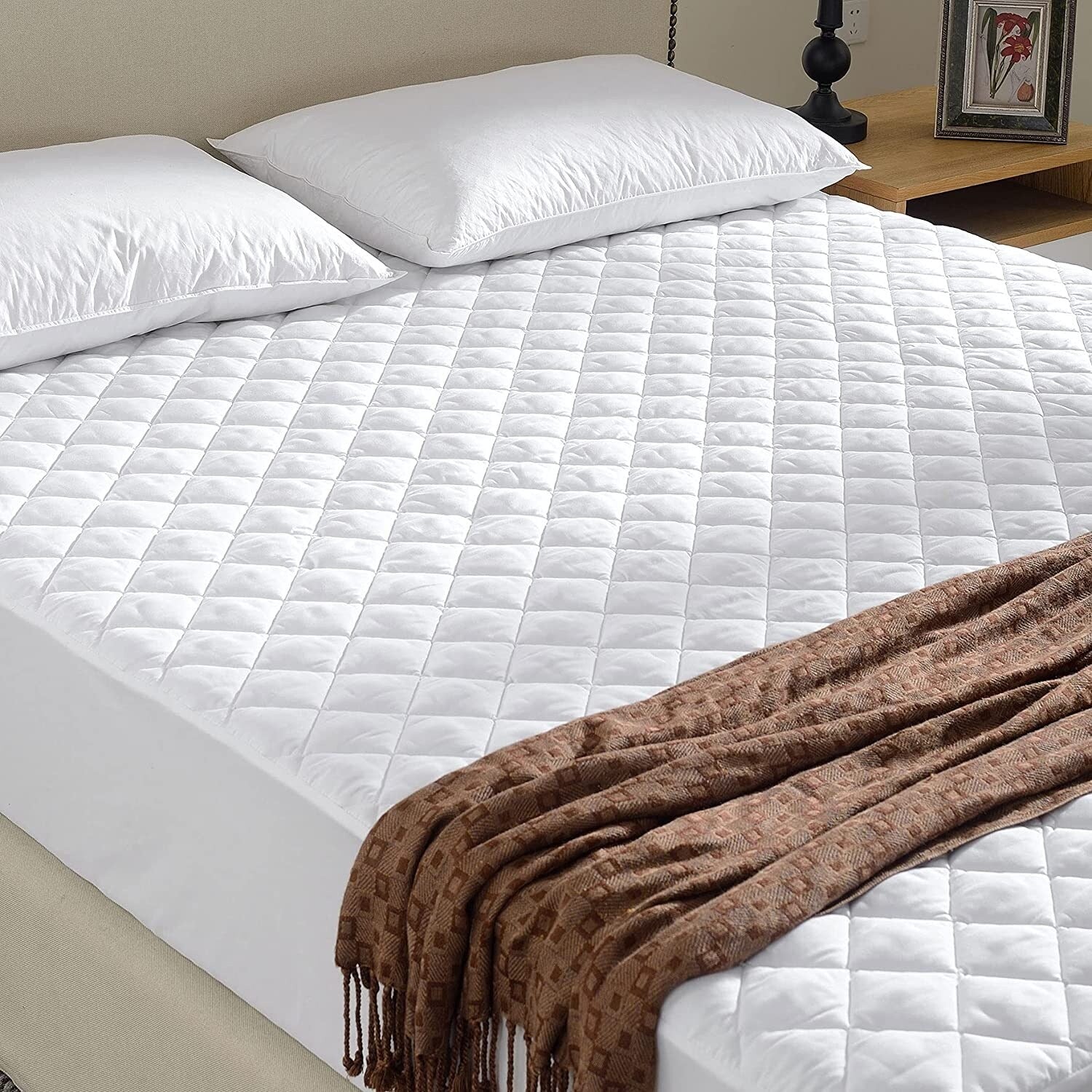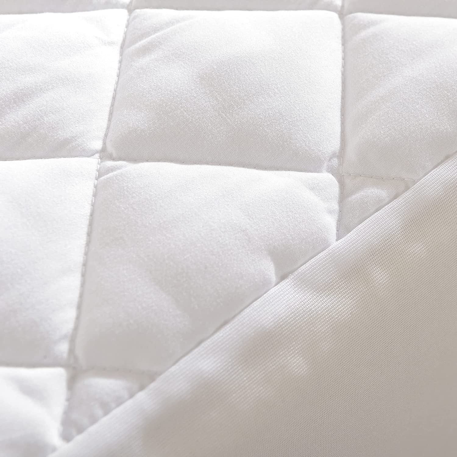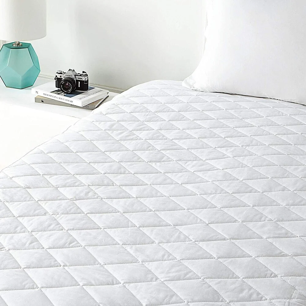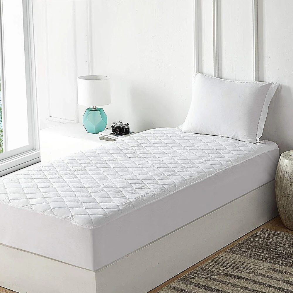 Lincove 100% Cotton Quilted Fitted Mattress Pad �C Elastic Fitted Mattress Protector - Machine Washable and Dryer Safe - White