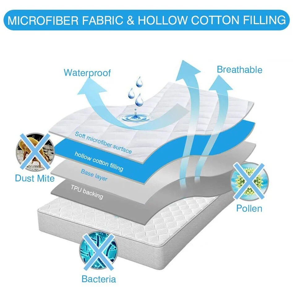 Quilted Waterproof Fitted Elastic Mattress Protector 12" Pocket Stretches up to 18"