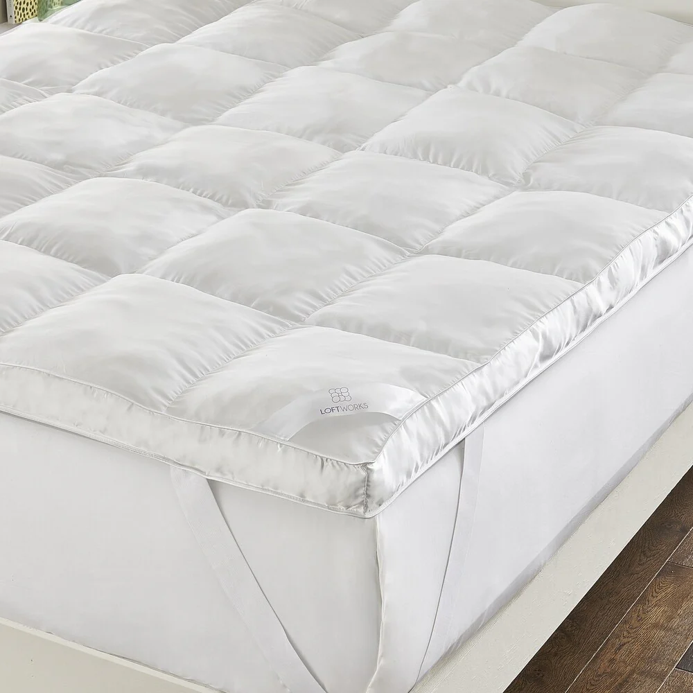 Loftworks Super-Loft 3 inch Down Alternative Mattress Topper / Fiber Bed with anchor bands - White
