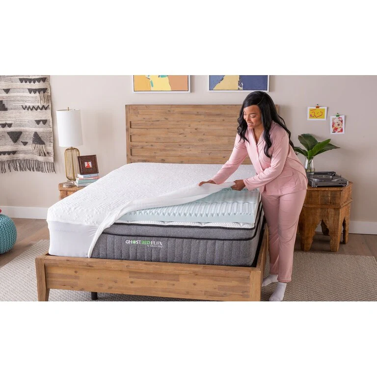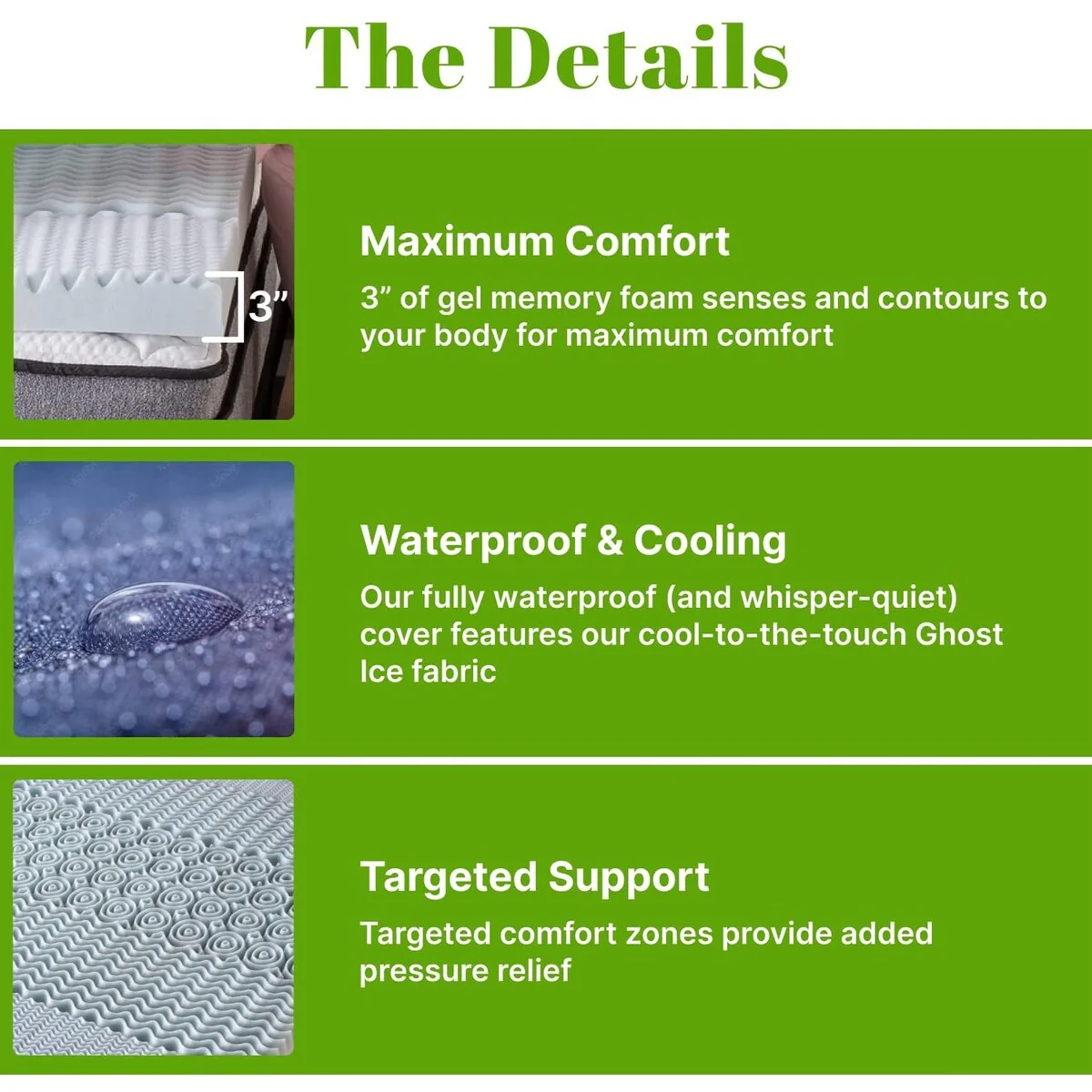 GhostBed 3 Inch Cooling Gel Memory Foam Mattress Topper - Waterproof Cover, Protector & Topper in One