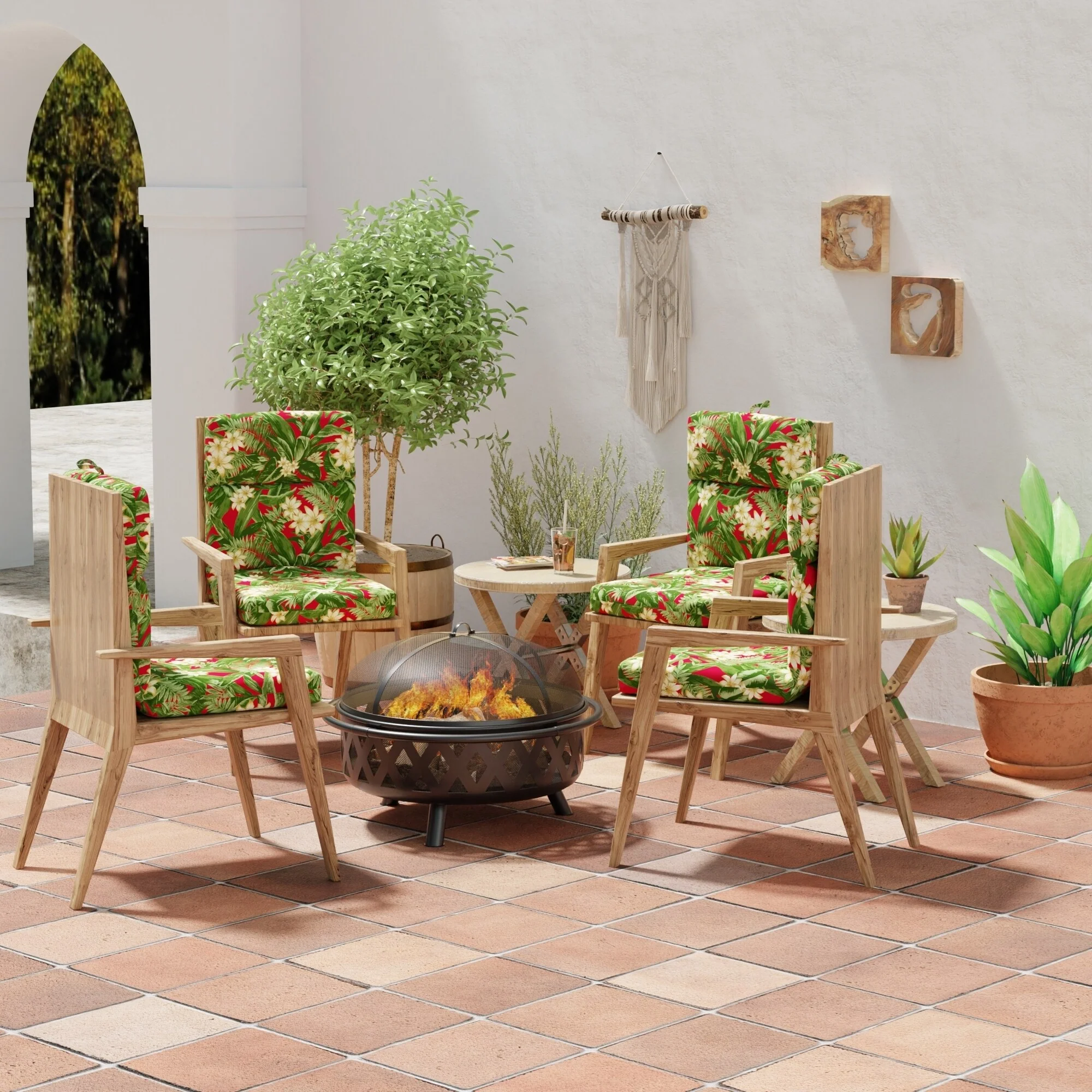 22-in x 44-in Outdoor Palm Leaves High Back Chair Cushion (Set of 2) (Cushions Only)