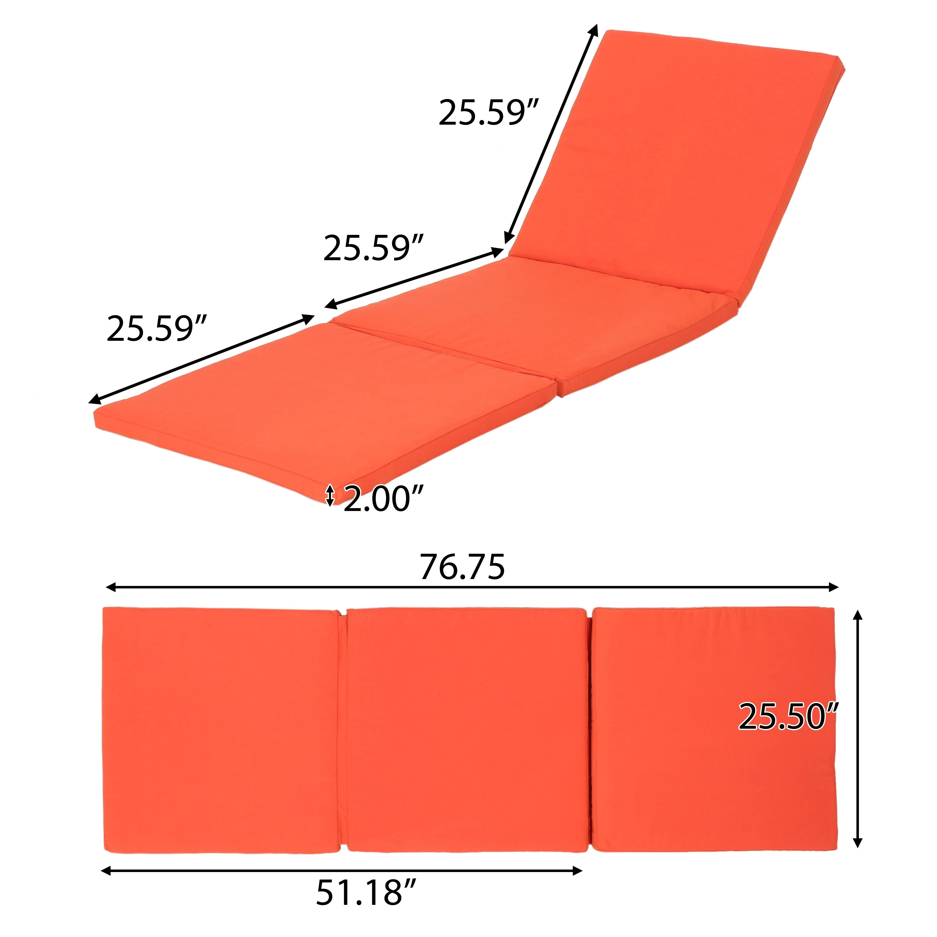 72" x 22" Outdoor Chaise Lounge Cushion with Ties and Loop - 72'' L x 22'' W x 3.5'' H