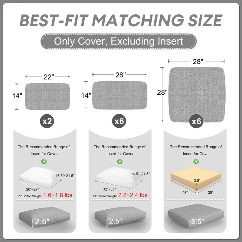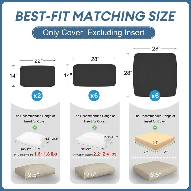 ARDEN Outdoor Deep Seating Cushion Set 24 x 24 - 46.5"L x 24"W