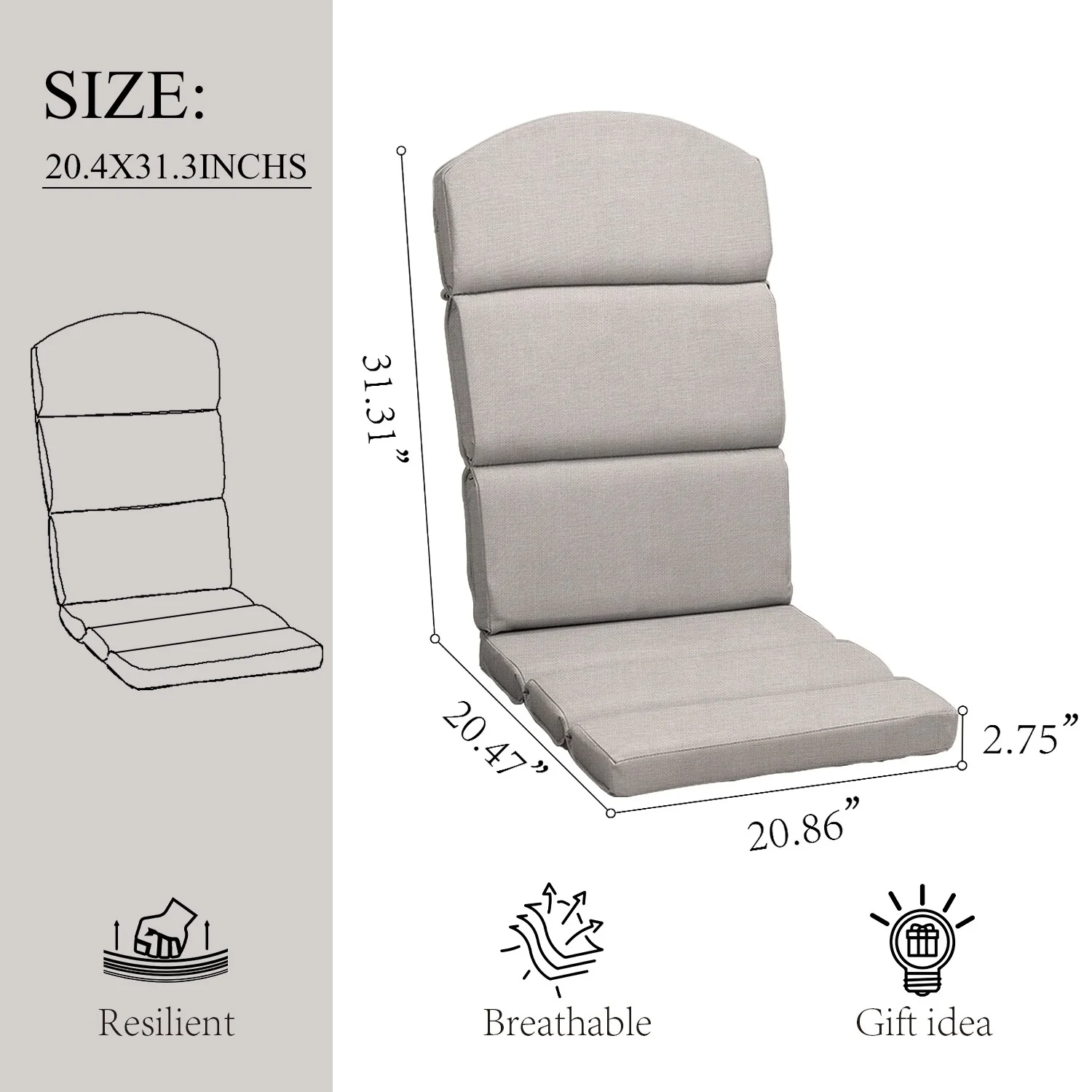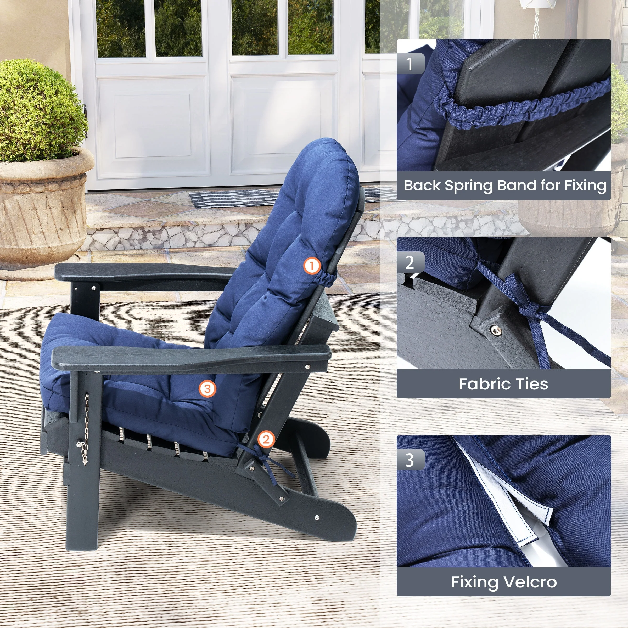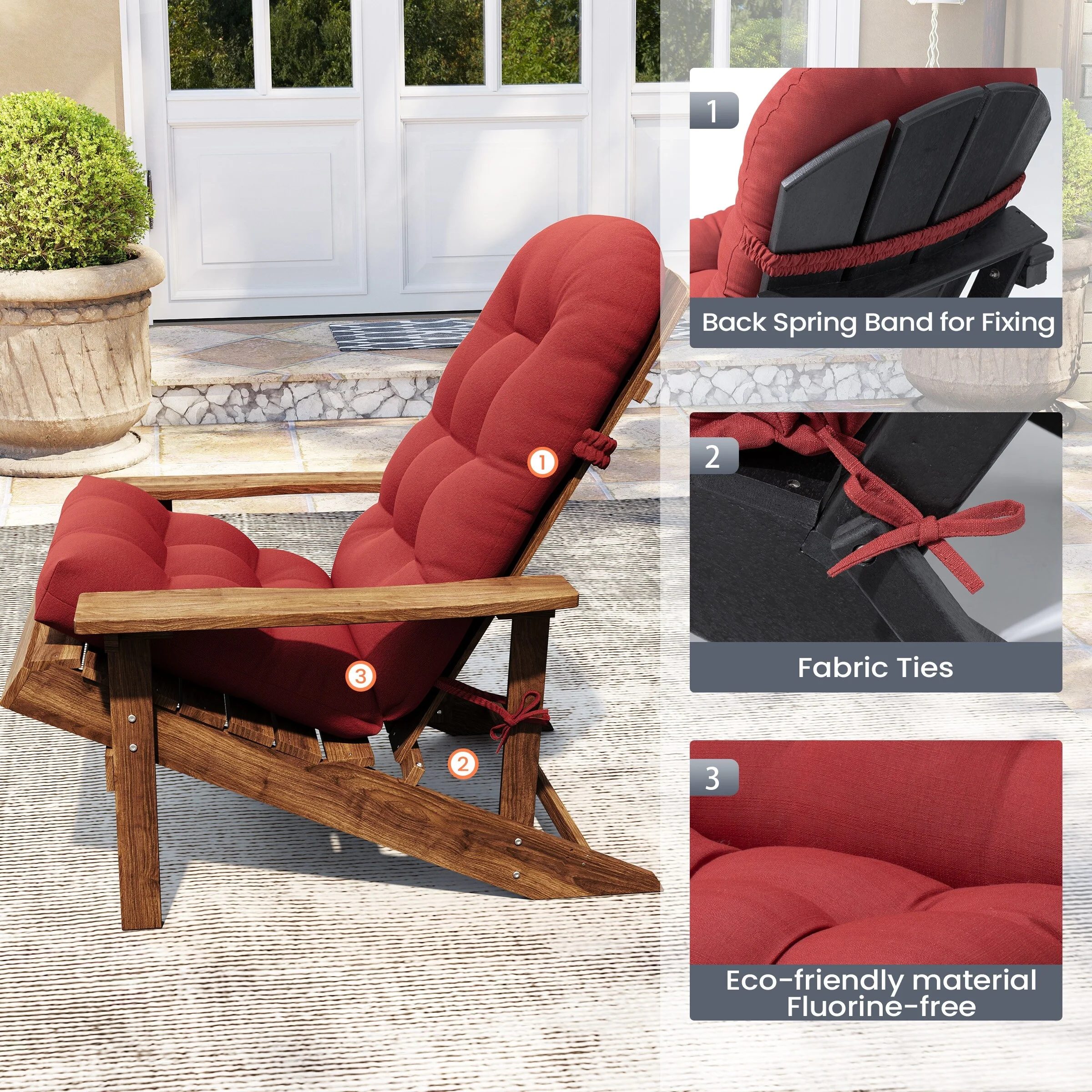 Outdoor Adirondack Chair Cushion Rocking Chair Cushions Thickened Patio Chair Pad with Sunbrella