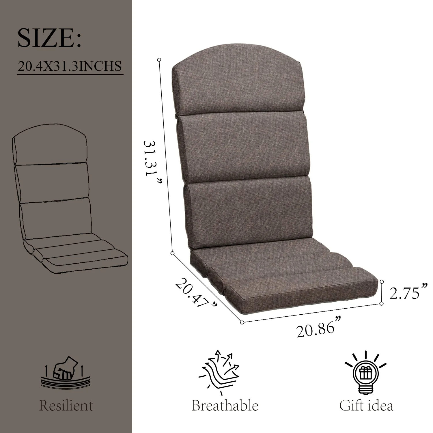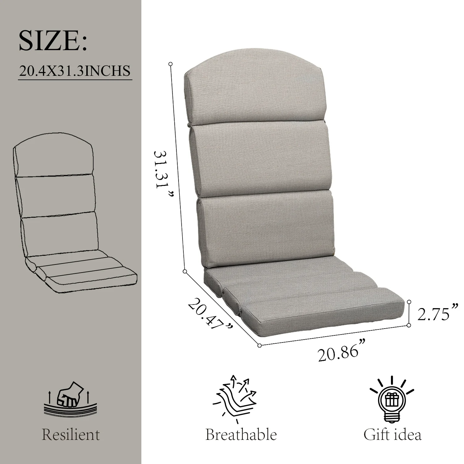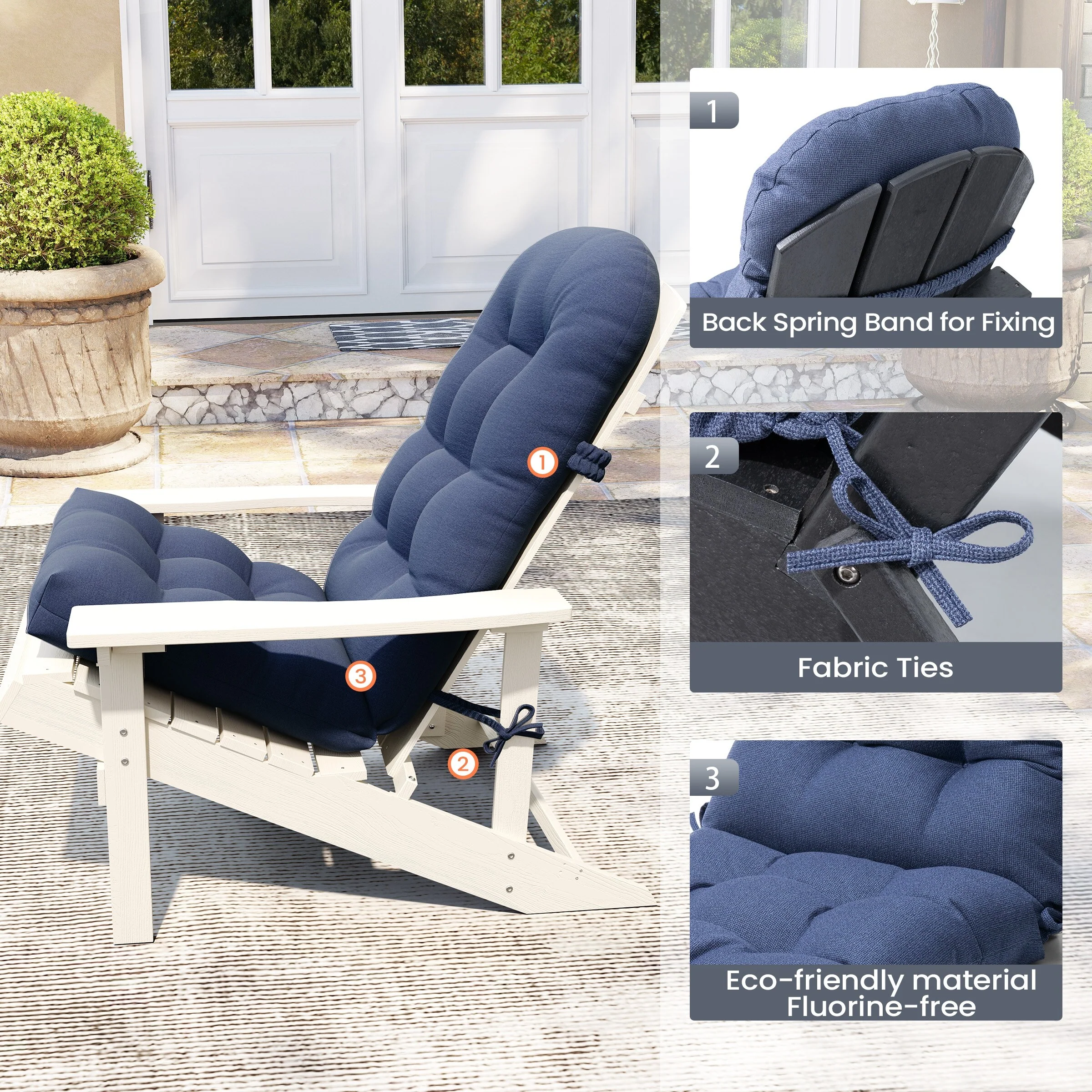 Outdoor Adirondack Chair Cushion Rocking Chair Cushions Thickened Patio Chair Pad with Sunbrella