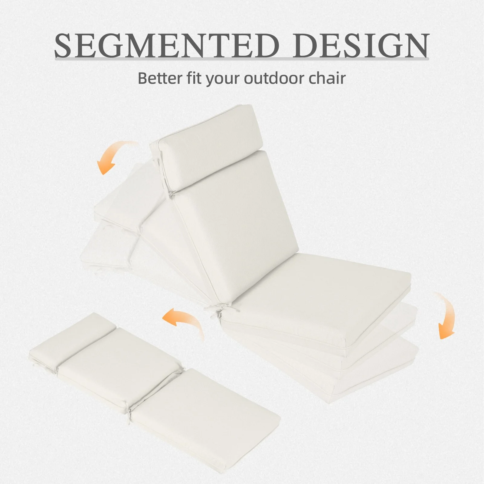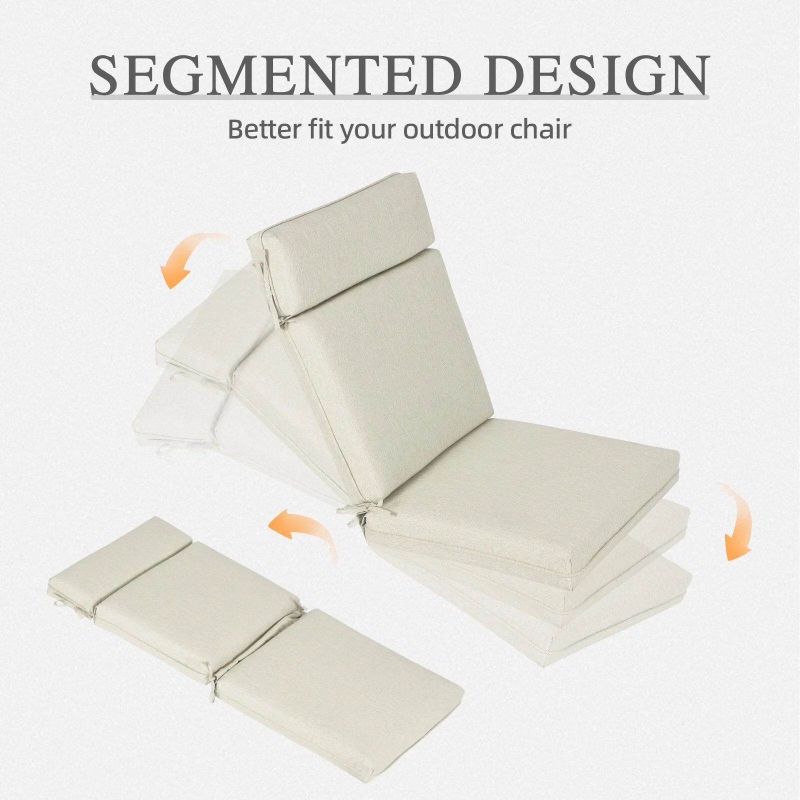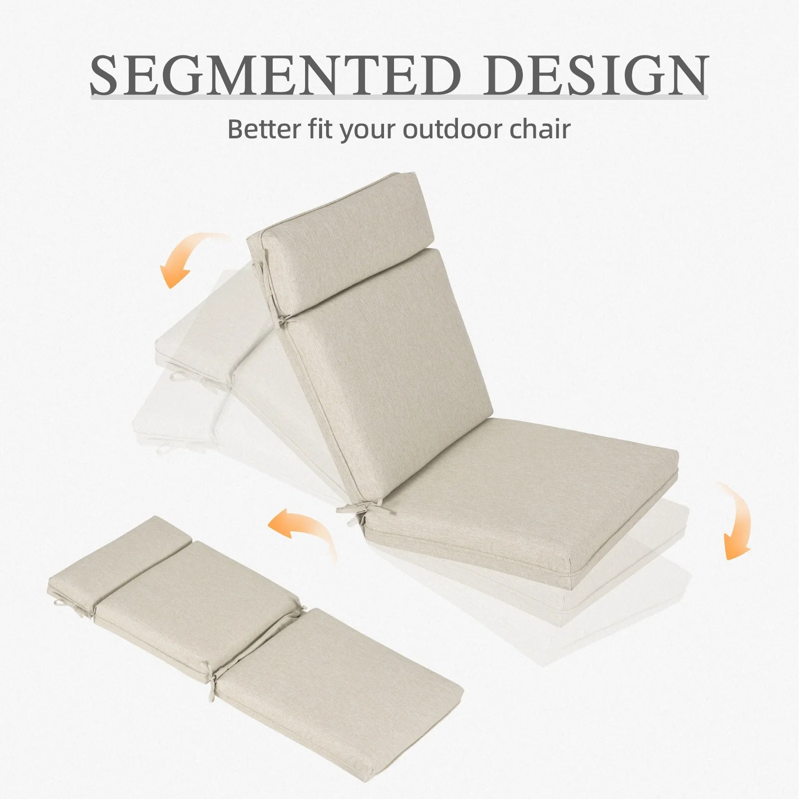 2 Inch Thick Cream Chaise Lounge Cushion Waterproof Foldable 2 Section Design for Poolside Patio and Garden