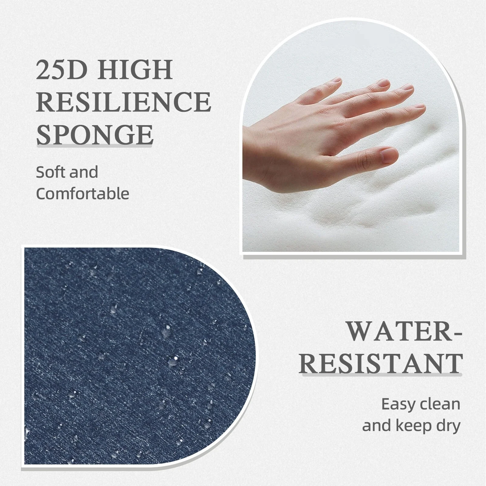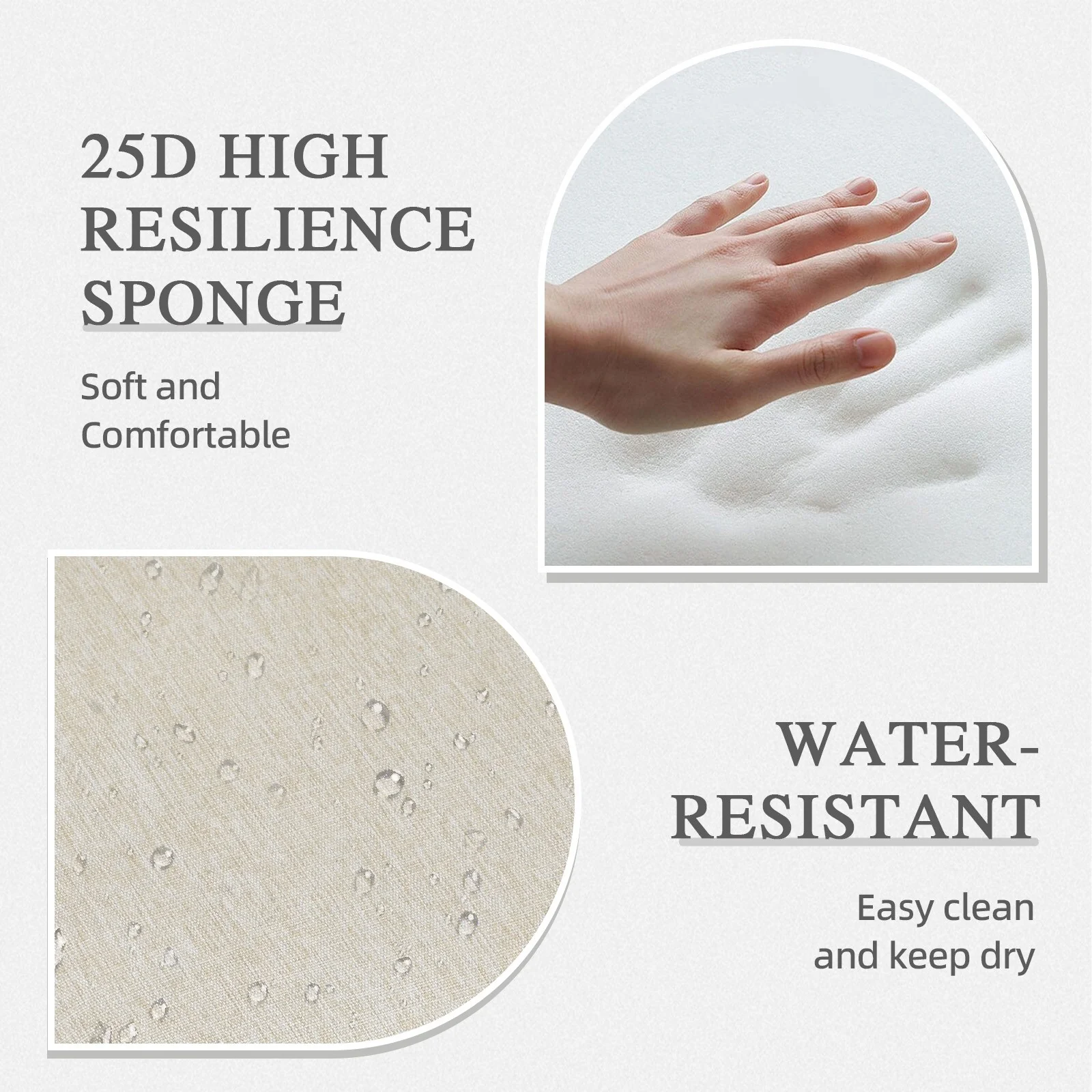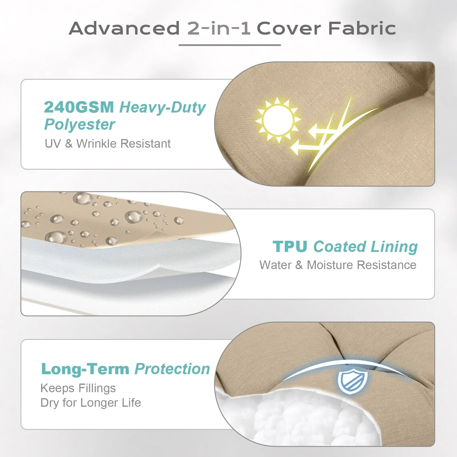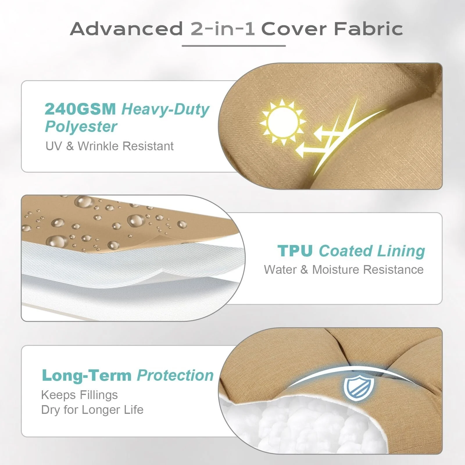 2 Inch Thick Cream Chaise Lounge Cushion Waterproof Foldable 2 Section Design for Poolside Patio and Garden
