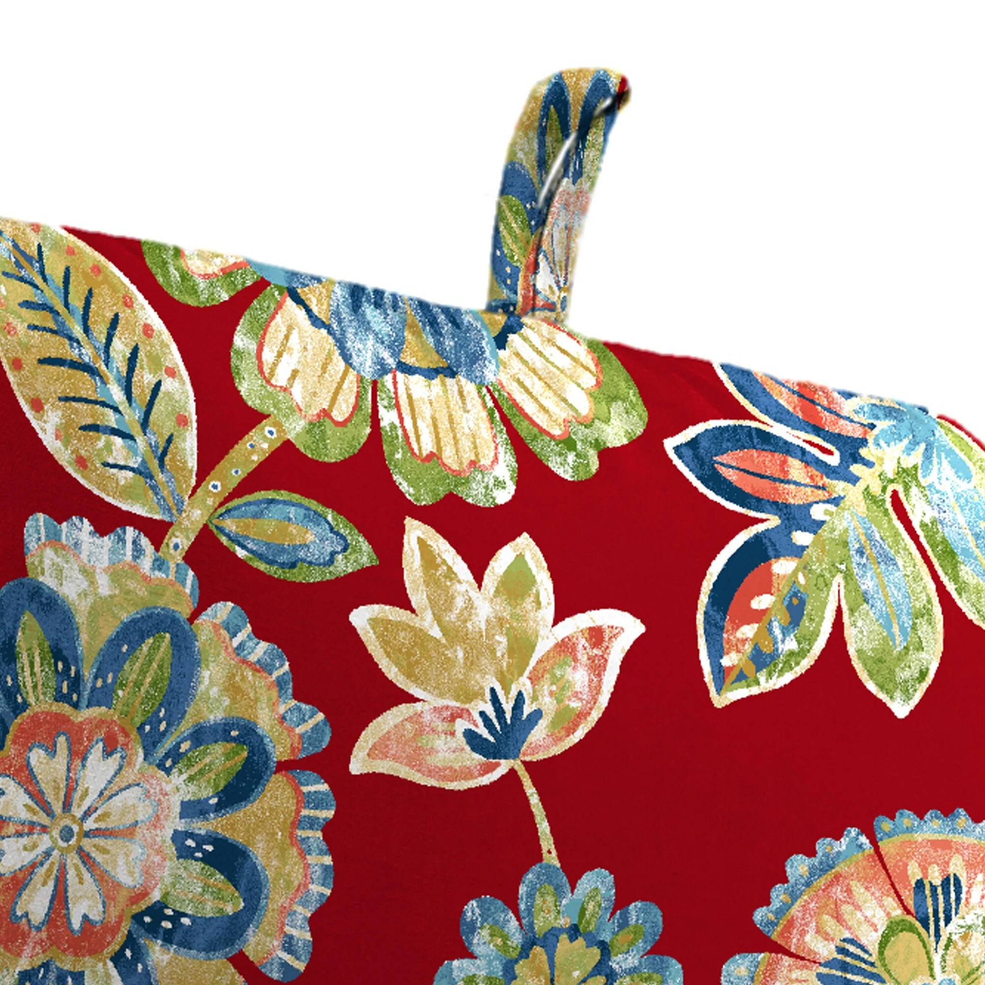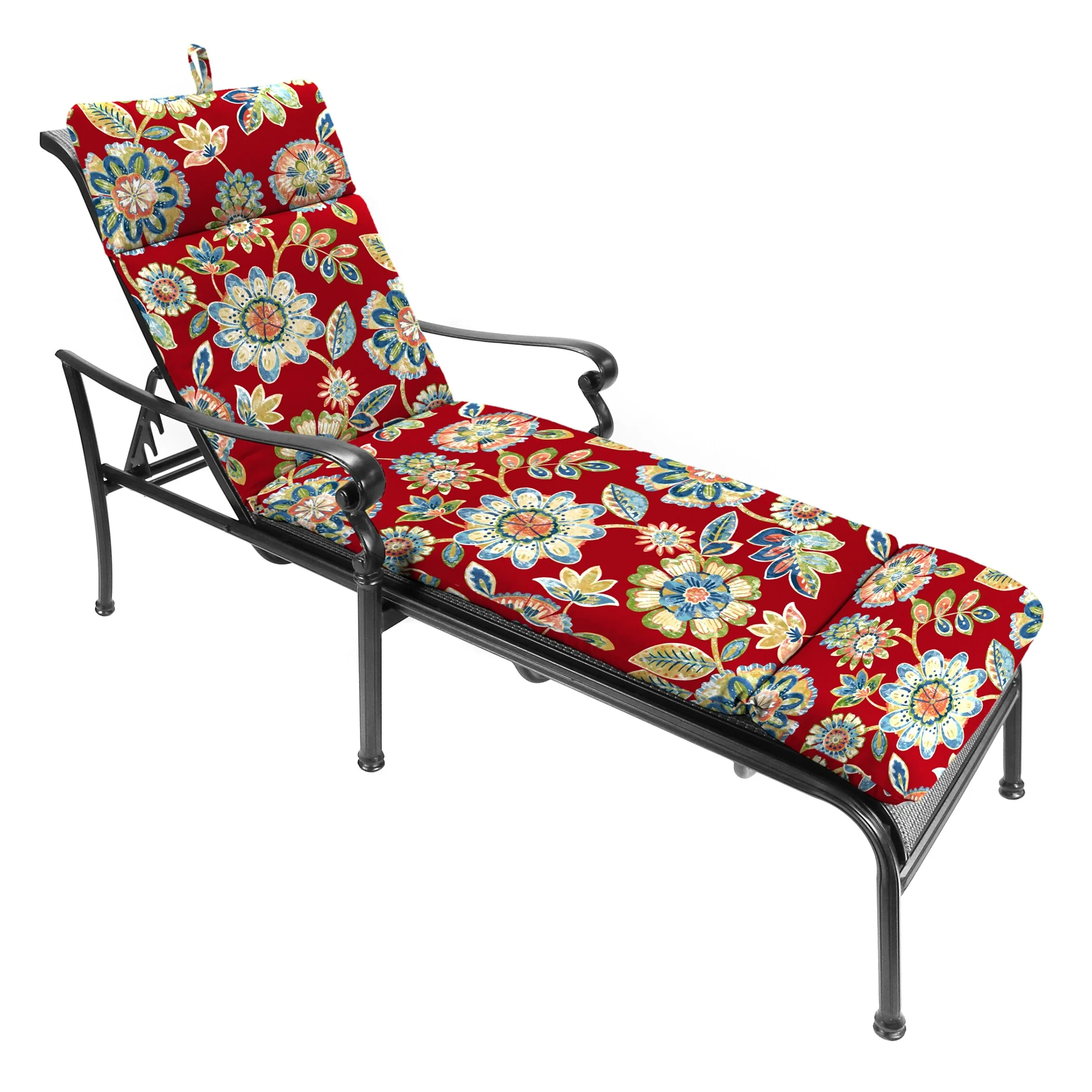 74" x 22" Red Floral Outdoor Chaise Lounge Cushion with Ties and Loop - 74'' L x 22'' W x 5'' H