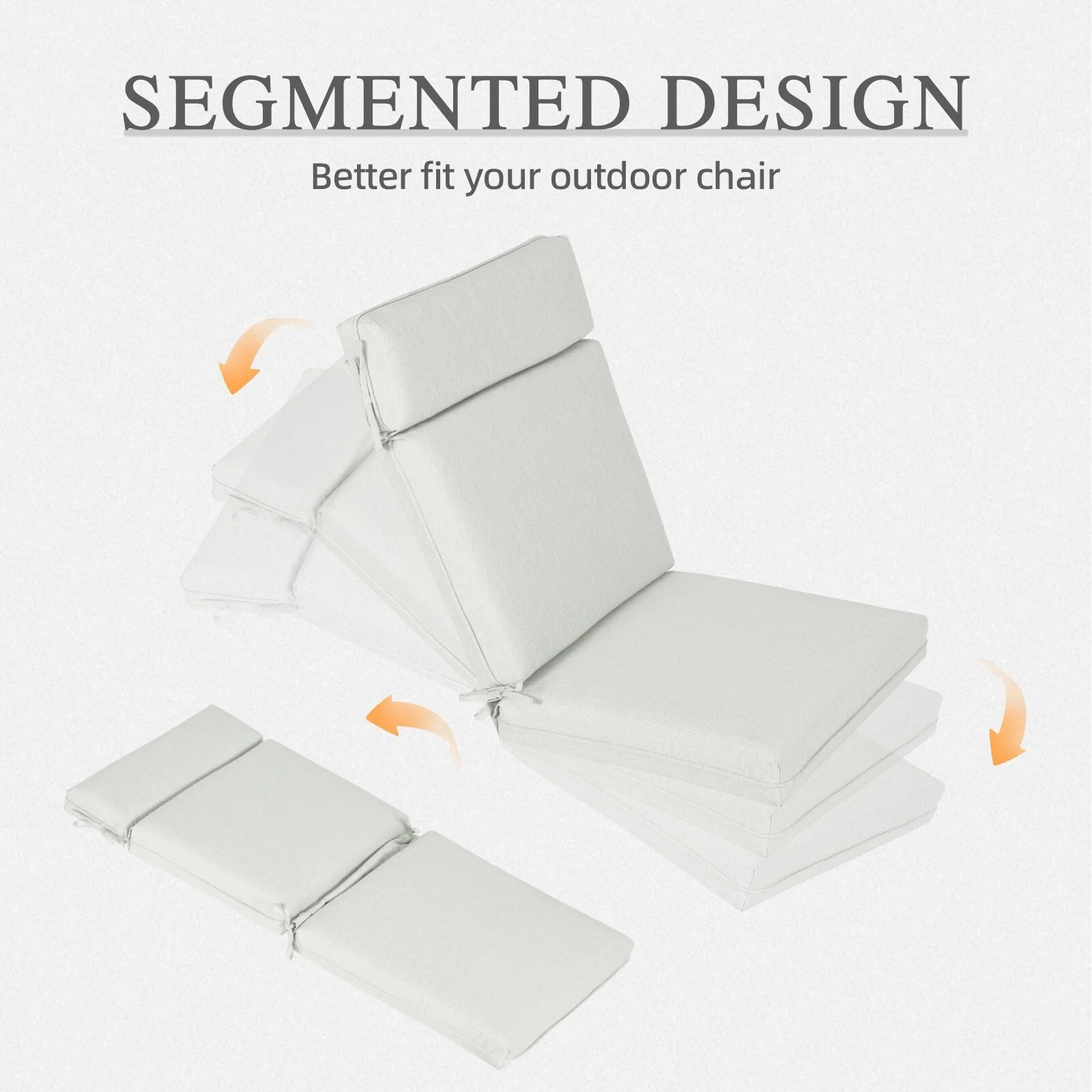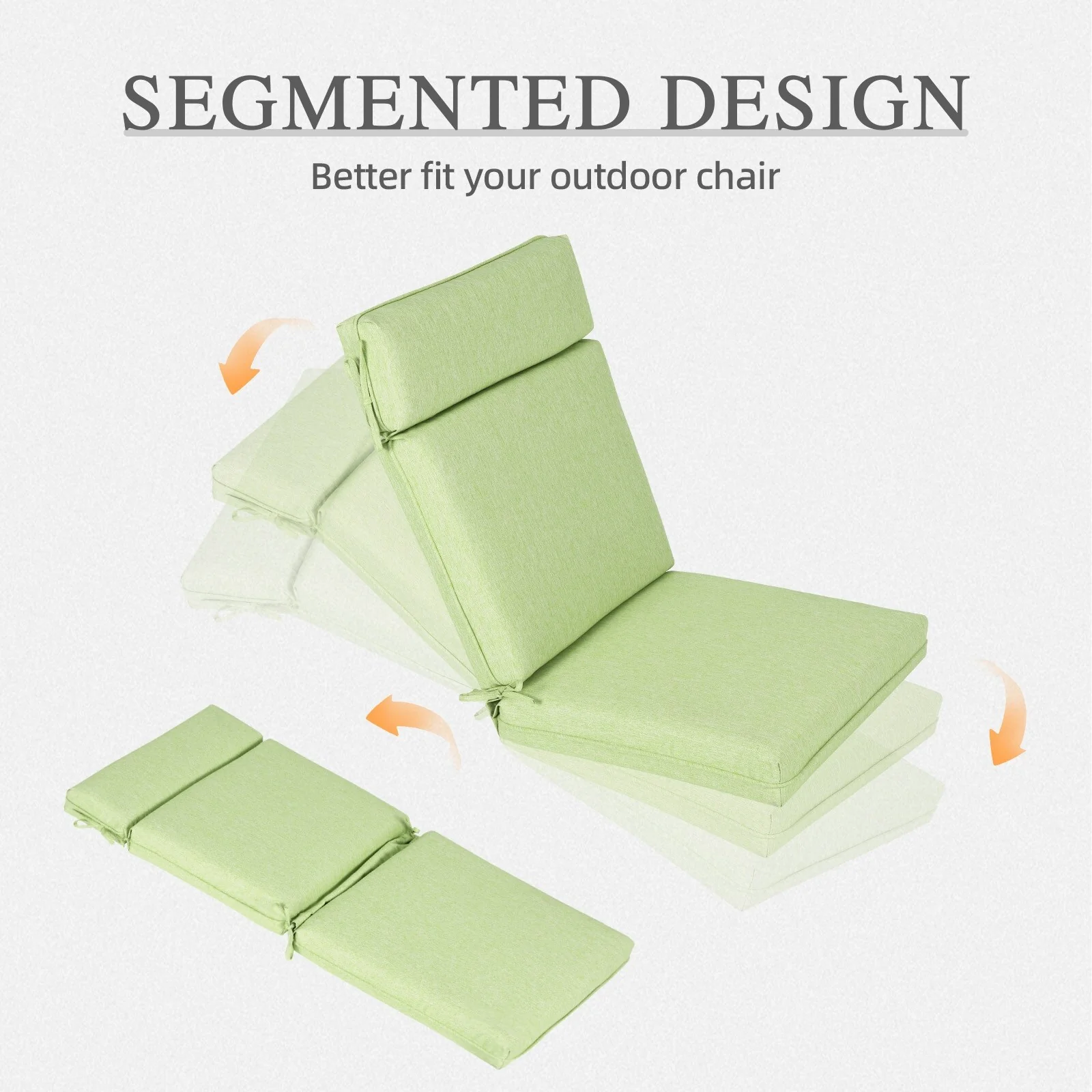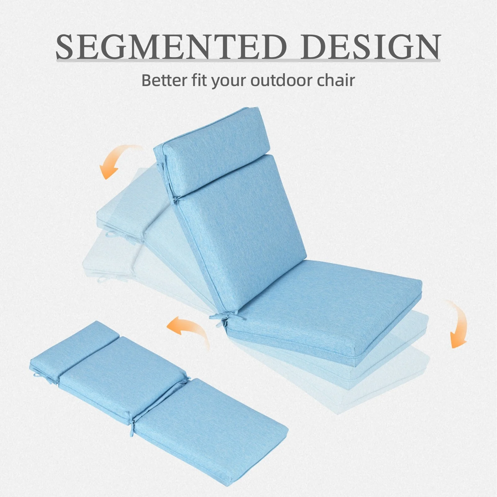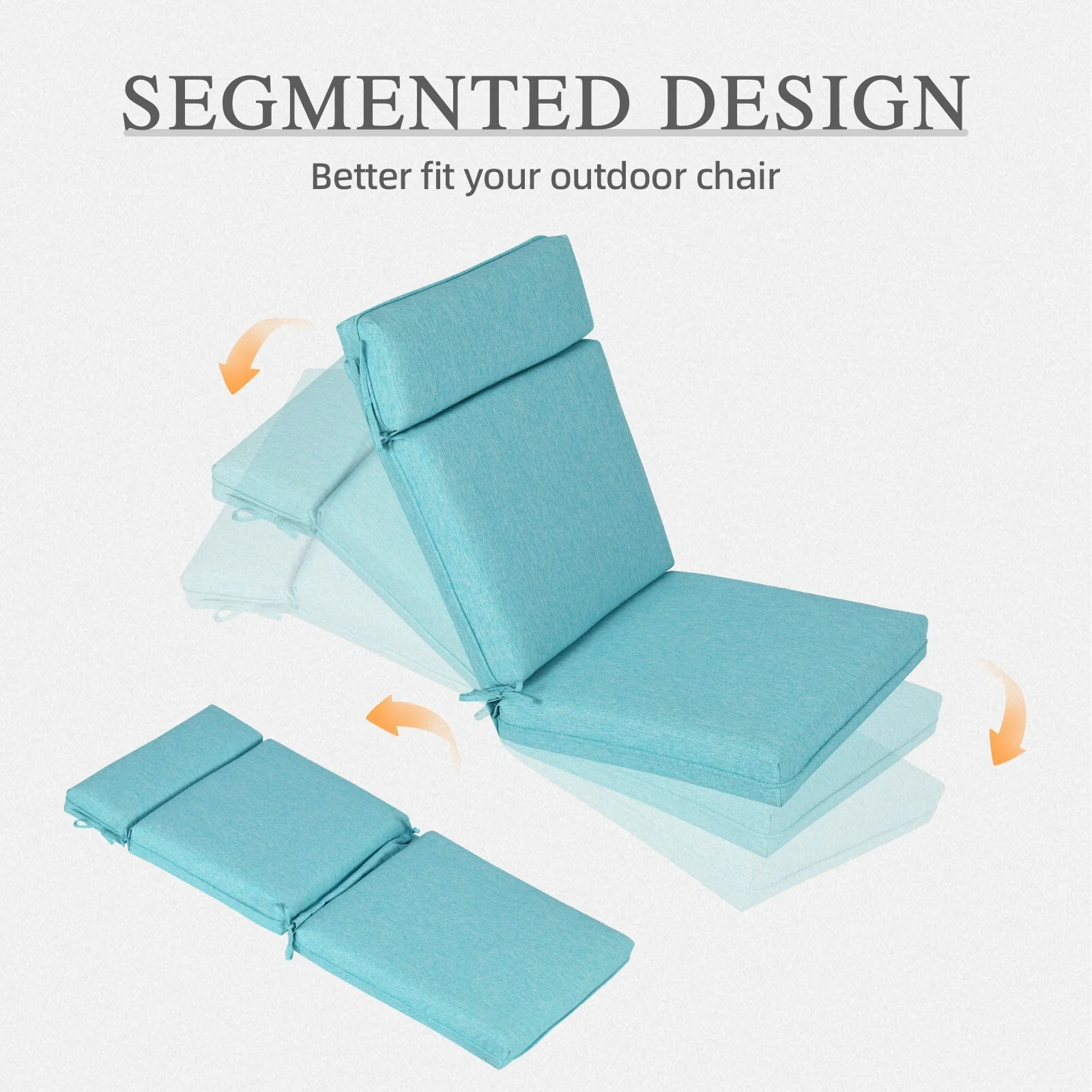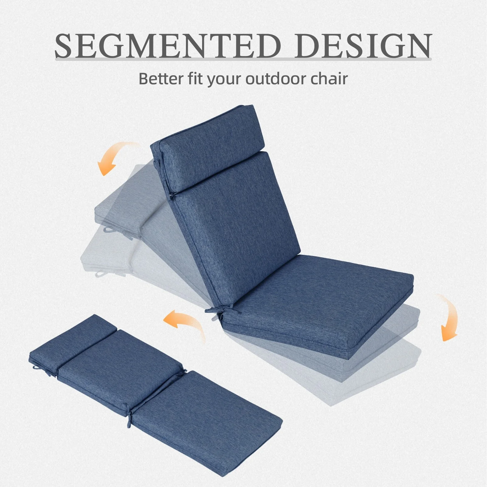 Outdoor Reclining Chair Cushions With Headrest High Density Foam Seat Cushions With Ties Weather Resistant