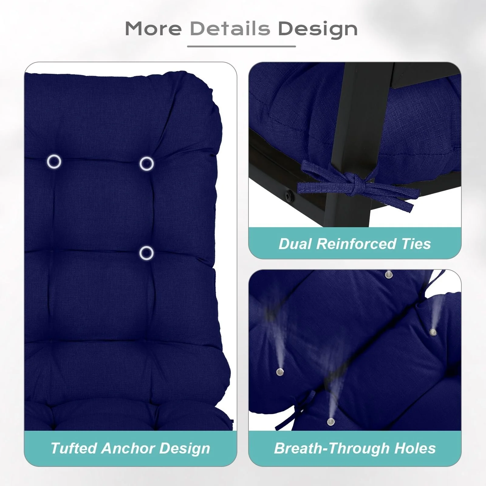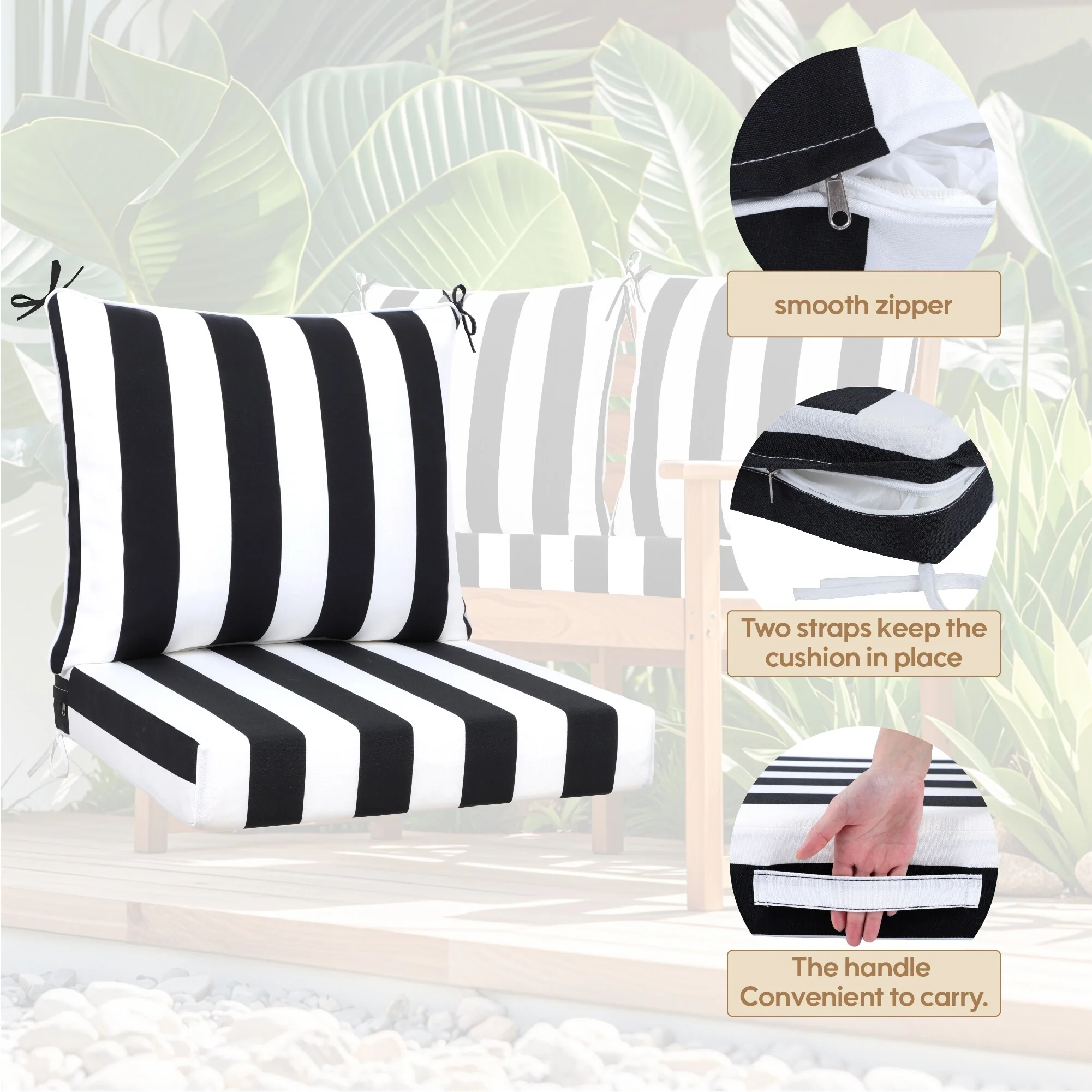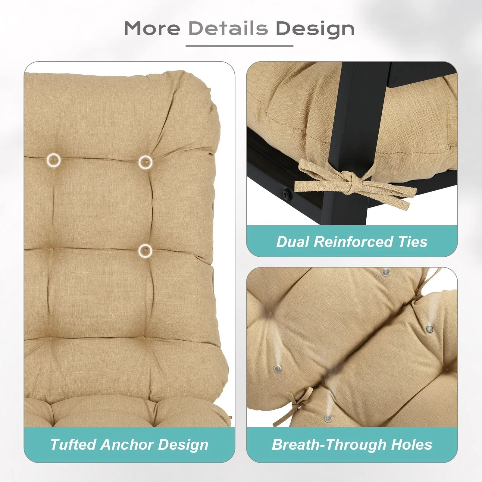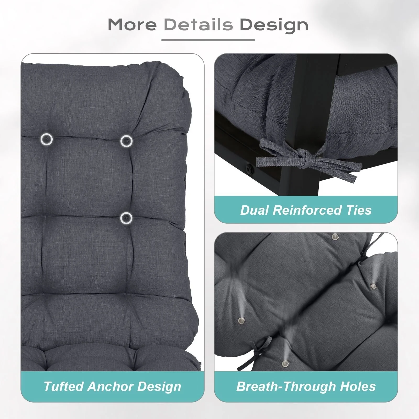 Outdoor Reclining Chair Cushions With Headrest High Density Foam Seat Cushions With Ties Weather Resistant