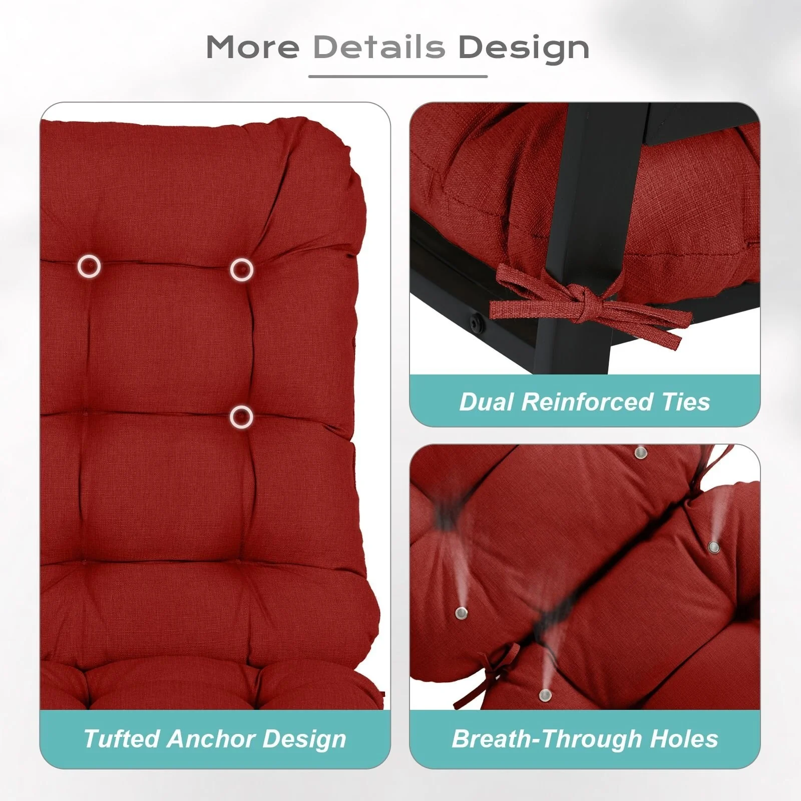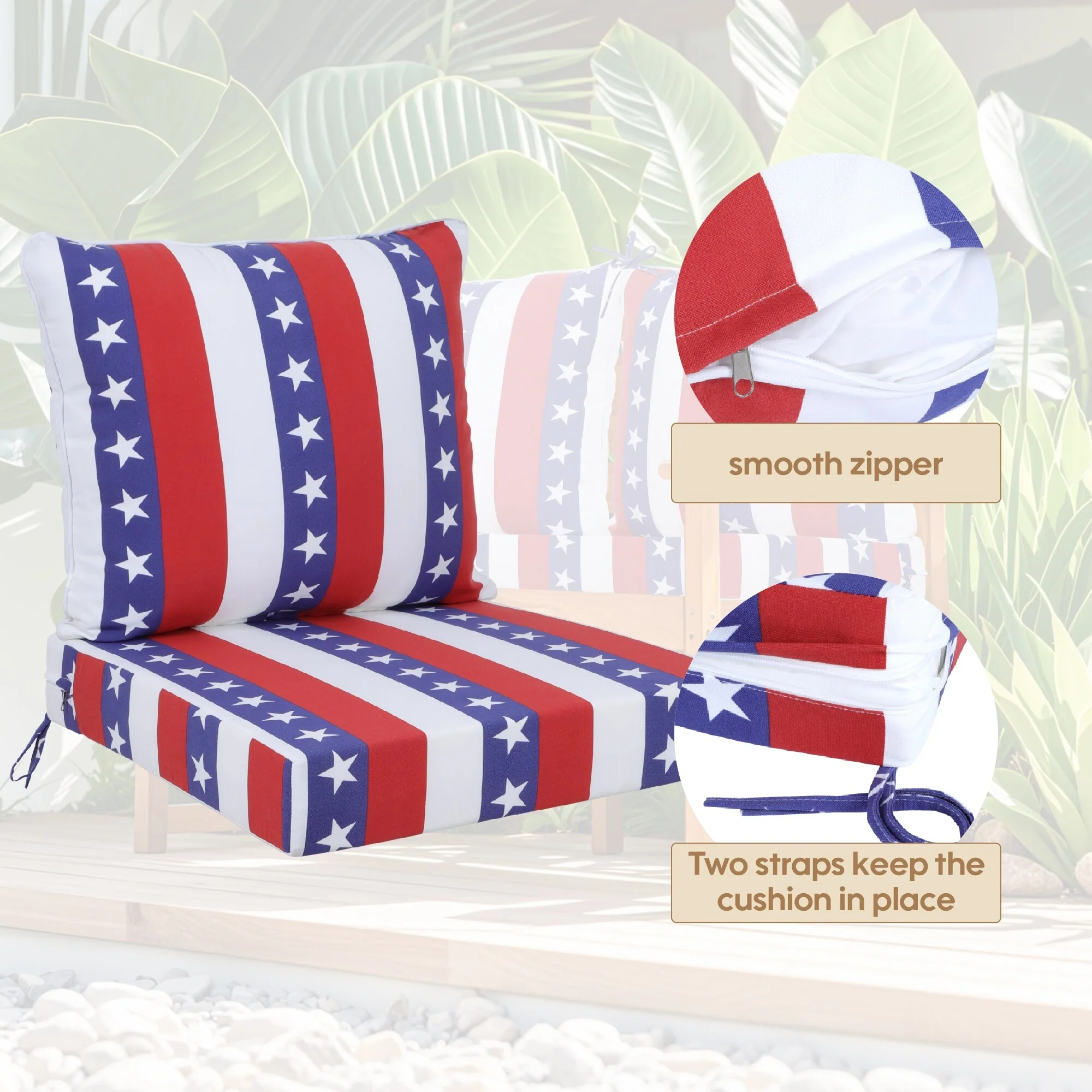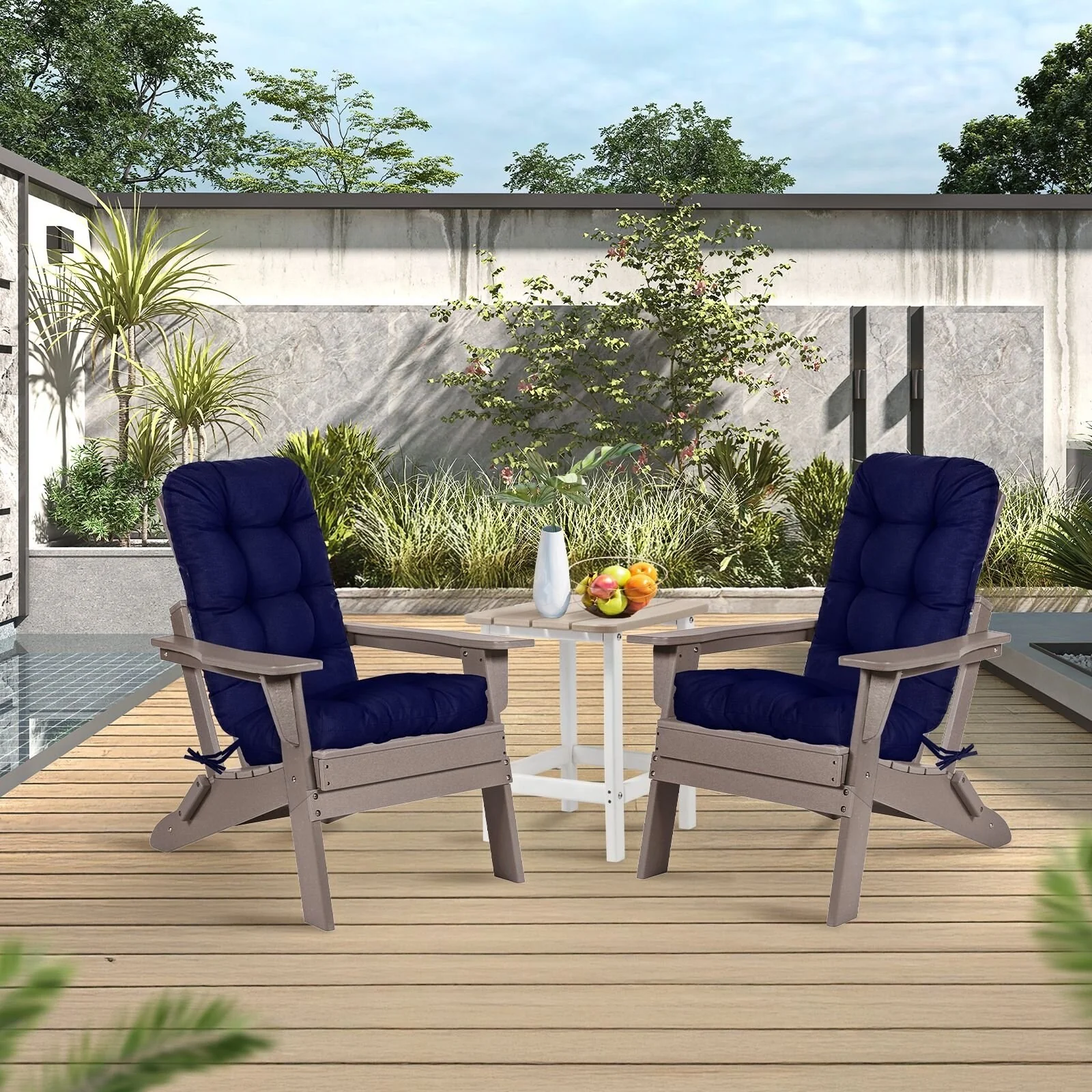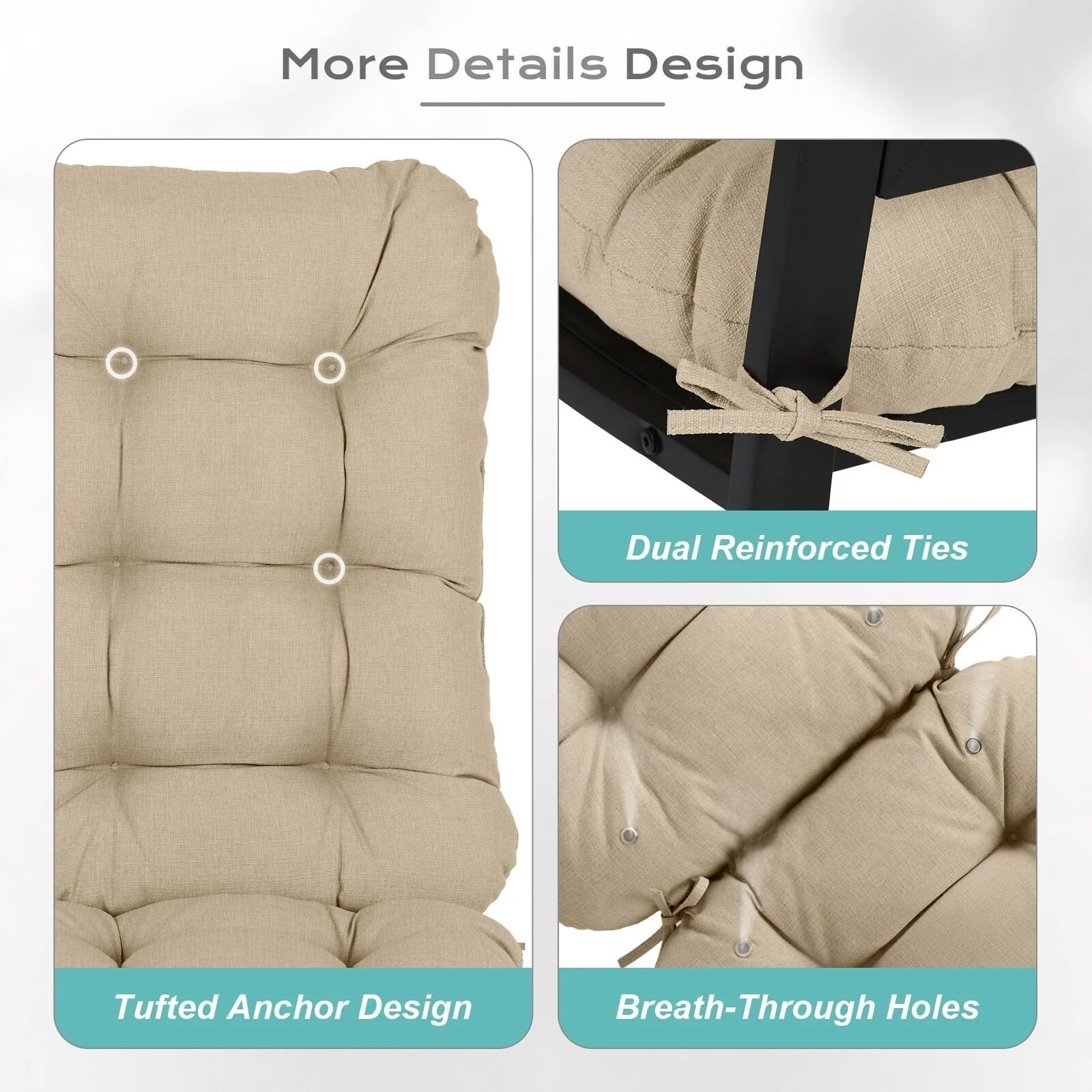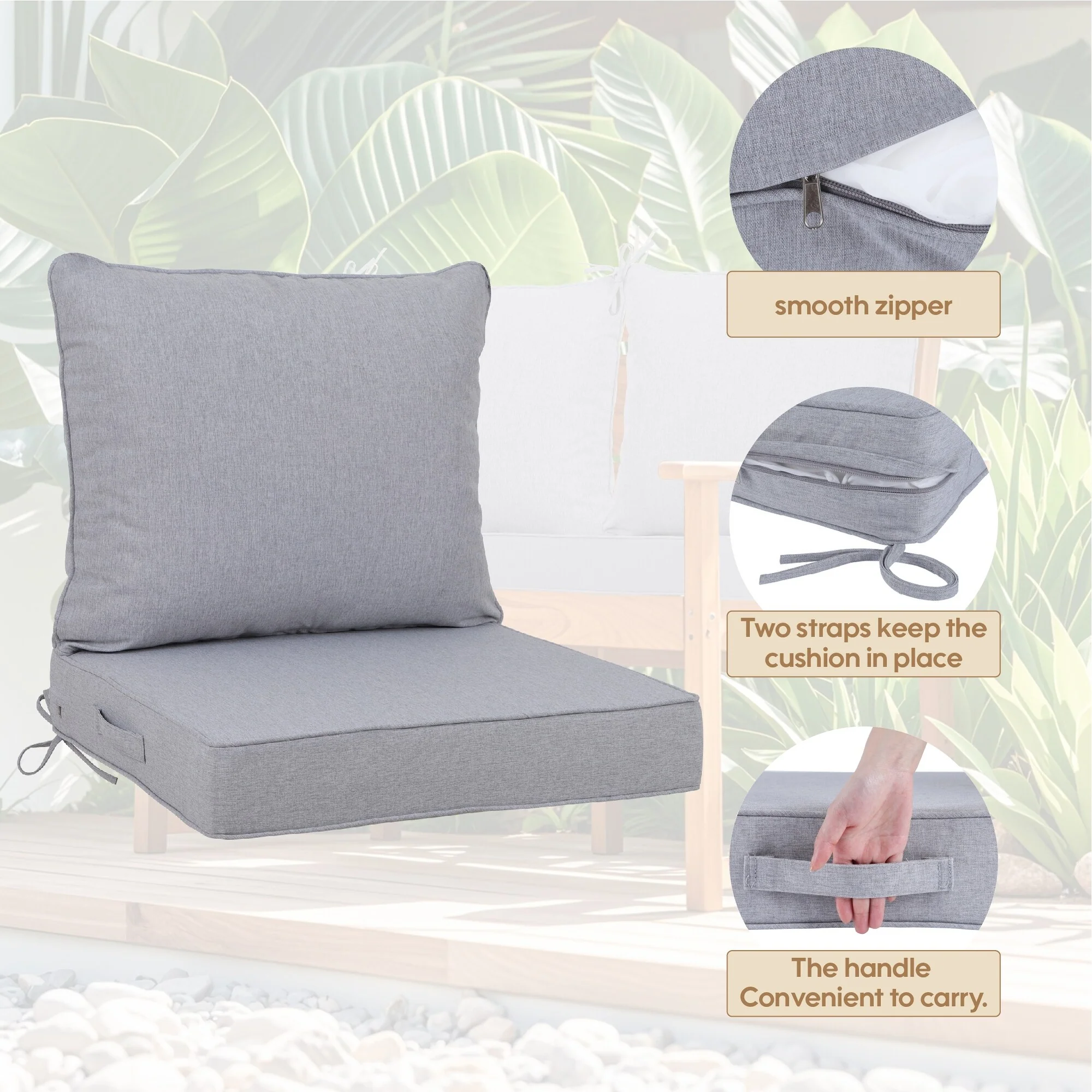 Outdoor Reclining Chair Cushions With Headrest High Density Foam Seat Cushions With Ties Weather Resistant