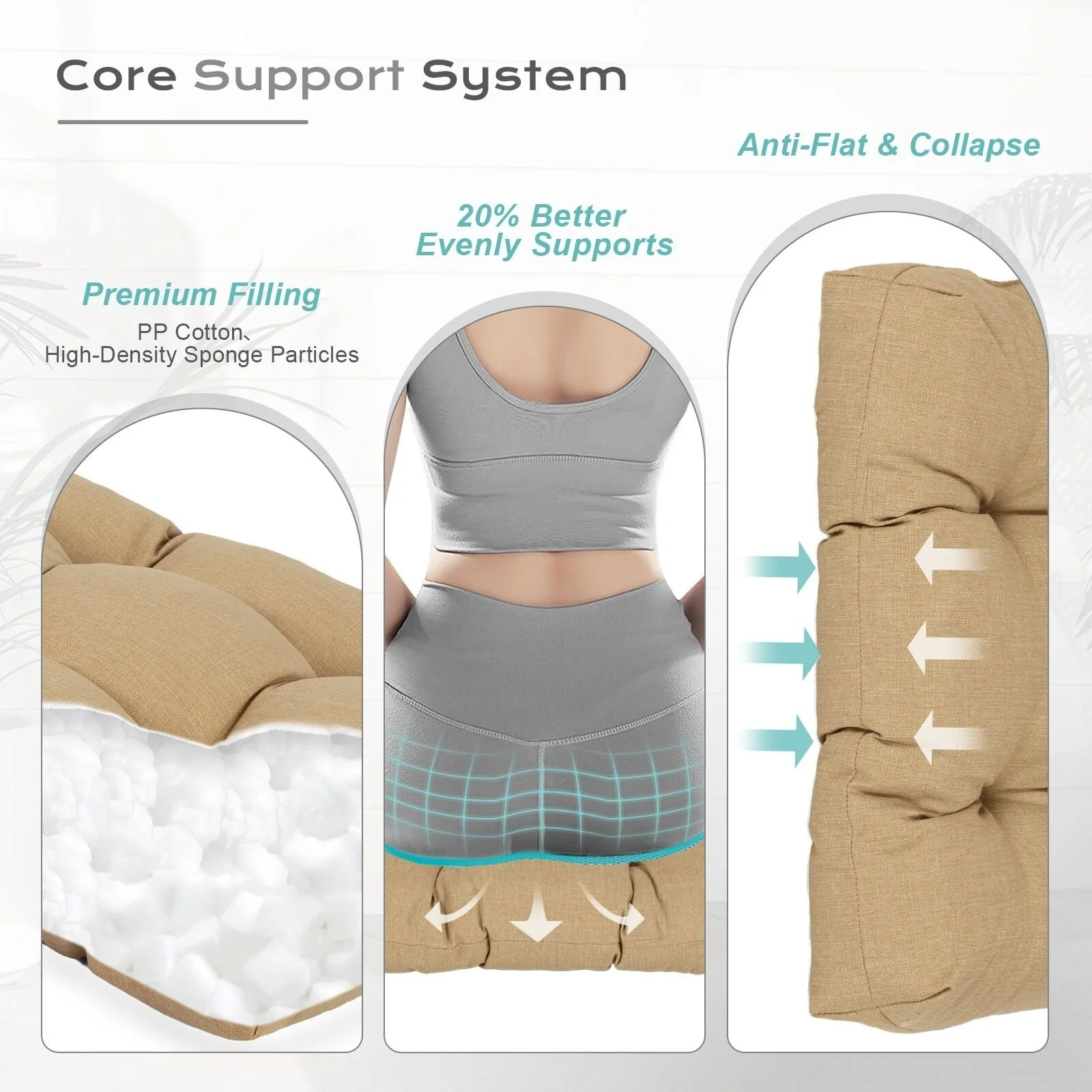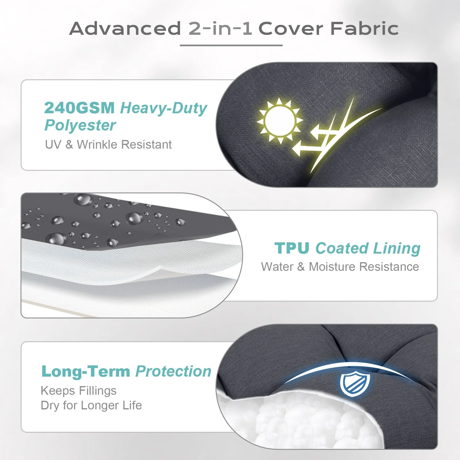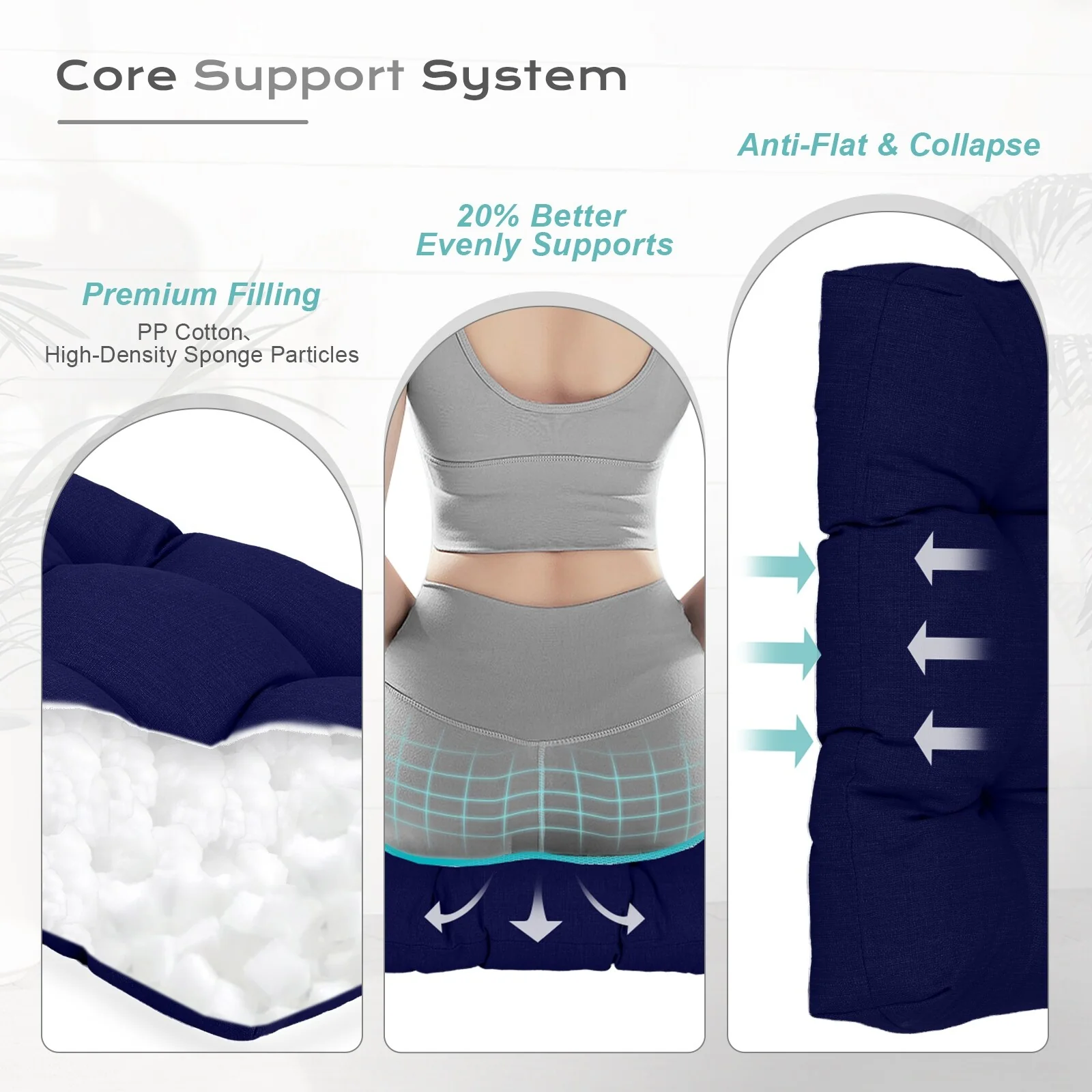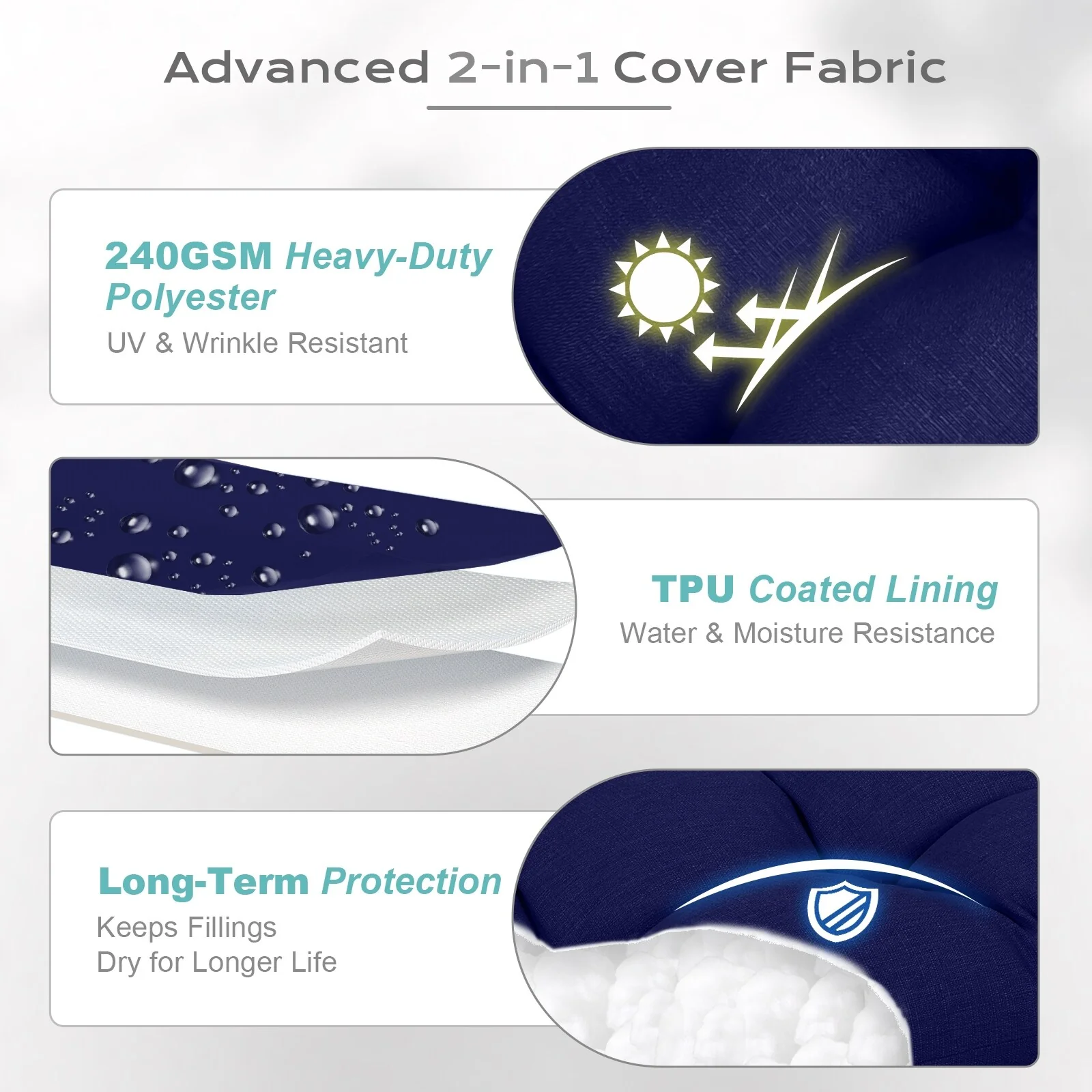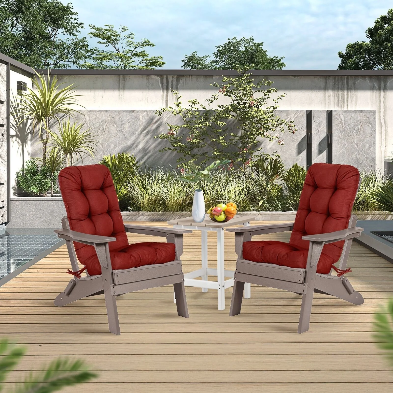 Outdoor Reclining Chair Cushions With Headrest High Density Foam Seat Cushions With Ties Weather Resistant