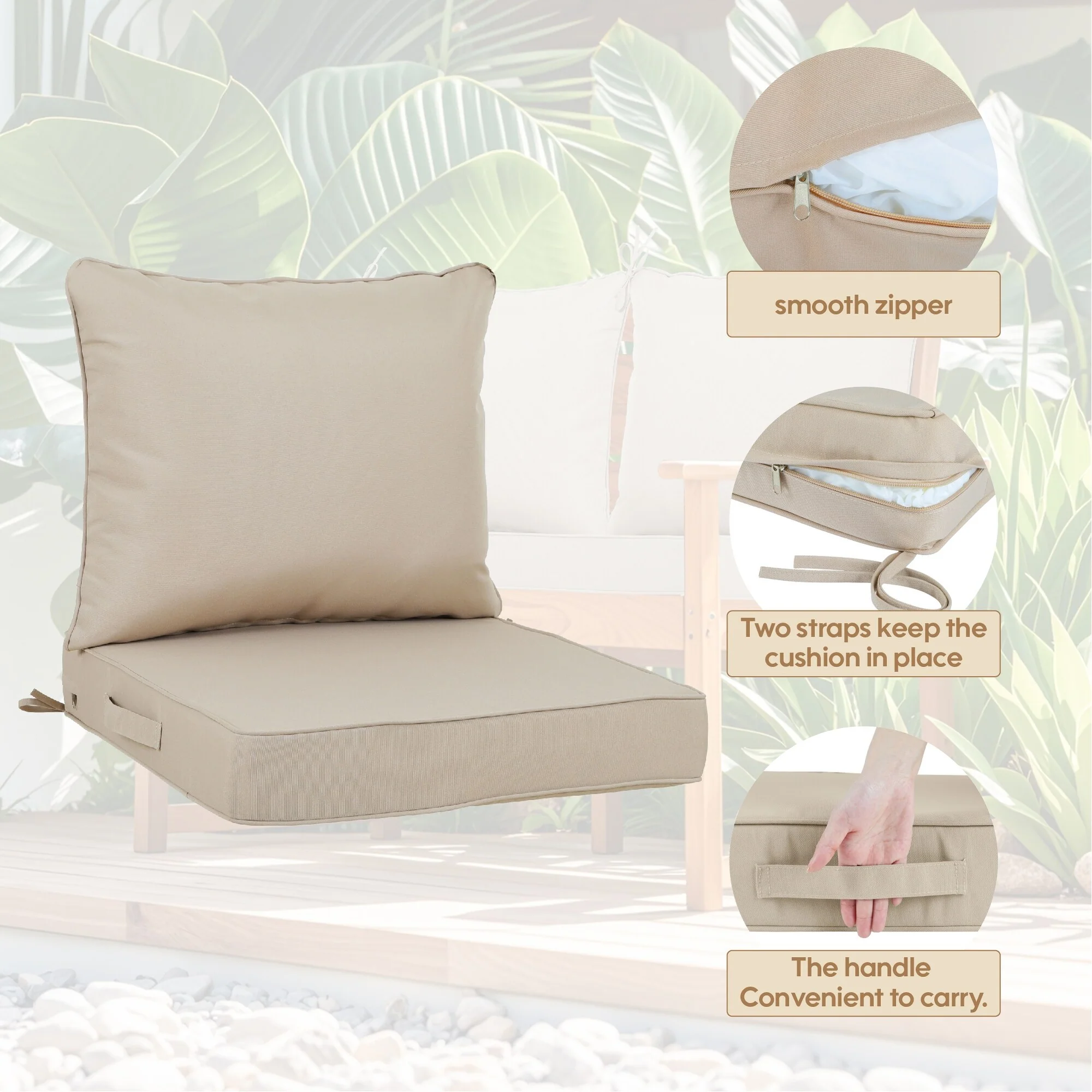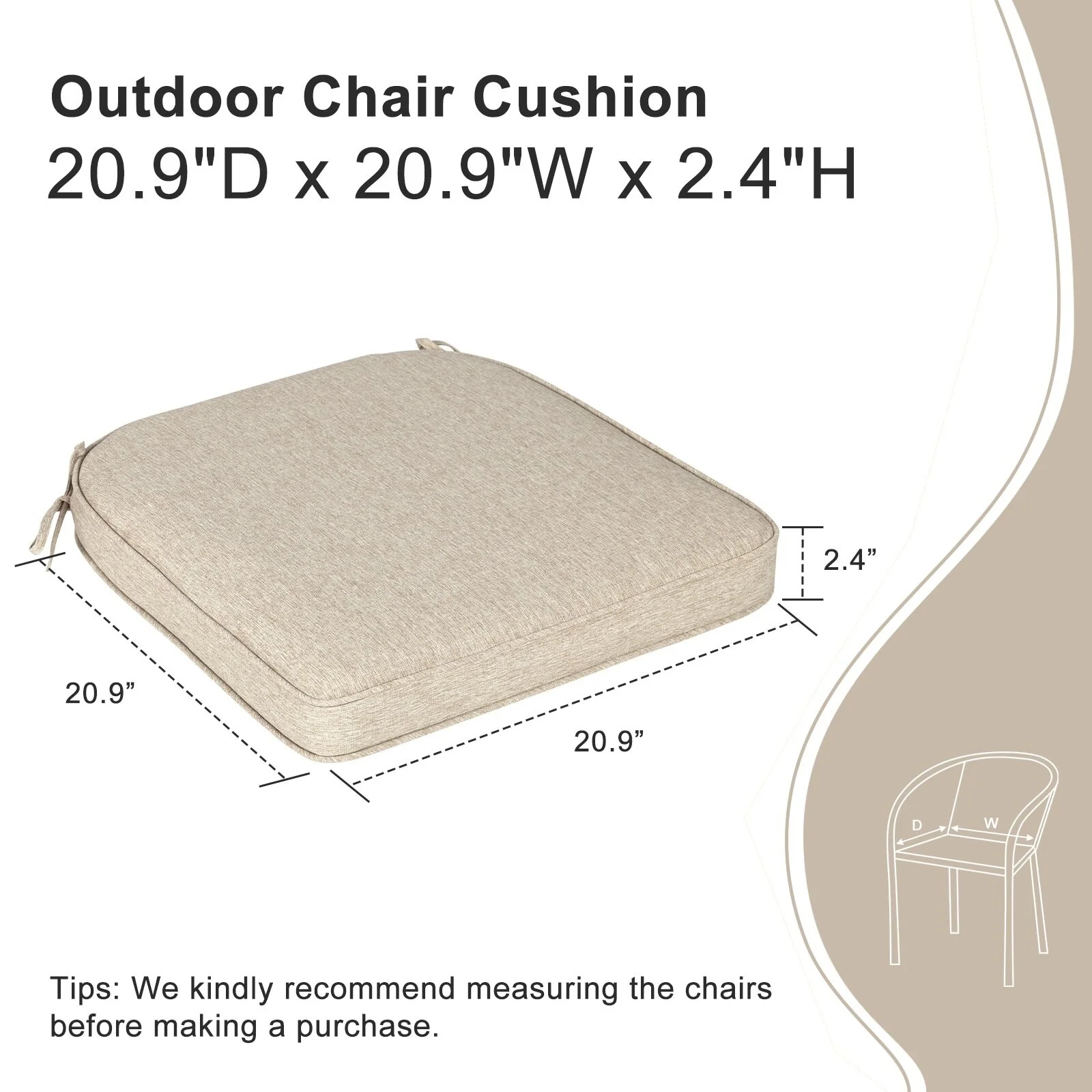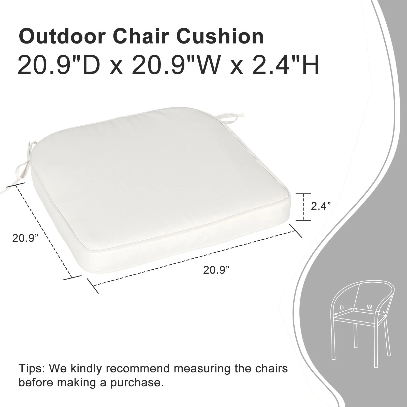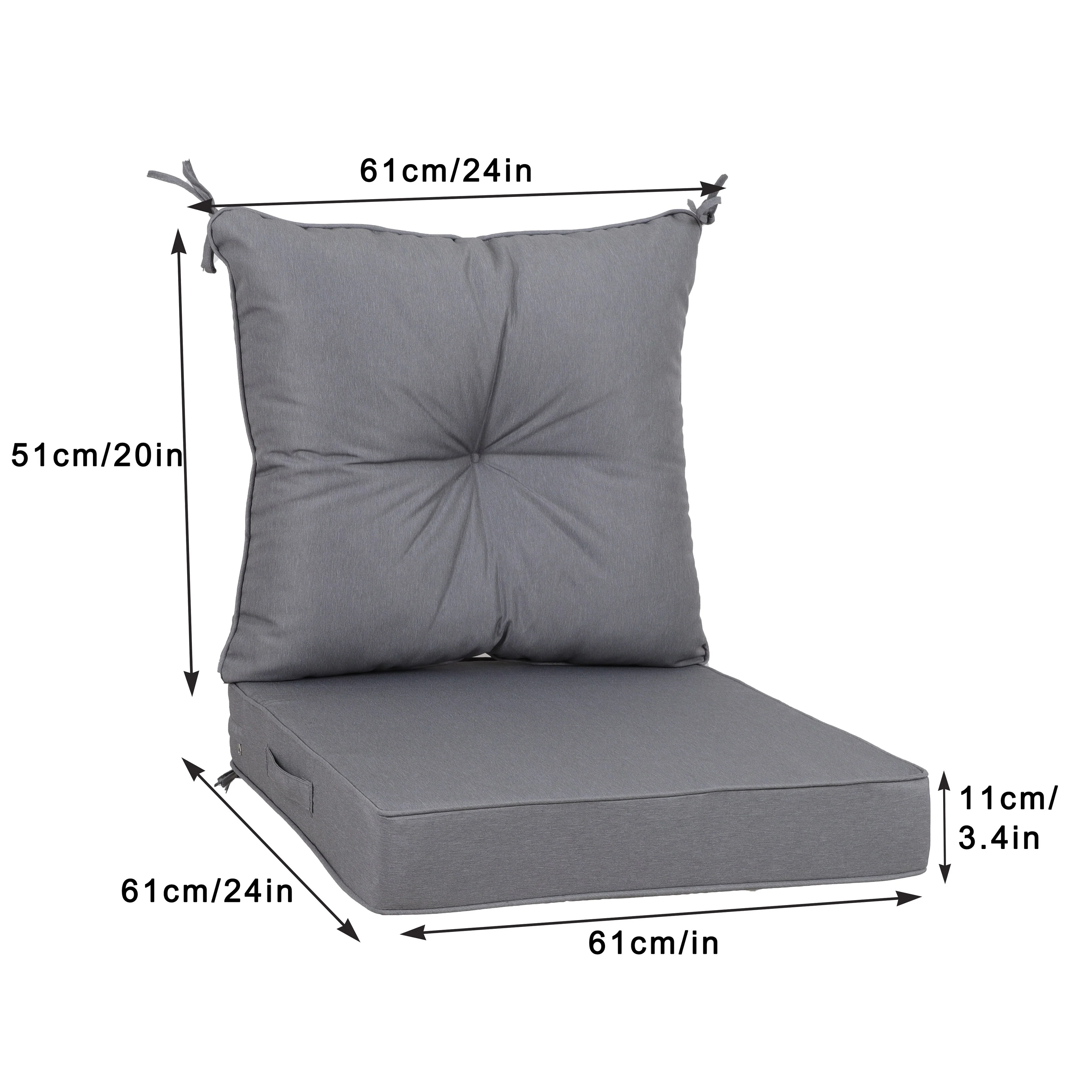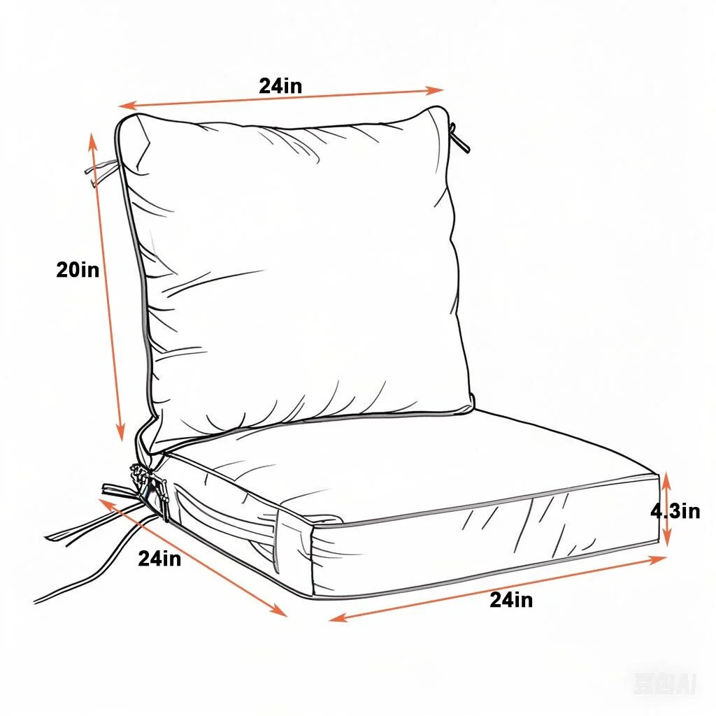 24''Wx24''Dx20''H Patio Premium Sunbrella Outdoor Seat Cushions Set (Seat & Back)