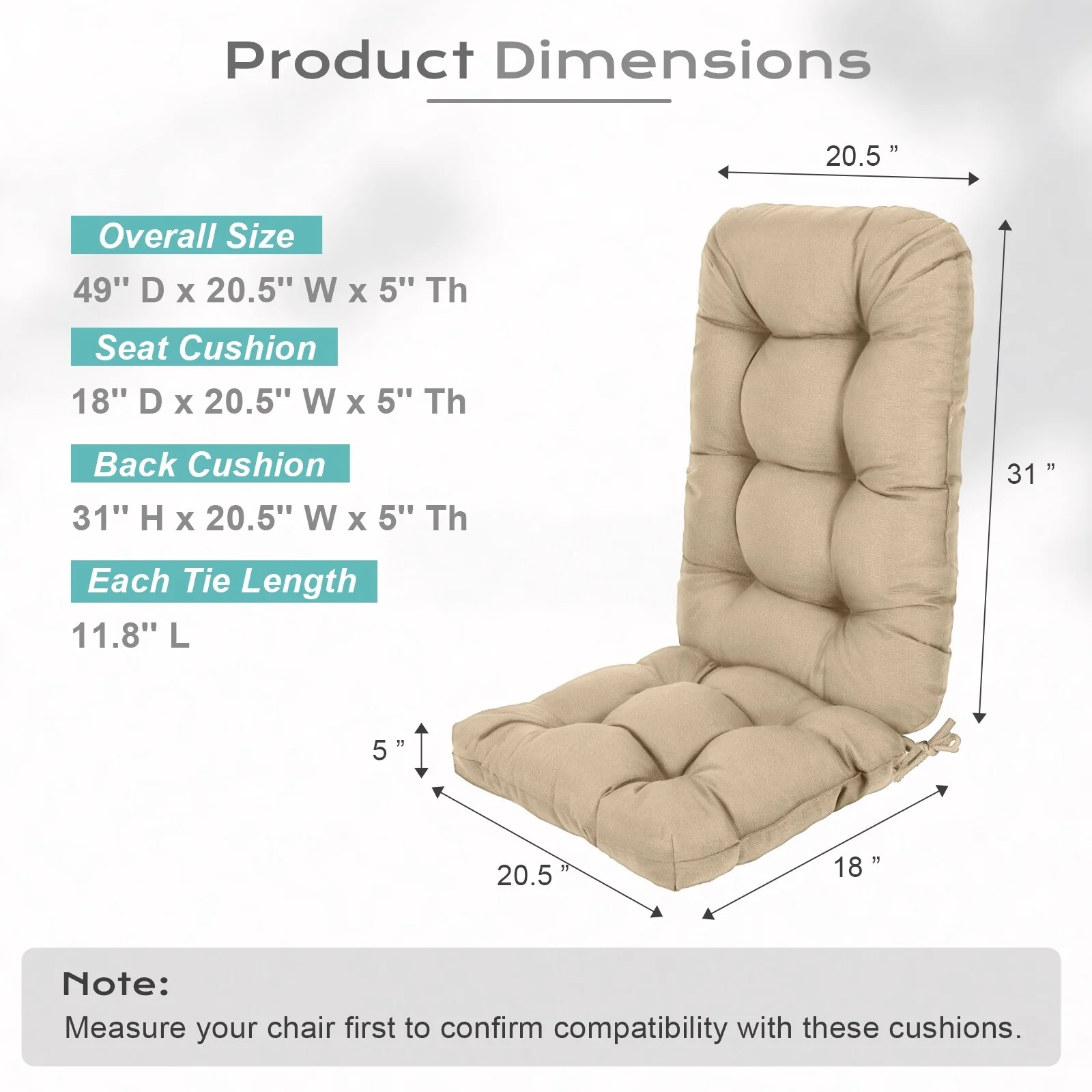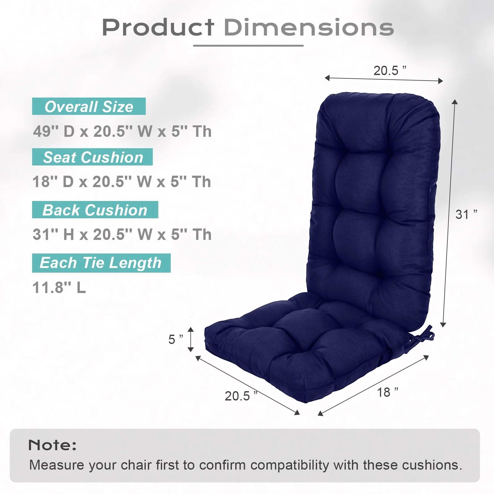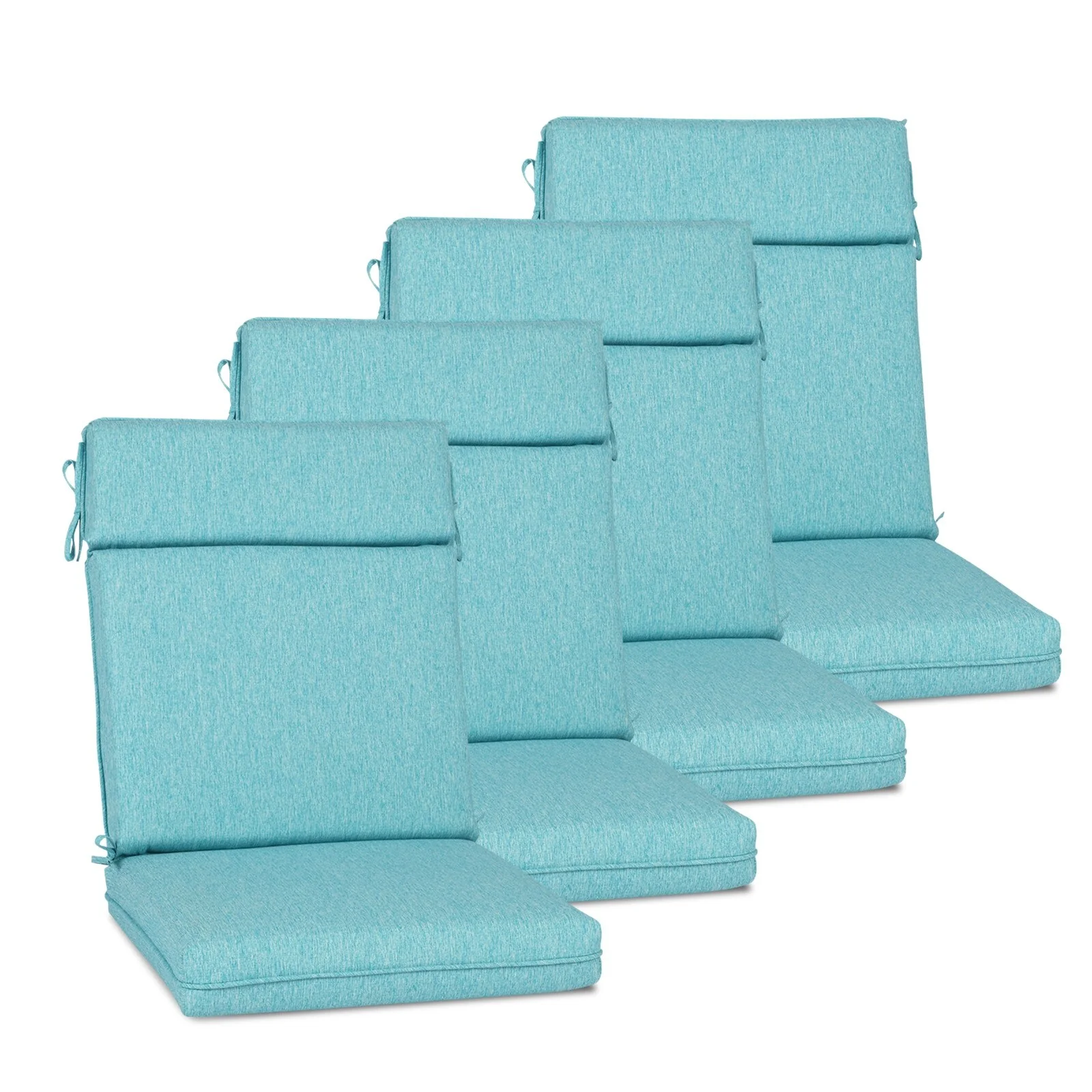 Outdoor Reclining Chair Cushions with Headrest High Density Foam Weather Resistant Includes Ties