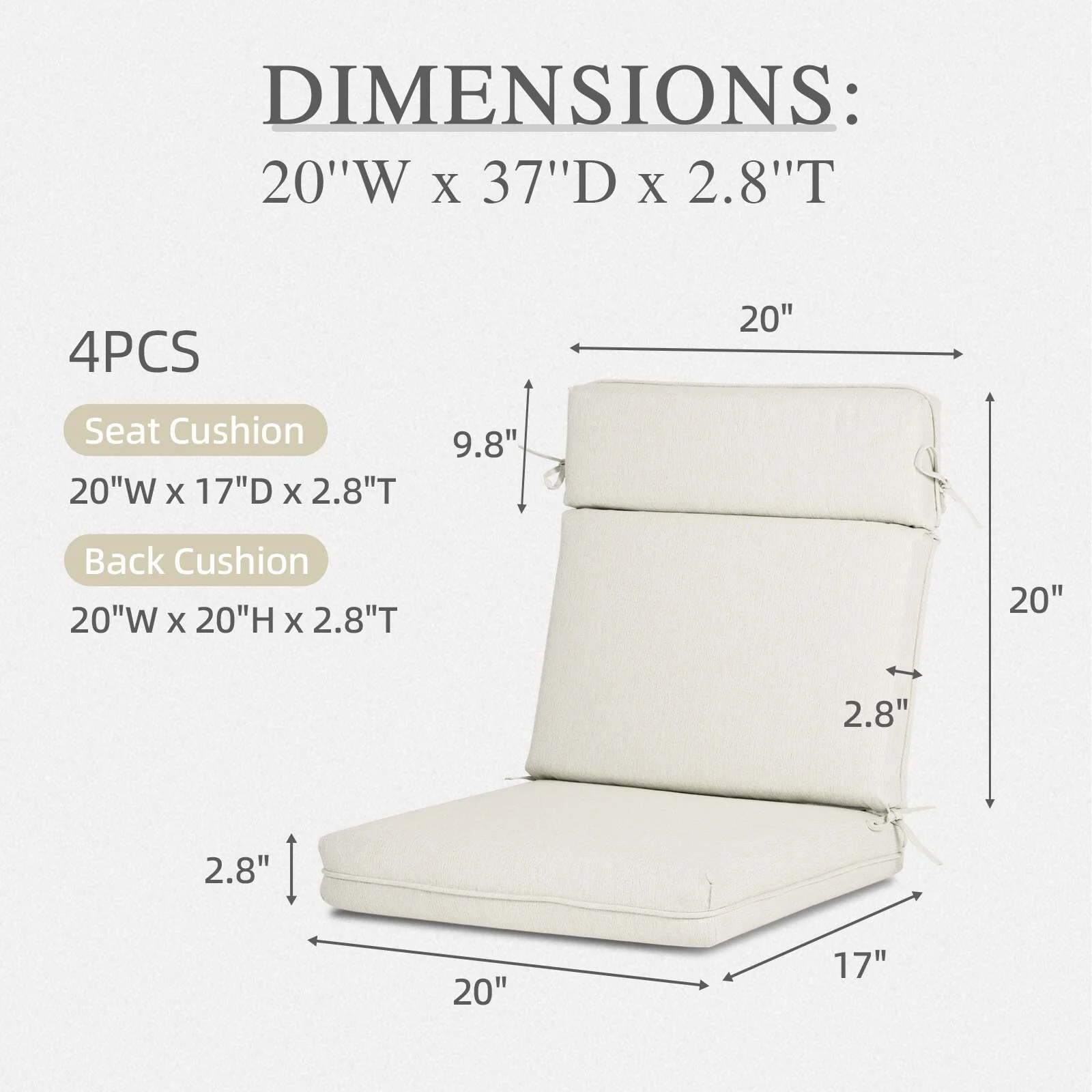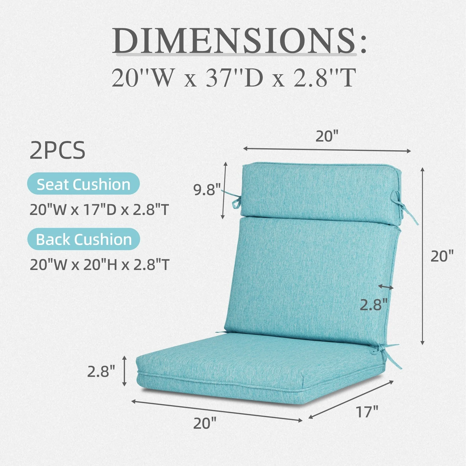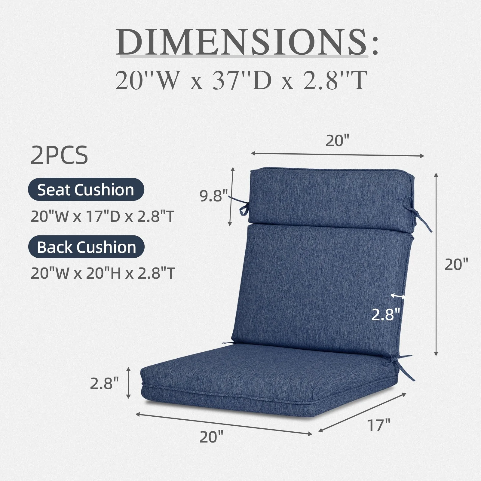 Aoodor Outdoor Dining Chair Cushion Set, 37"x20"x2.8"