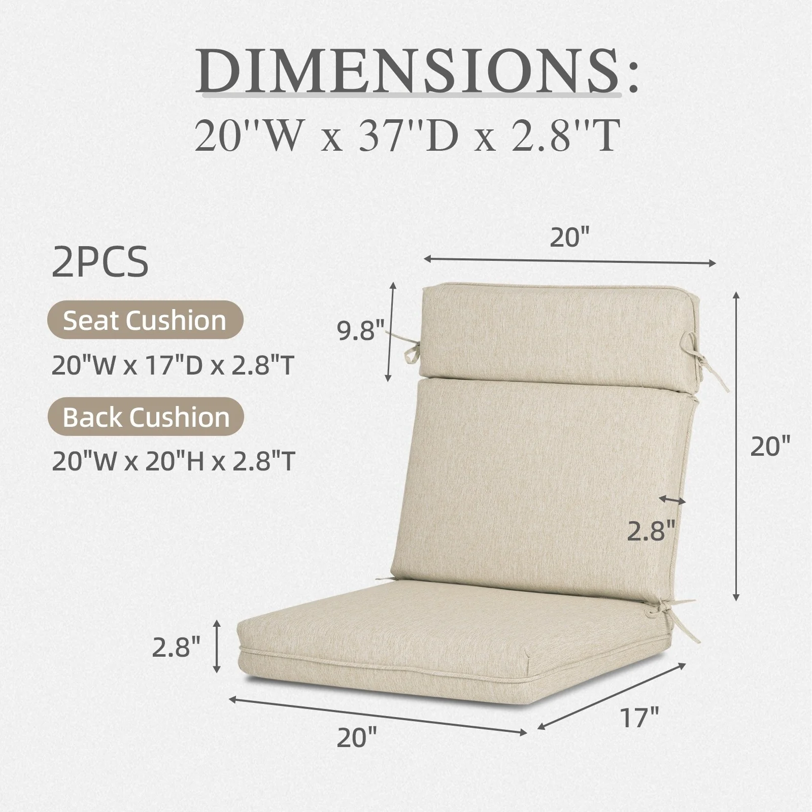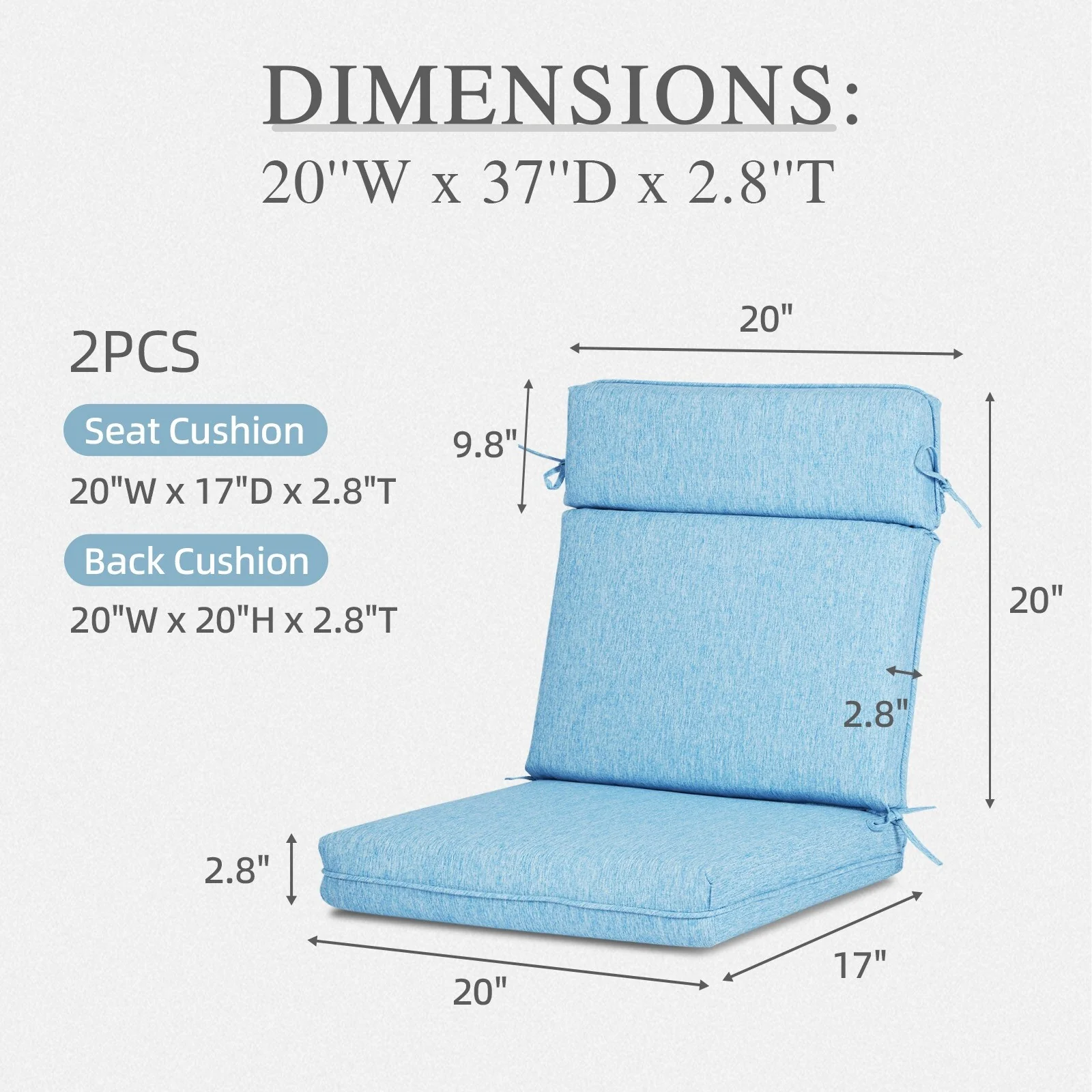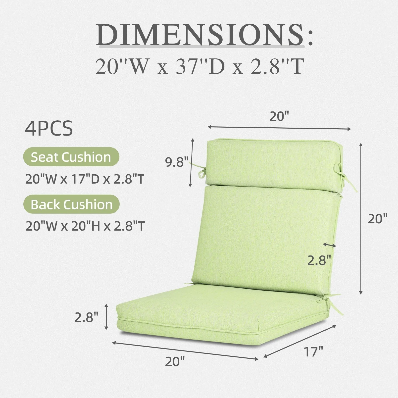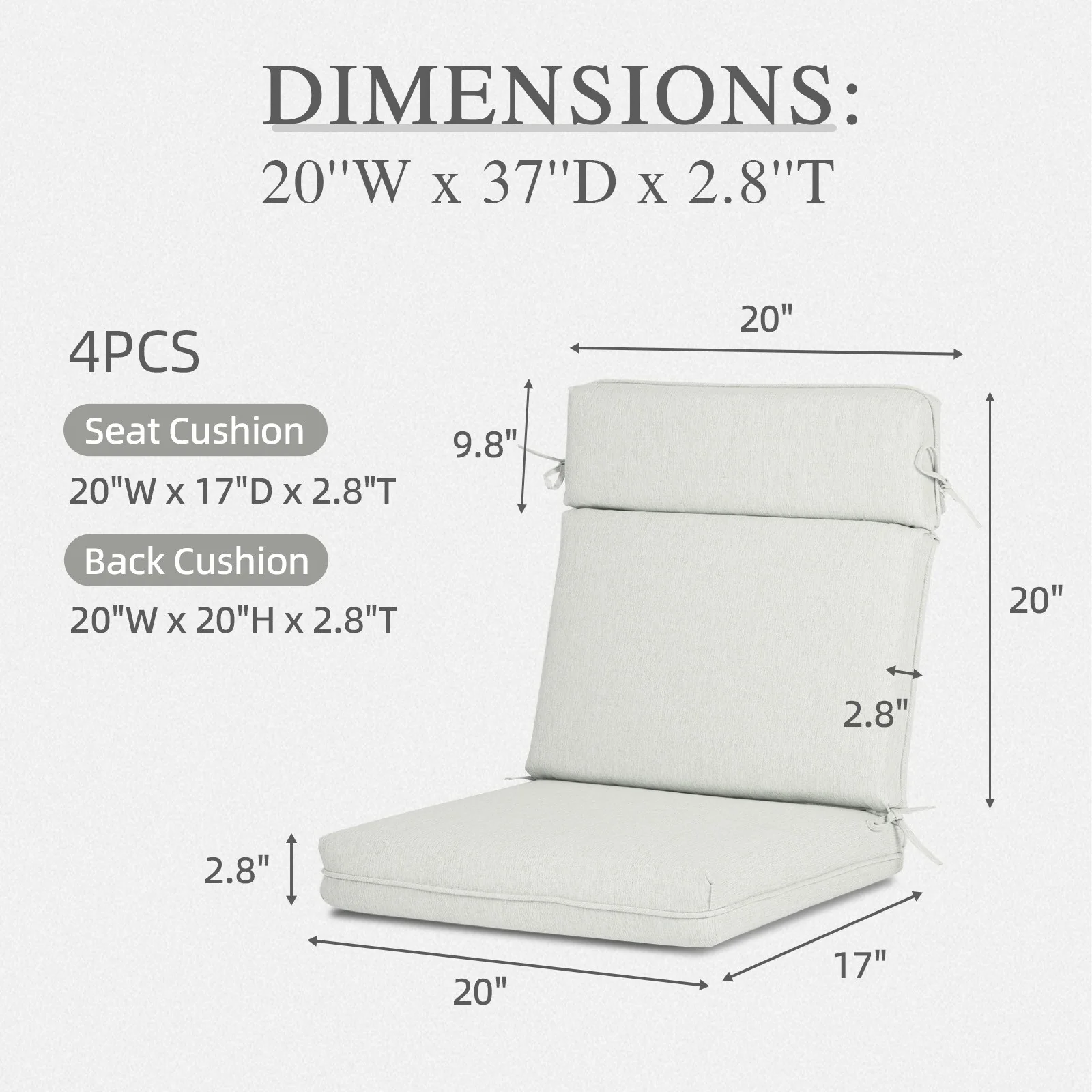 Aoodor Outdoor Dining Chair Cushion Set, 37"x20"x2.8"