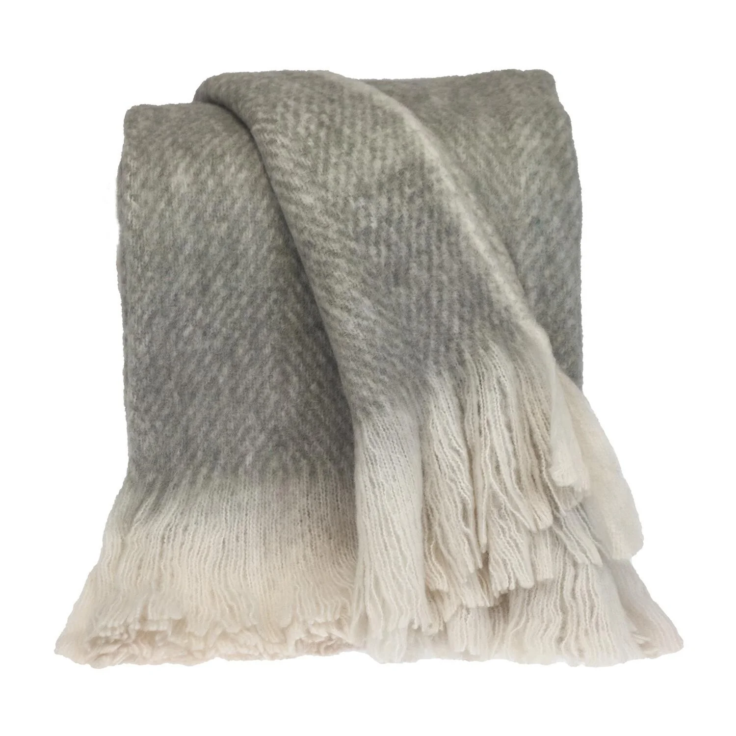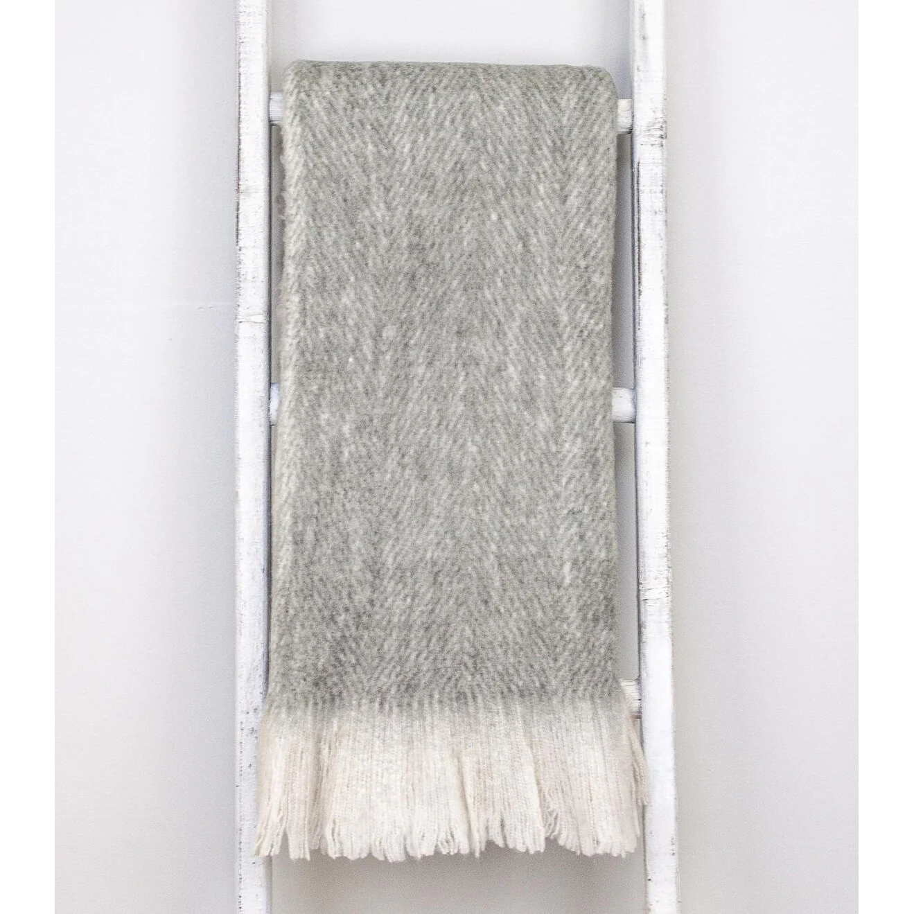 Supreme Soft Gray and White Herringbone Handloomed Throw Blanket