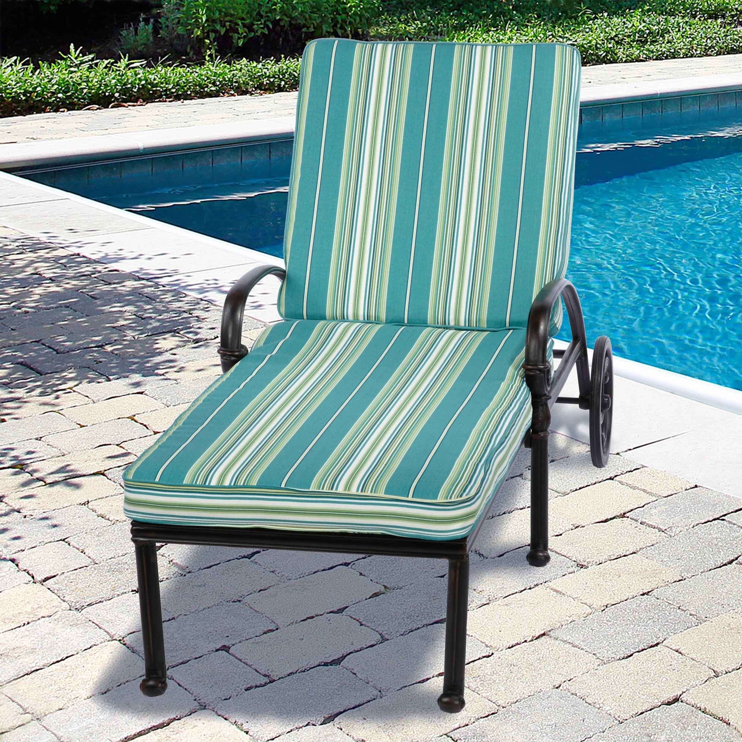Sorra Home Oakley Sunbrella Striped Indoor/ Outdoor Corded Chair Cushion Set and Lumbar Pillow