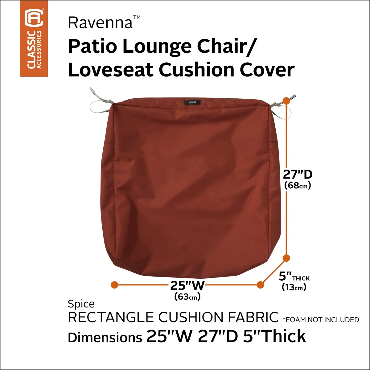 25 in x 25 in x 5 in