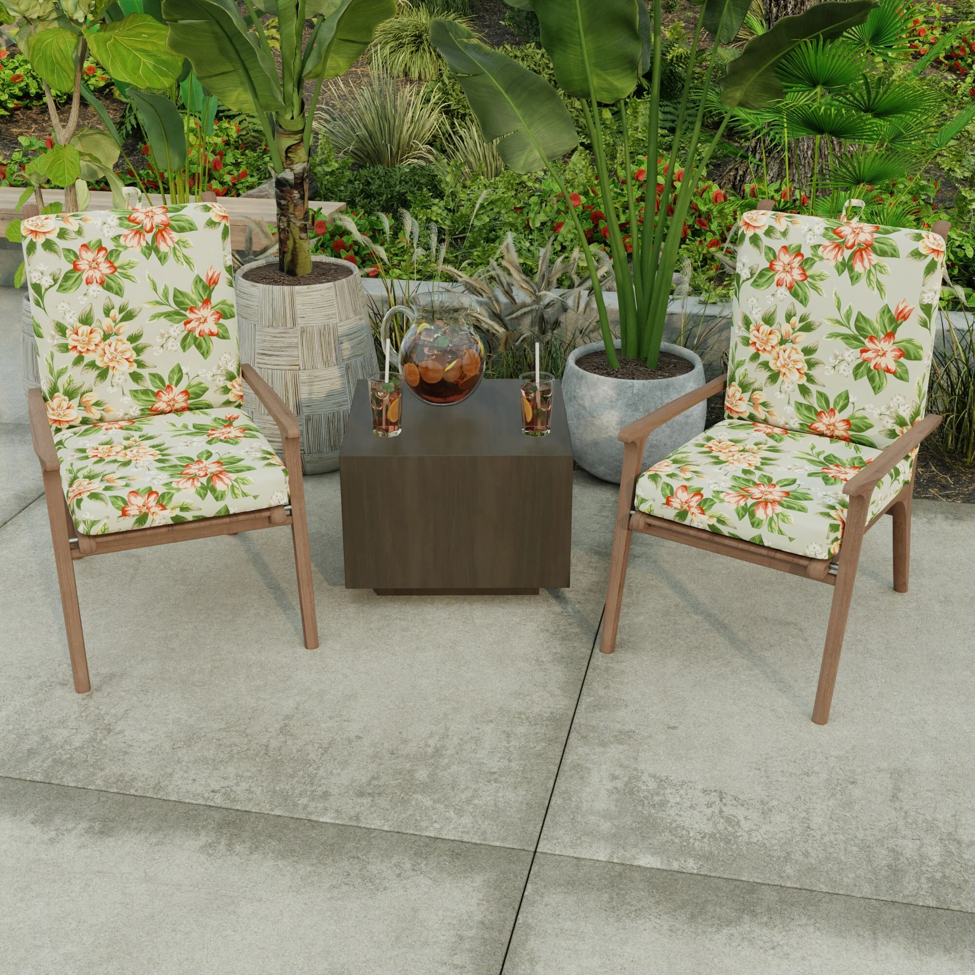 Pillow Perfect Outdoor Pretty Witty Reef Deluxe Tufted Chairpad (Set of 2) - 17 X 17.5 X 4 - 17 X 17.5 X 4