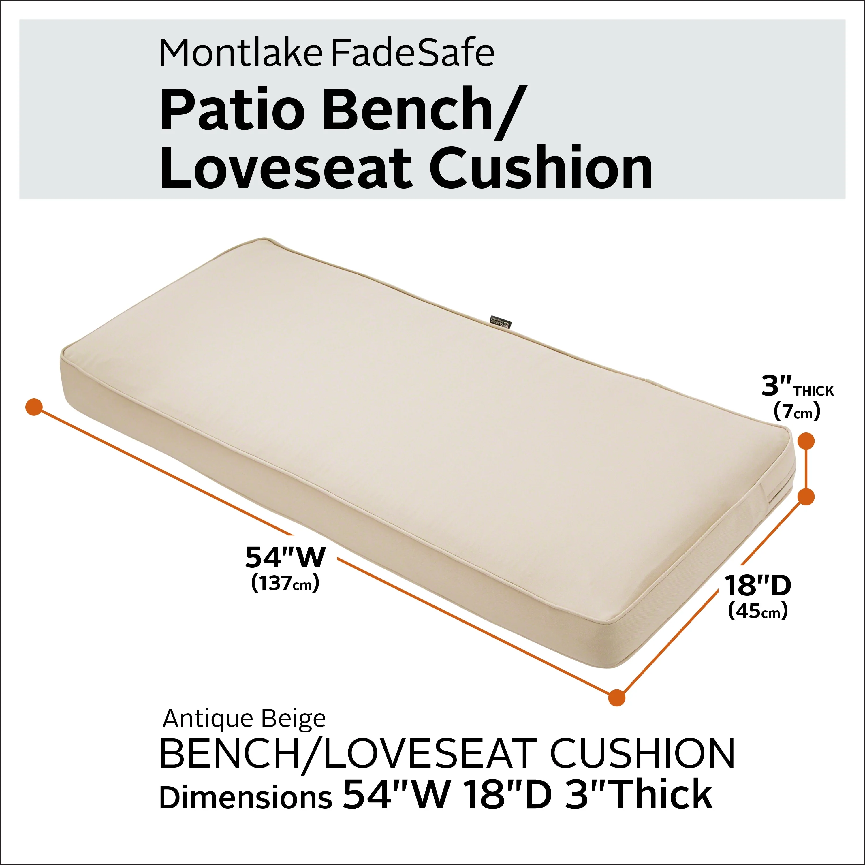 Classic Accessories Montlake FadeSafe Water-Repellent Outdoor Bench Cushion, 54"Wx18"Dx3"T