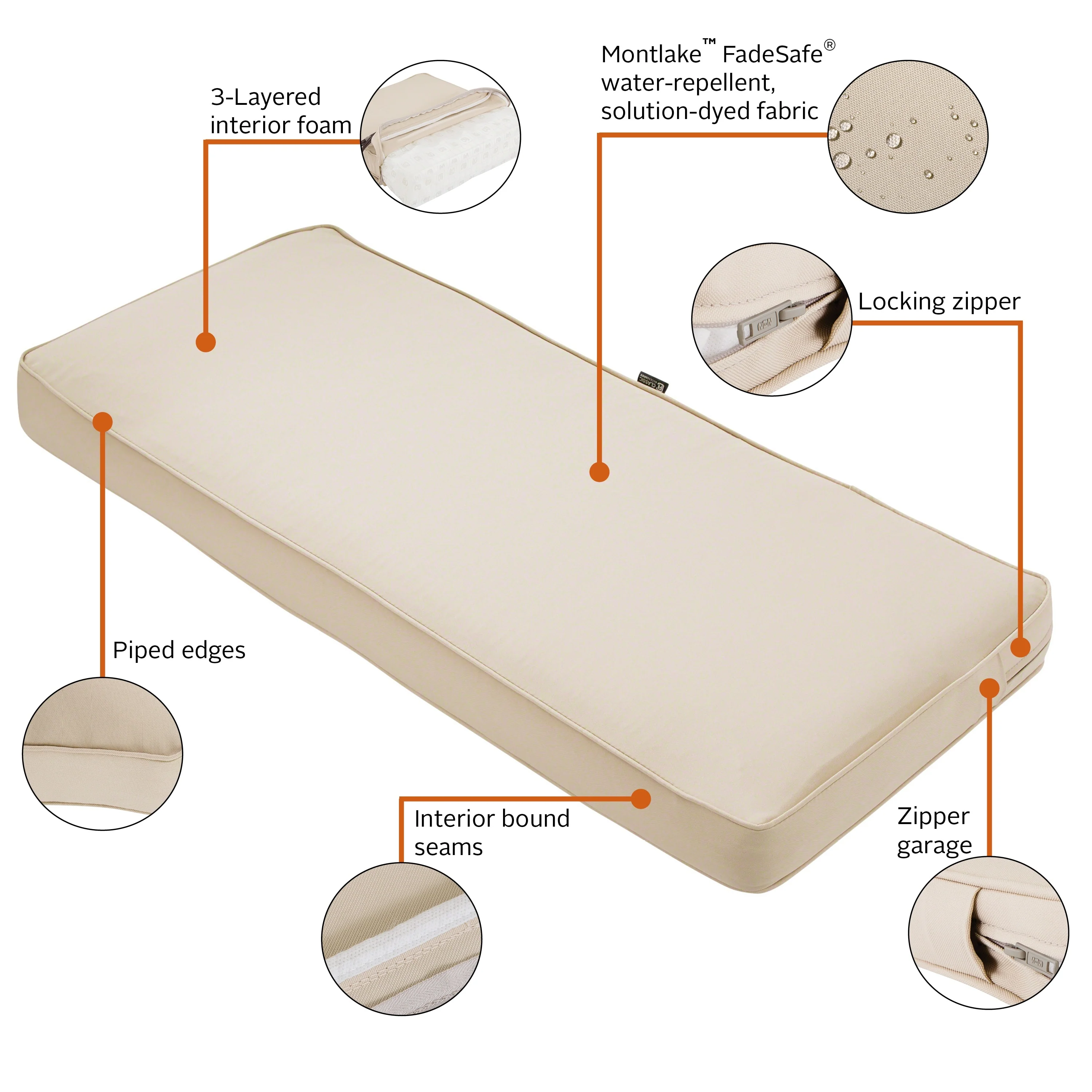 Classic Accessories Montlake? FadeSafe? Rectangle Settee/Bench Seat Quilted Cushion Lounge Cushion