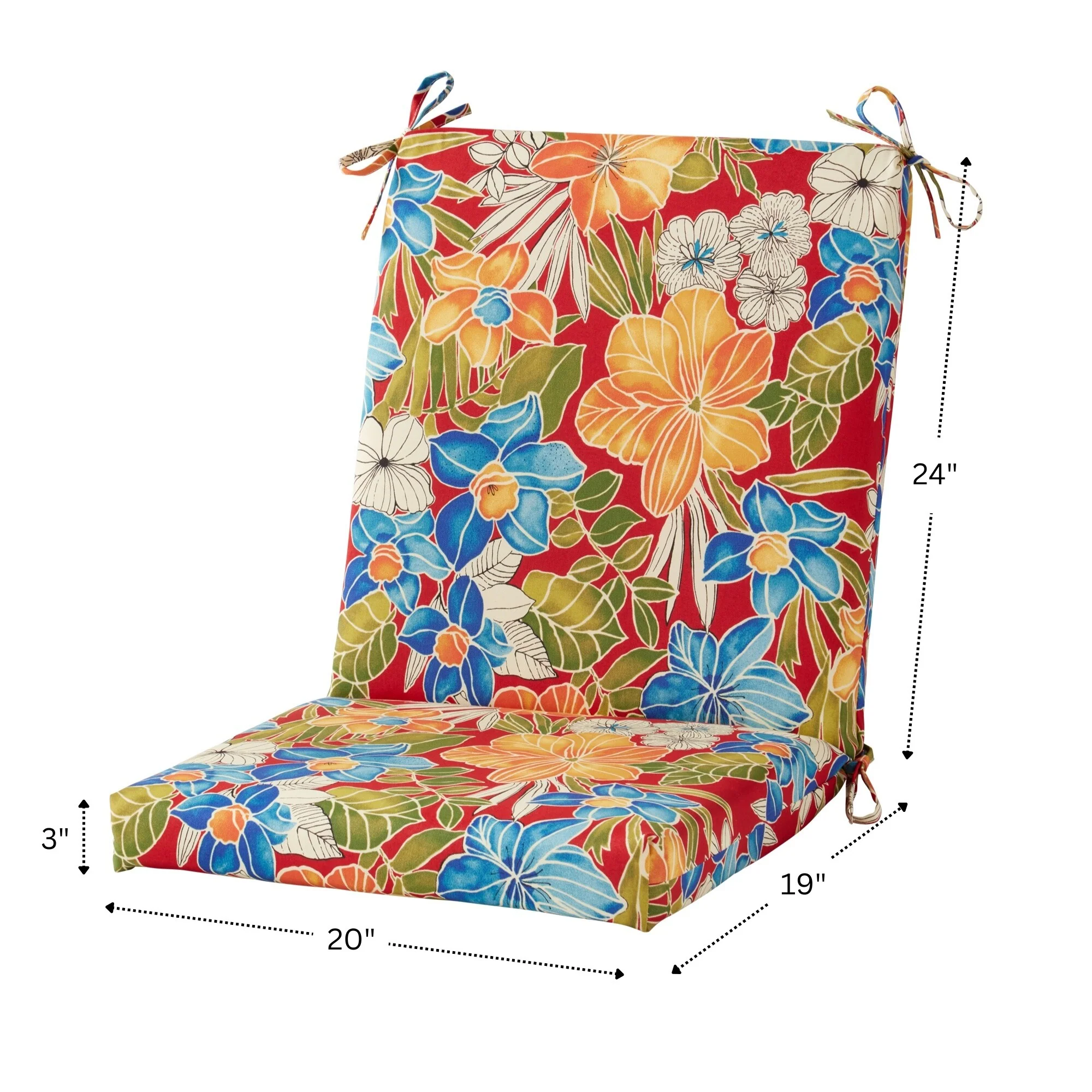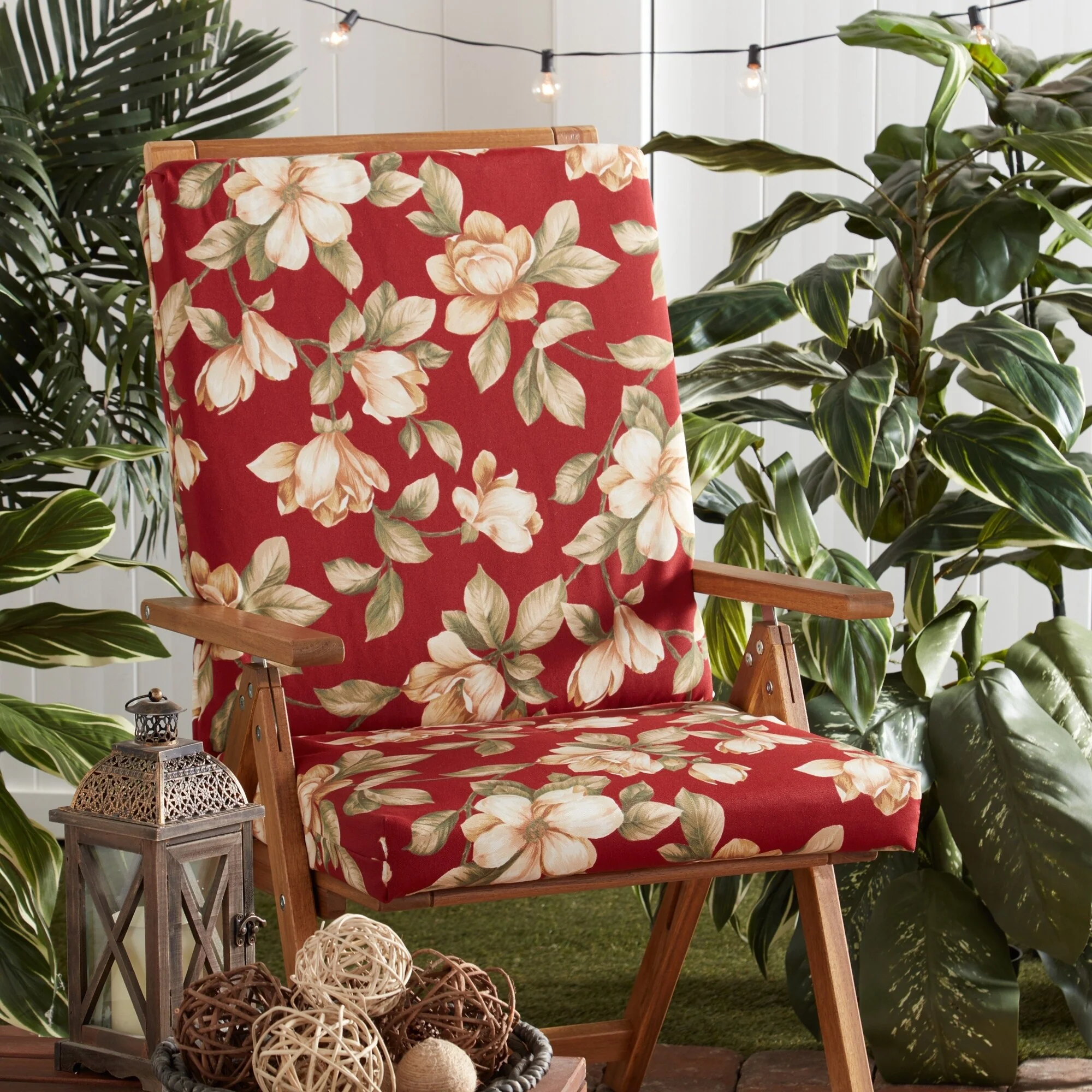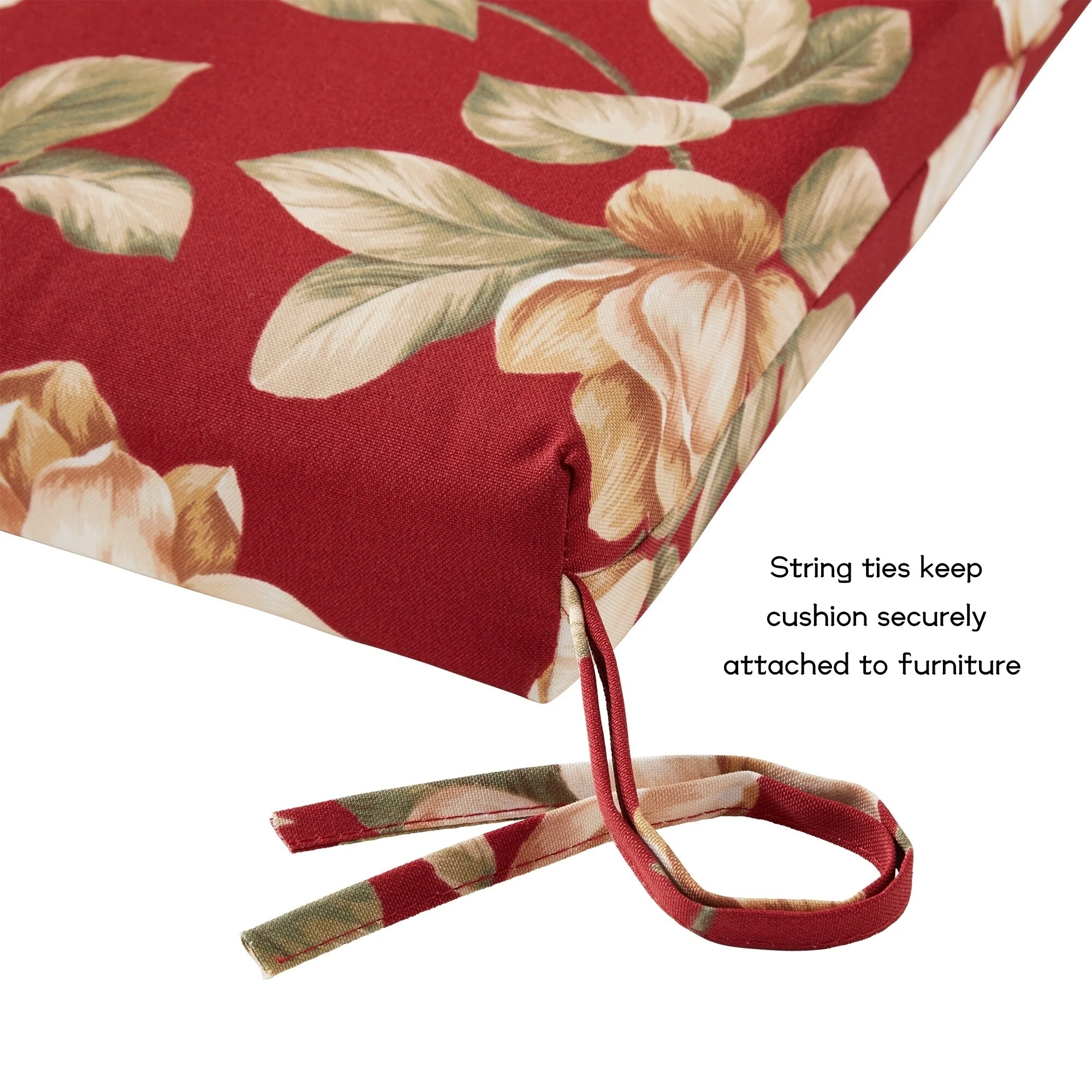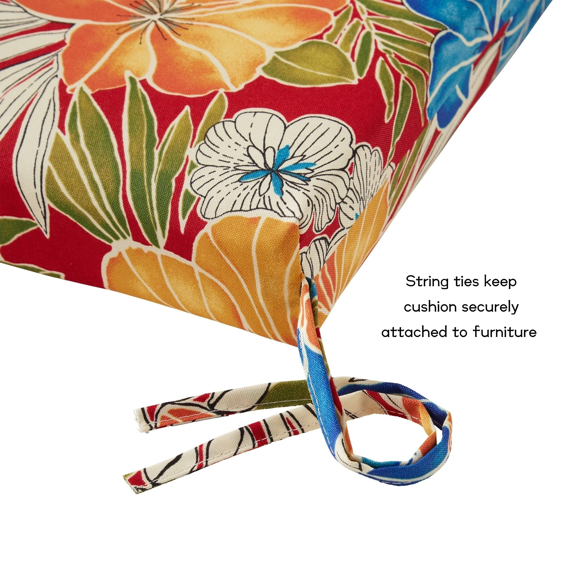 22" x 45" Red Floral Outdoor Chair Cushion with Ties and Loop - 45'' L x 22'' W x 5'' H