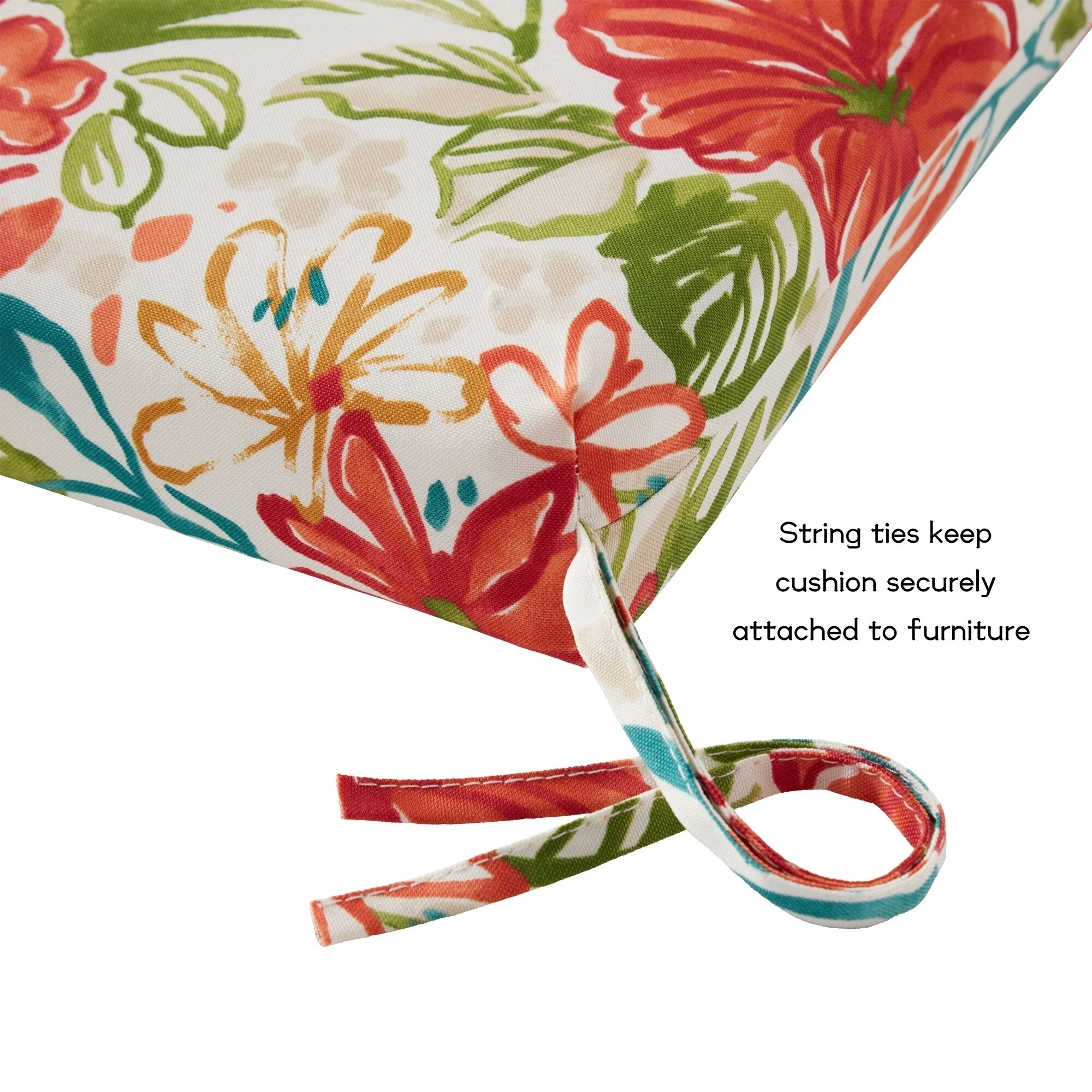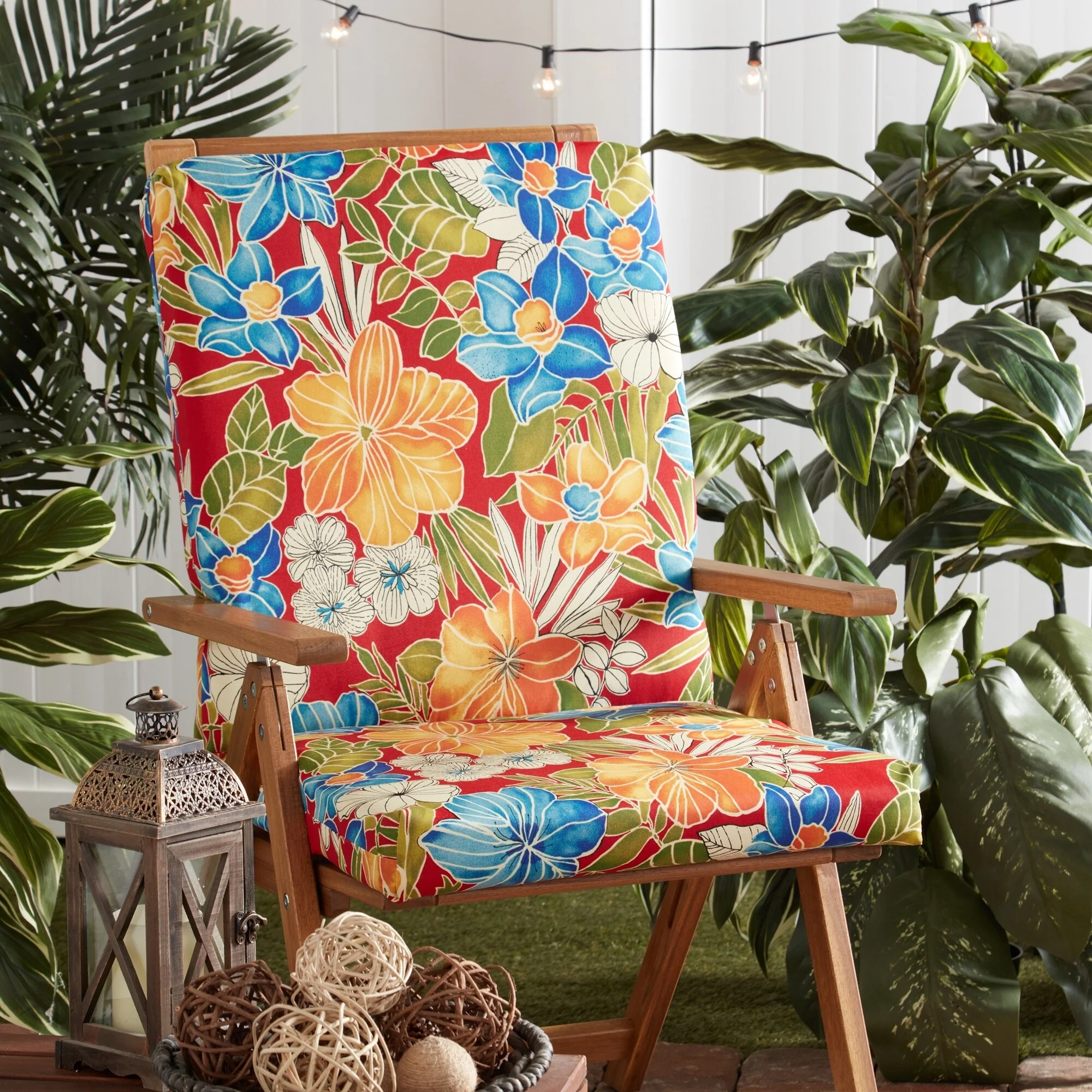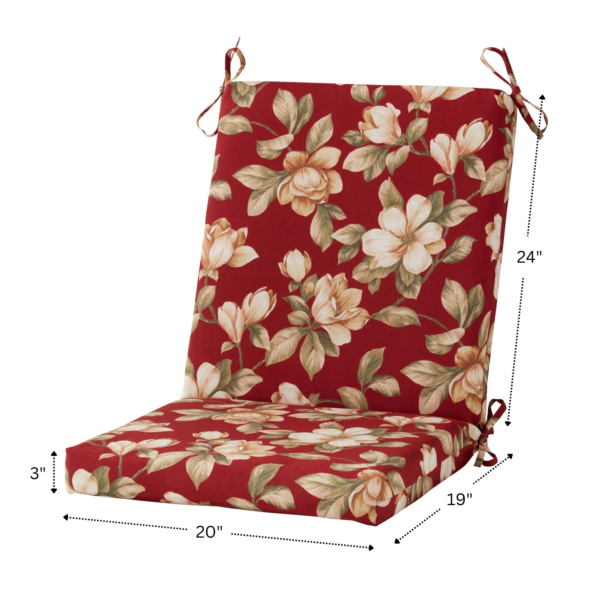 22" x 45" Red Floral Outdoor Chair Cushion with Ties and Loop - 45'' L x 22'' W x 5'' H