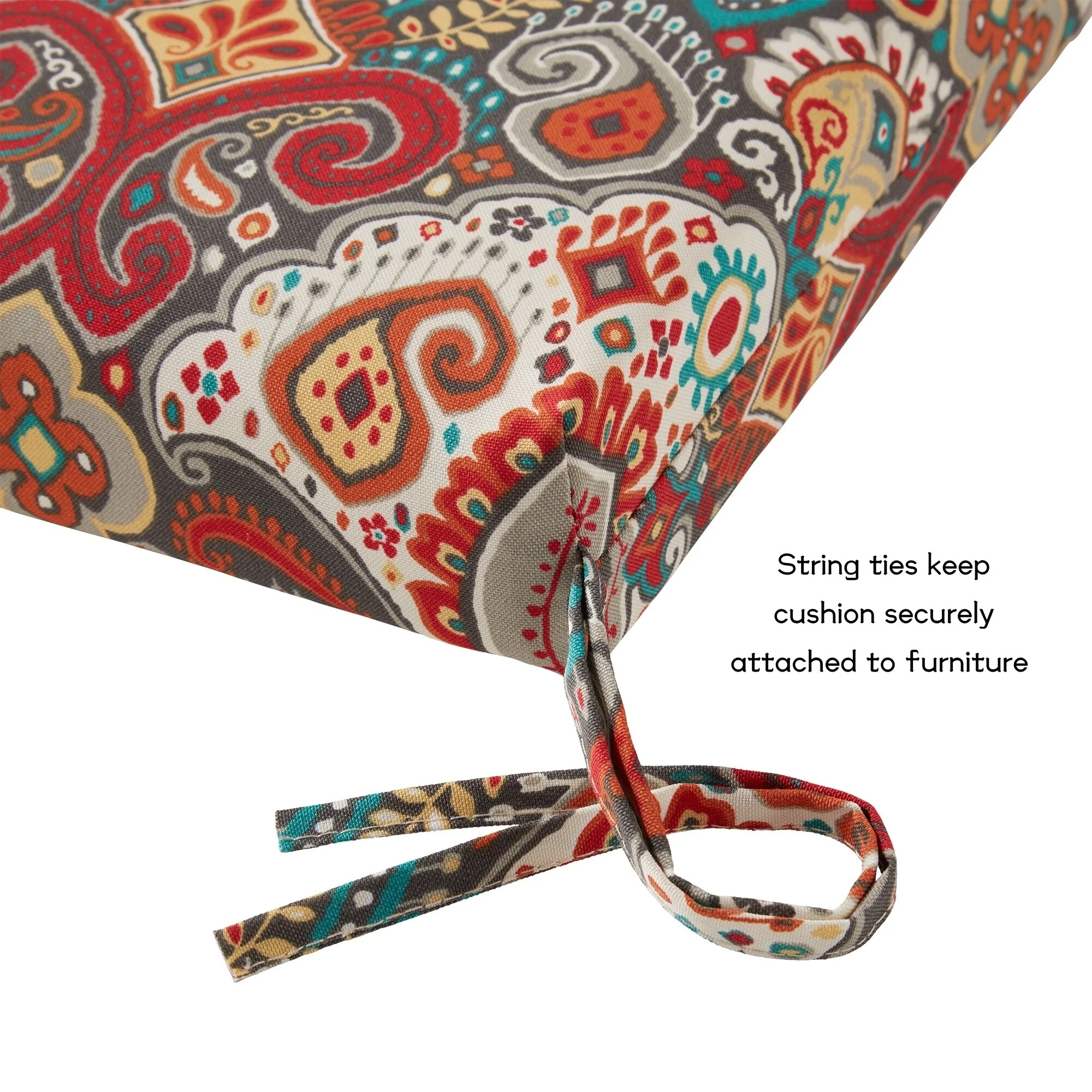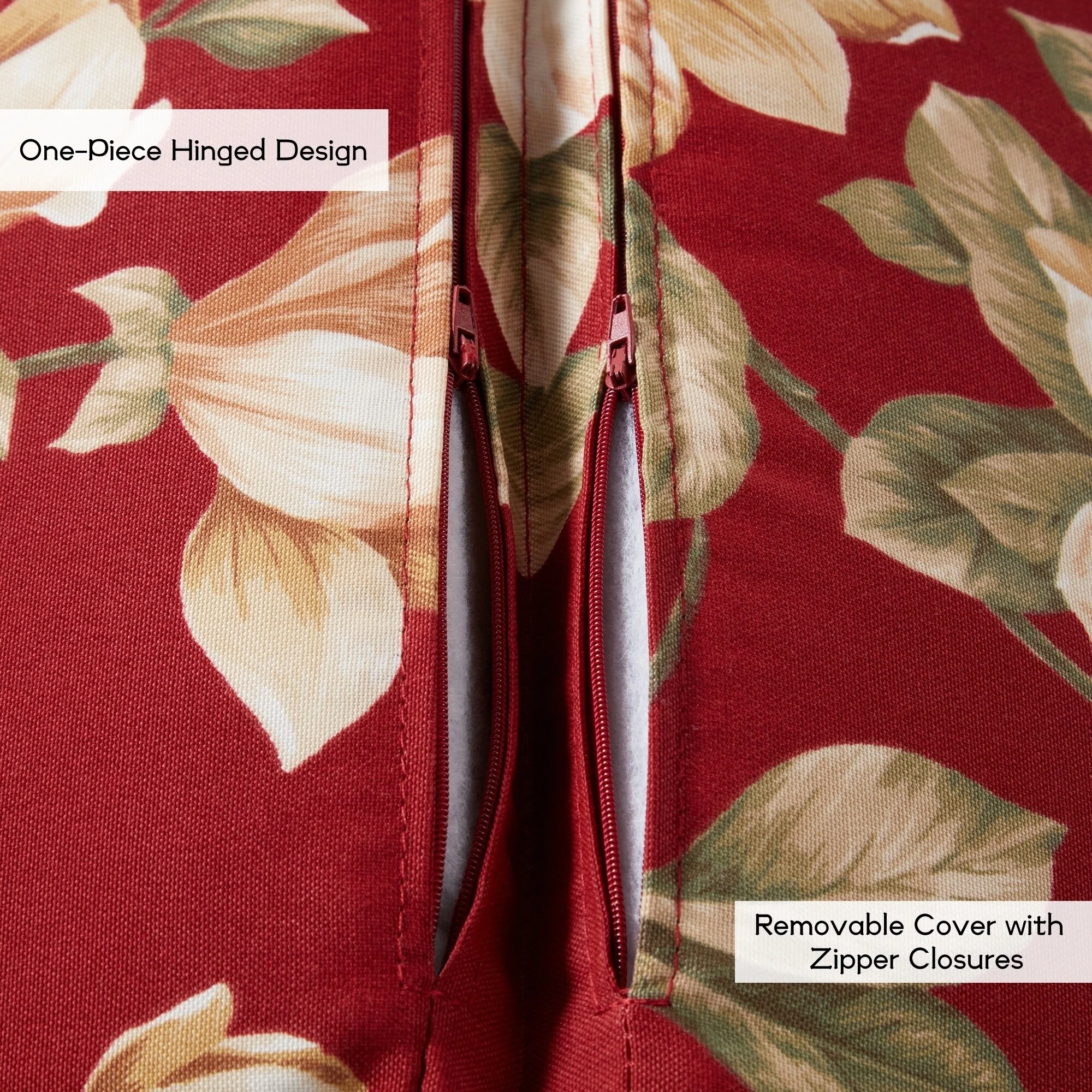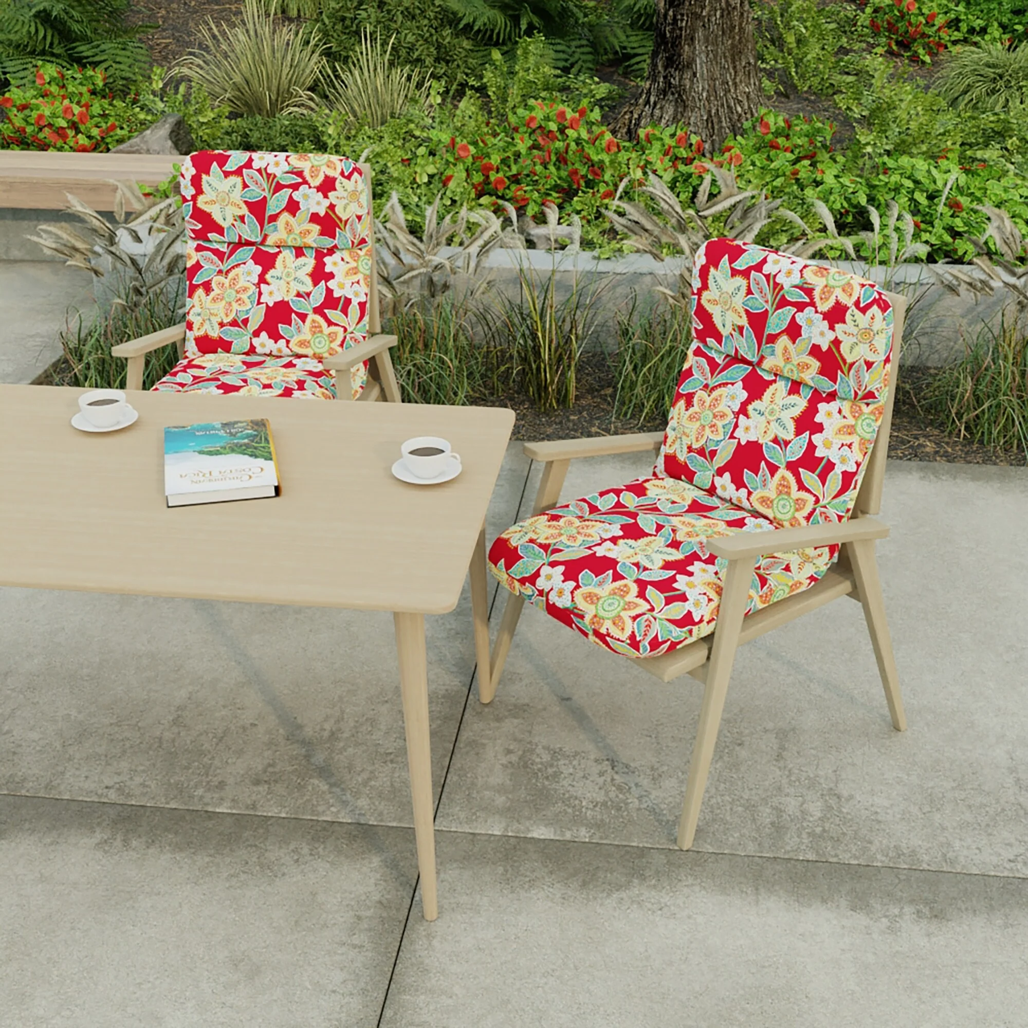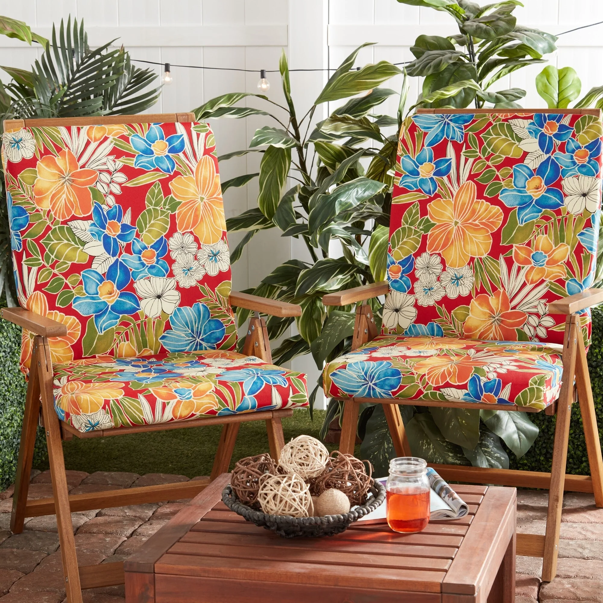22" x 45" Red Floral Outdoor Chair Cushion with Ties and Loop - 45'' L x 22'' W x 5'' H