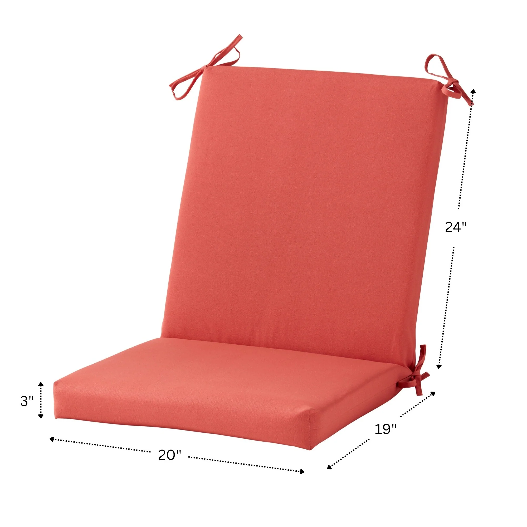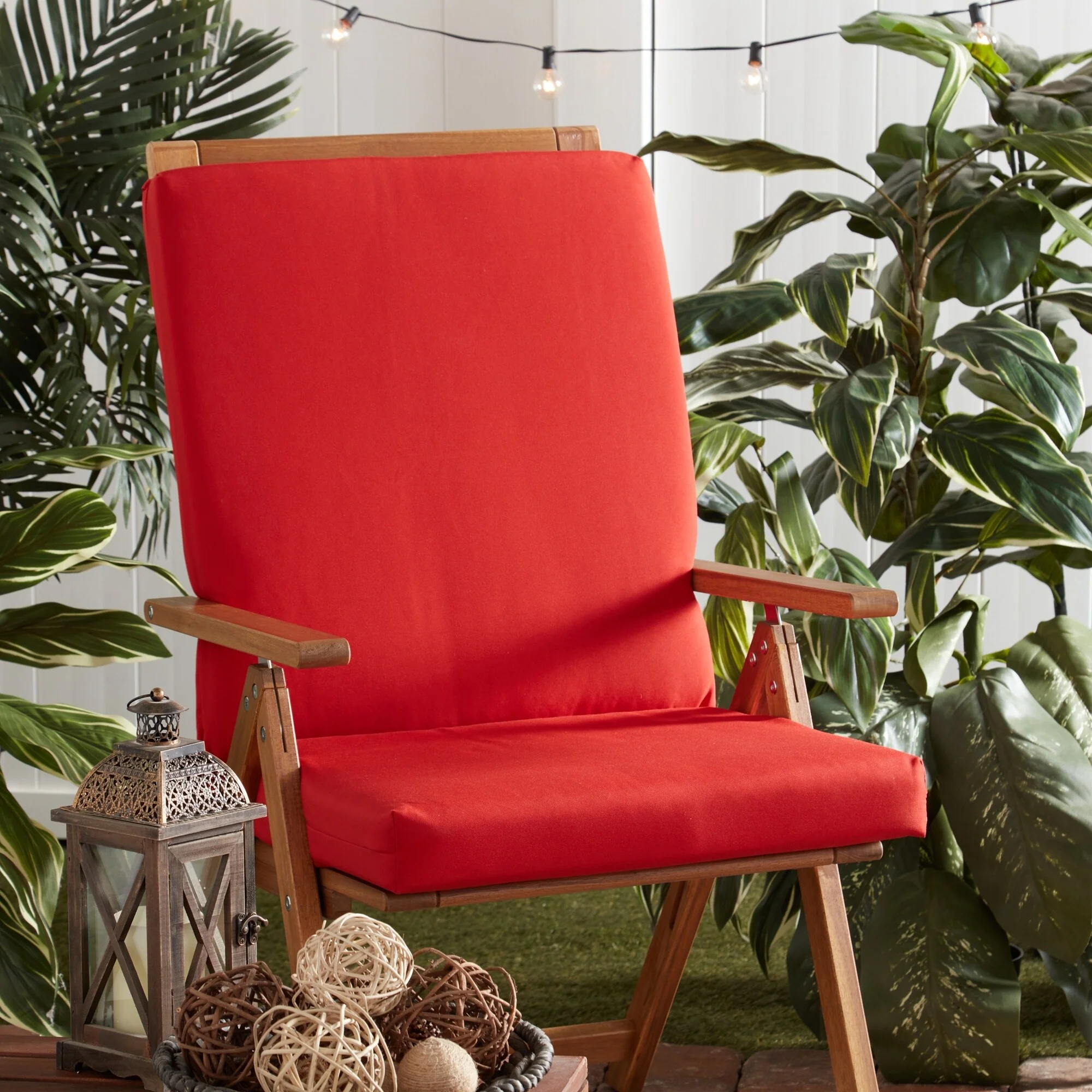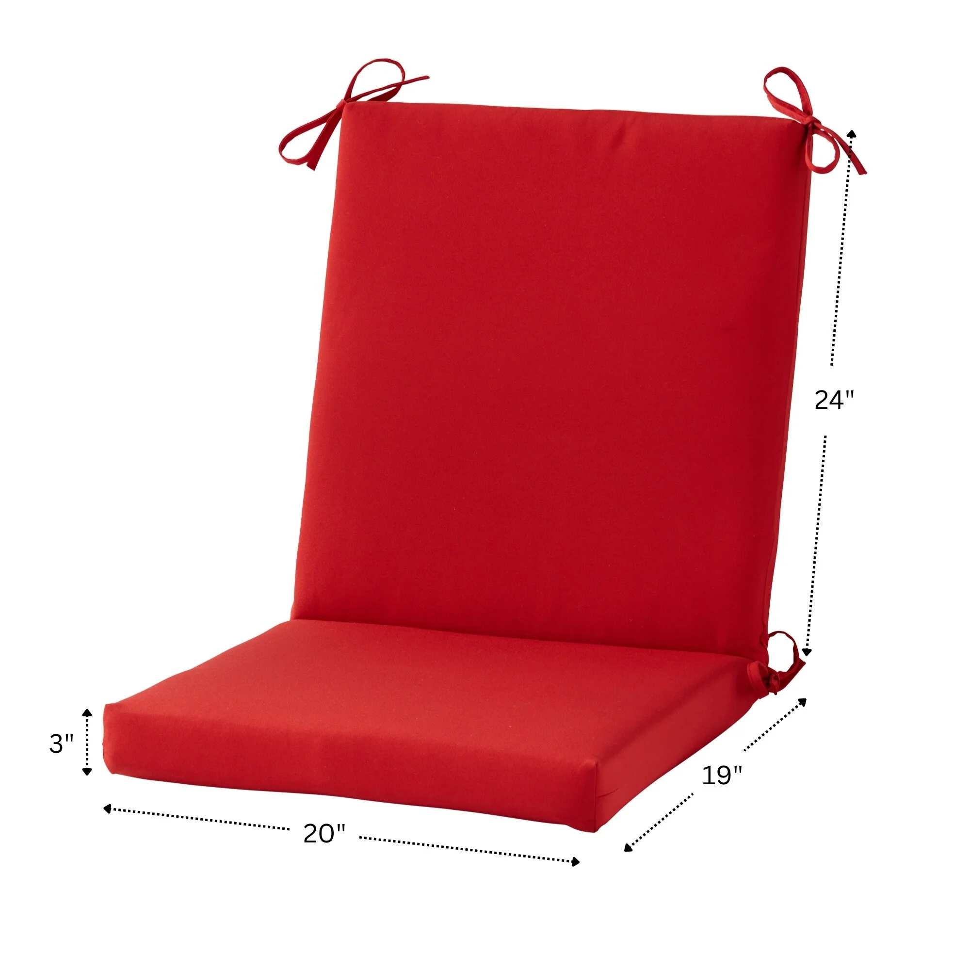 Casual Cushion Solid 1-Piece Outdoor Iron Dining Seat/Back Chair Pad, 19"W x 36"L, Red - 19"W x 36"L