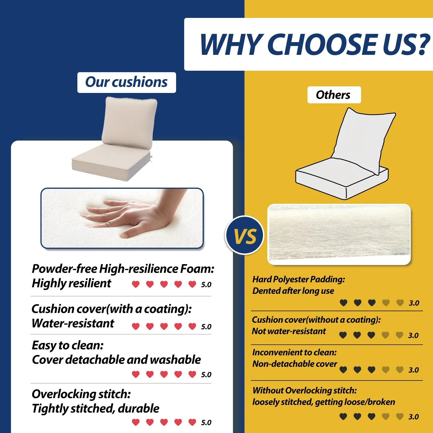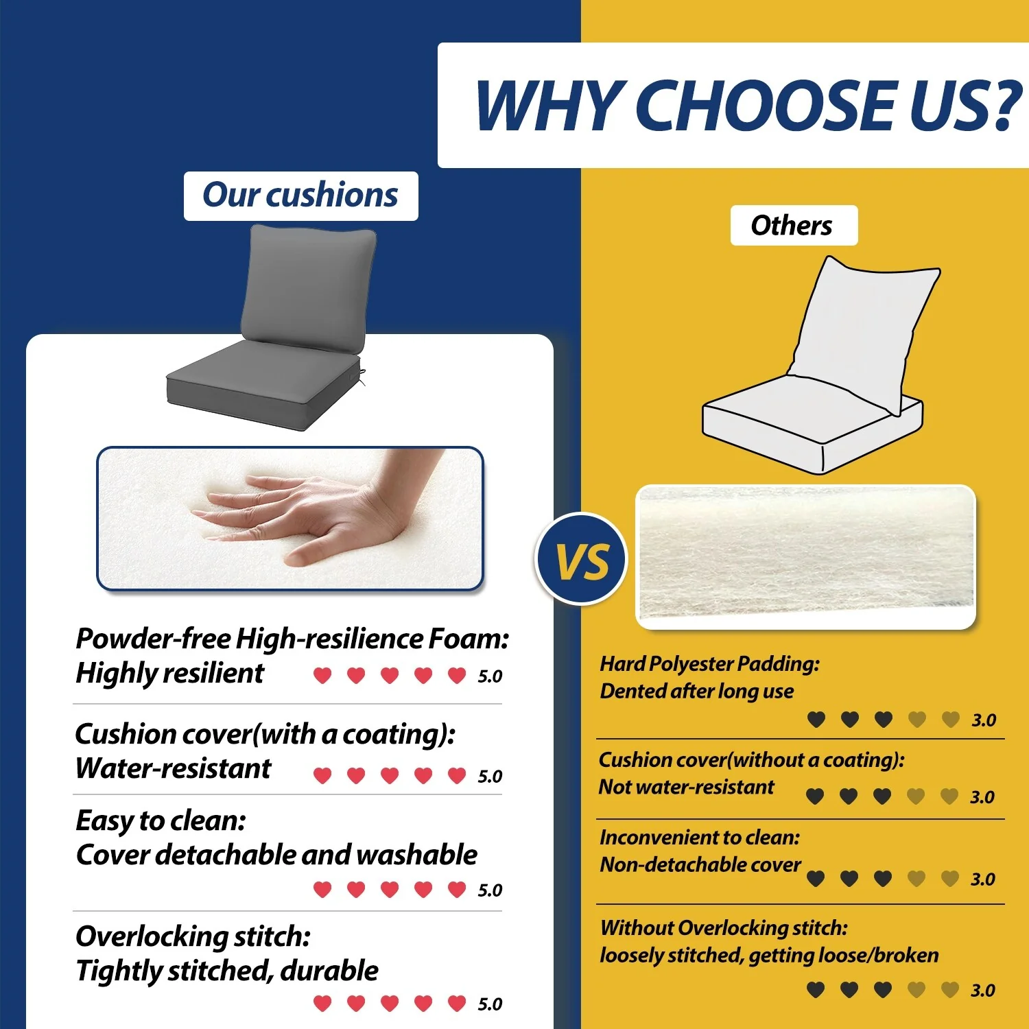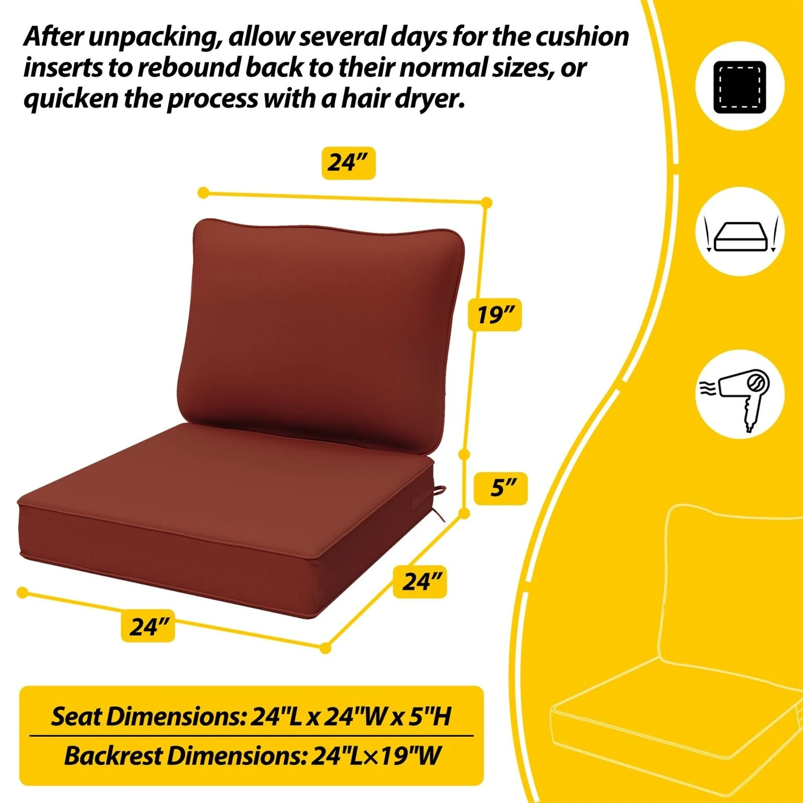 ARDEN Outdoor Deep Seating Cushion Set 24 x 24 - 46.5"L x 24"W