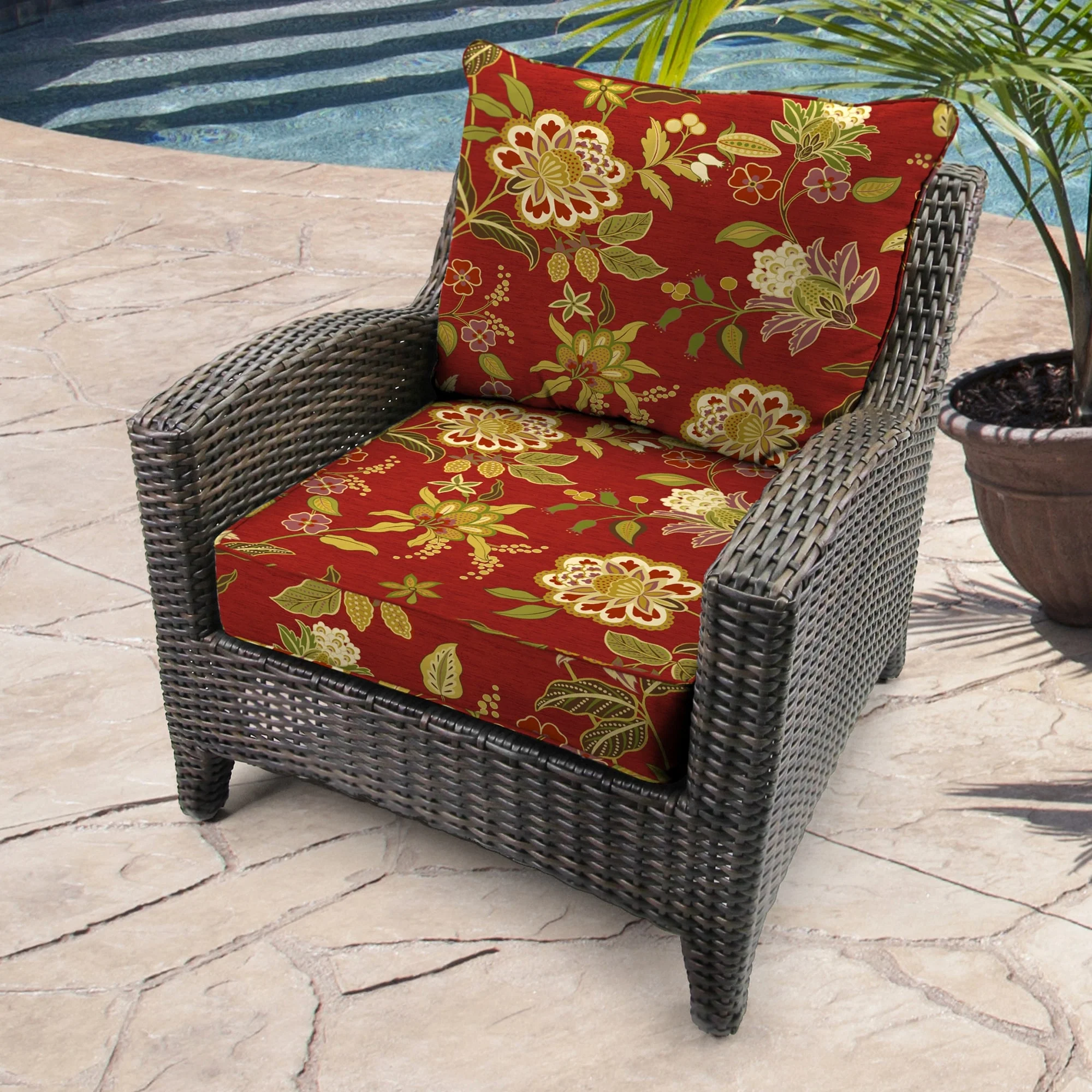 24" x 47" Red Floral Outdoor Deep Seat Cushion Set with Welt - 46.5'' L x 24'' W x 6'' H